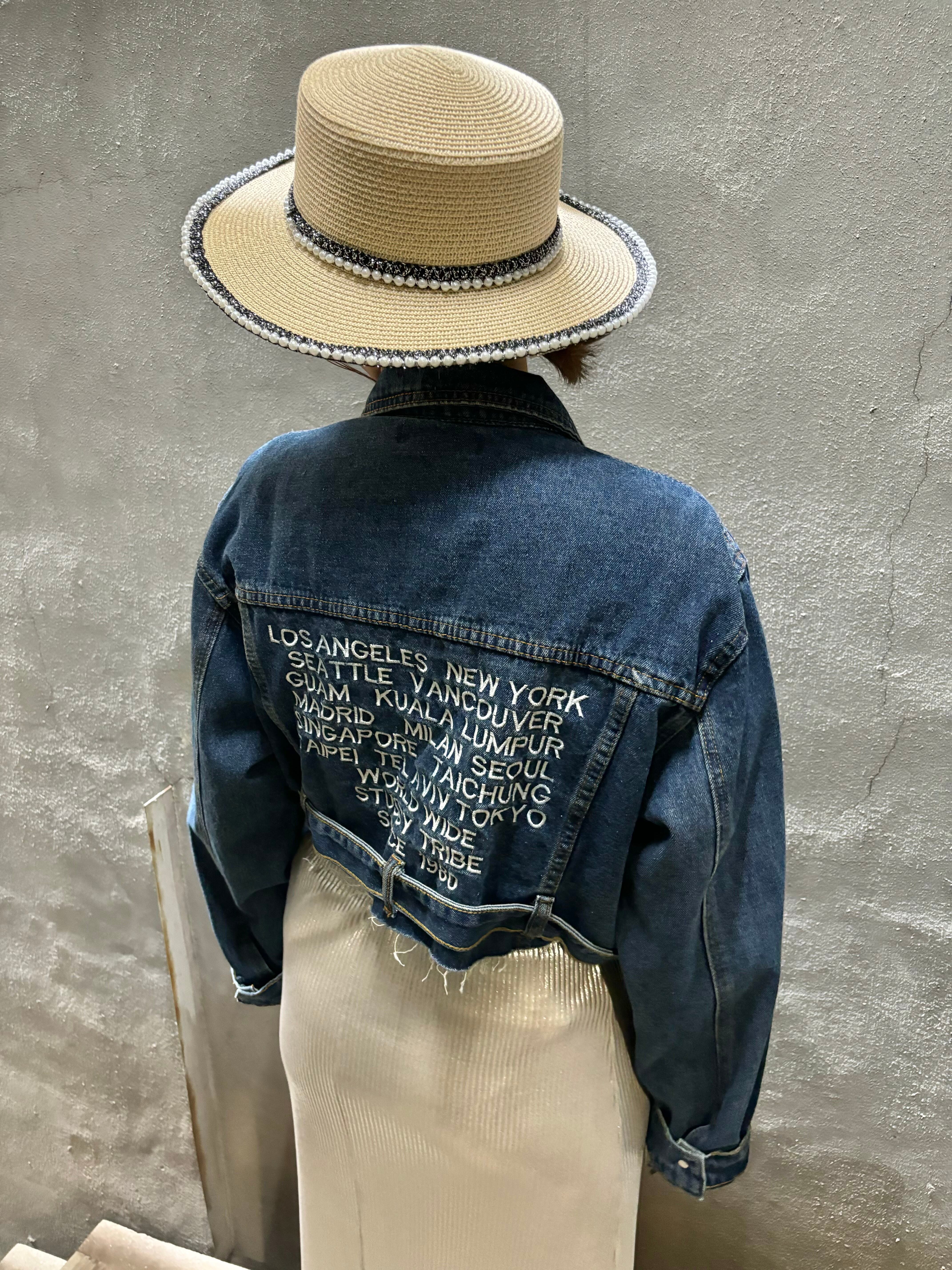 embroidery back design denim jacket デニム ジャケット デニムジャケット Gジャン 刺繍 ショート丈