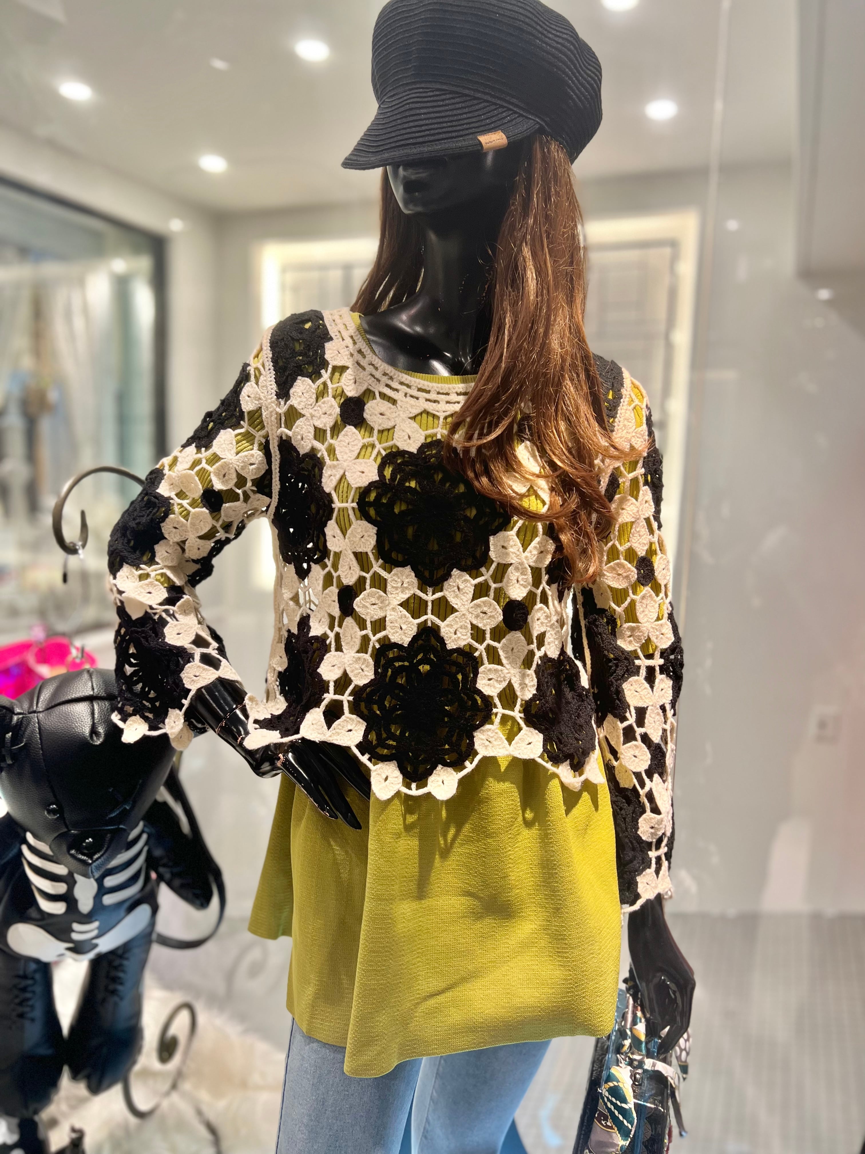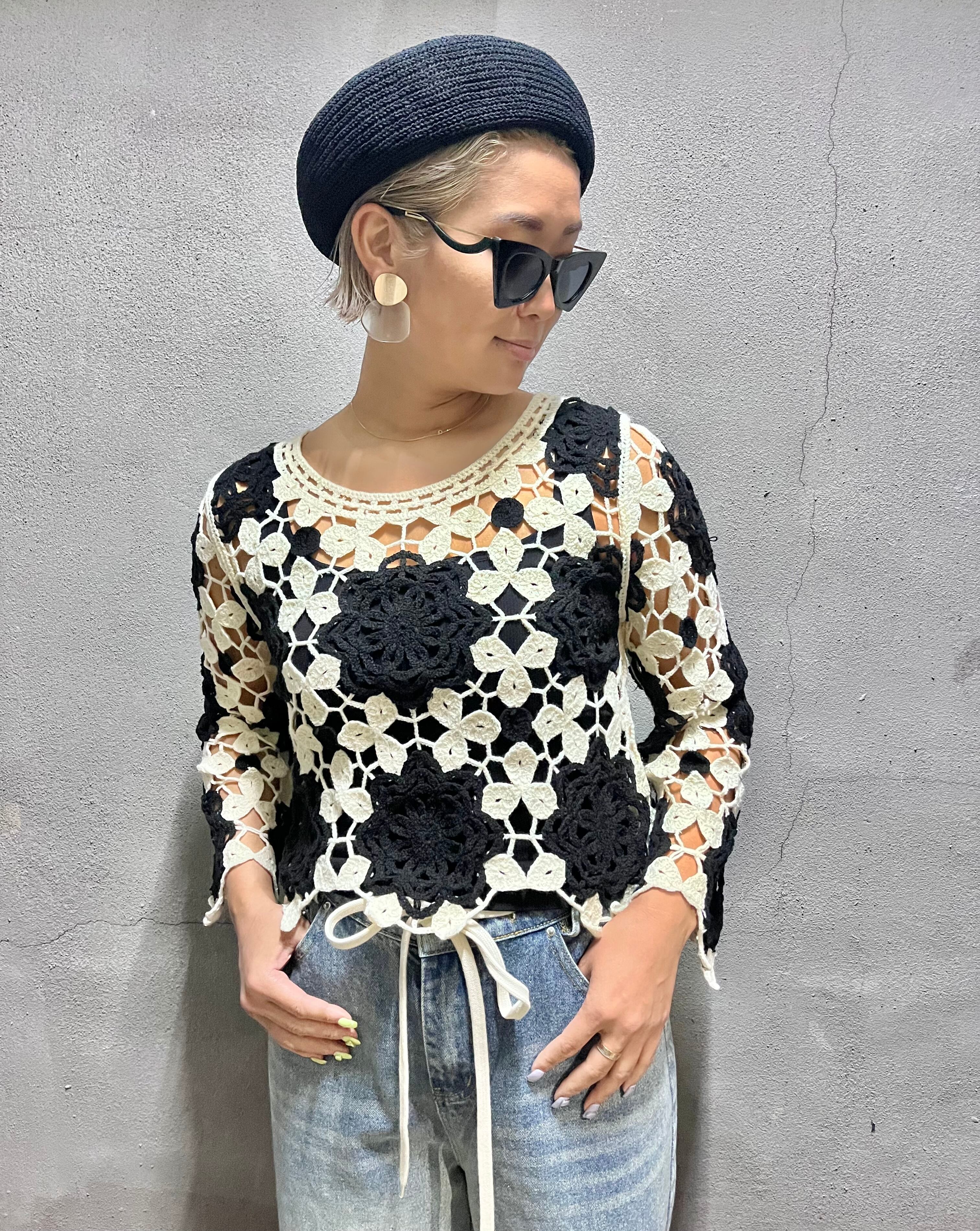 crochet lace bi-color knit tops トップス ニット レース クロシェ バイカラー 重ね着