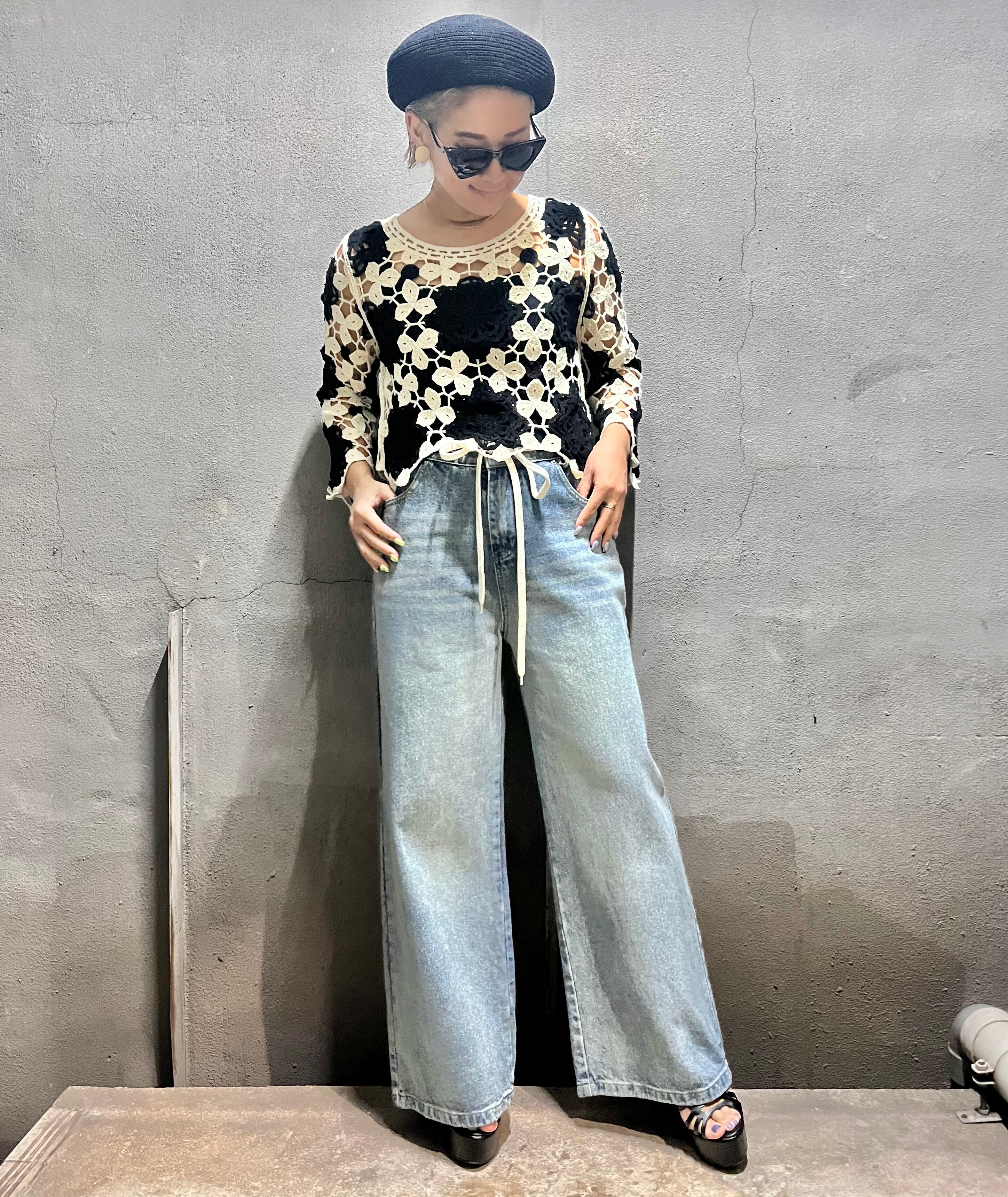 フェミニンなデザインのクロシェ編みニットトップス♡