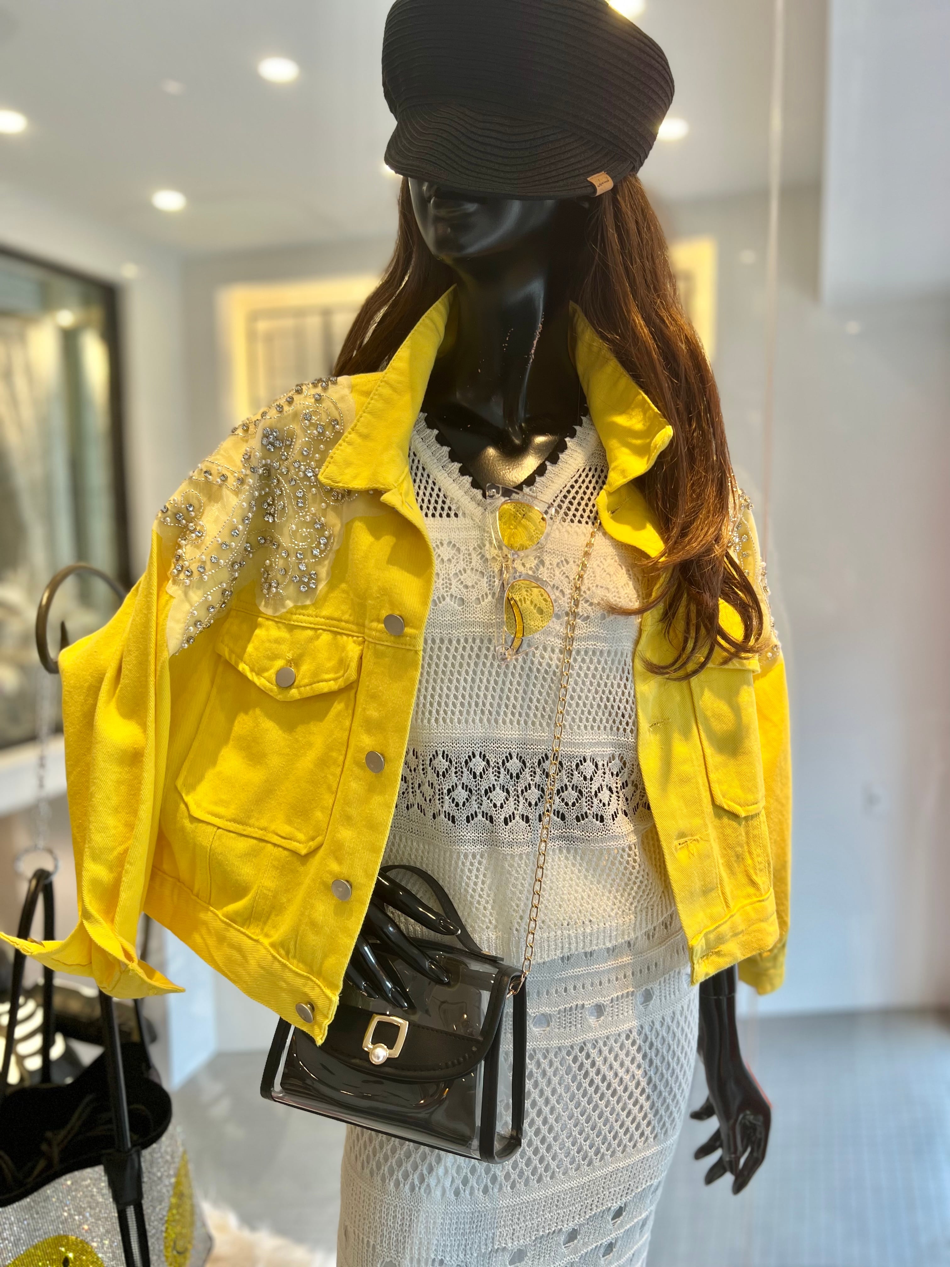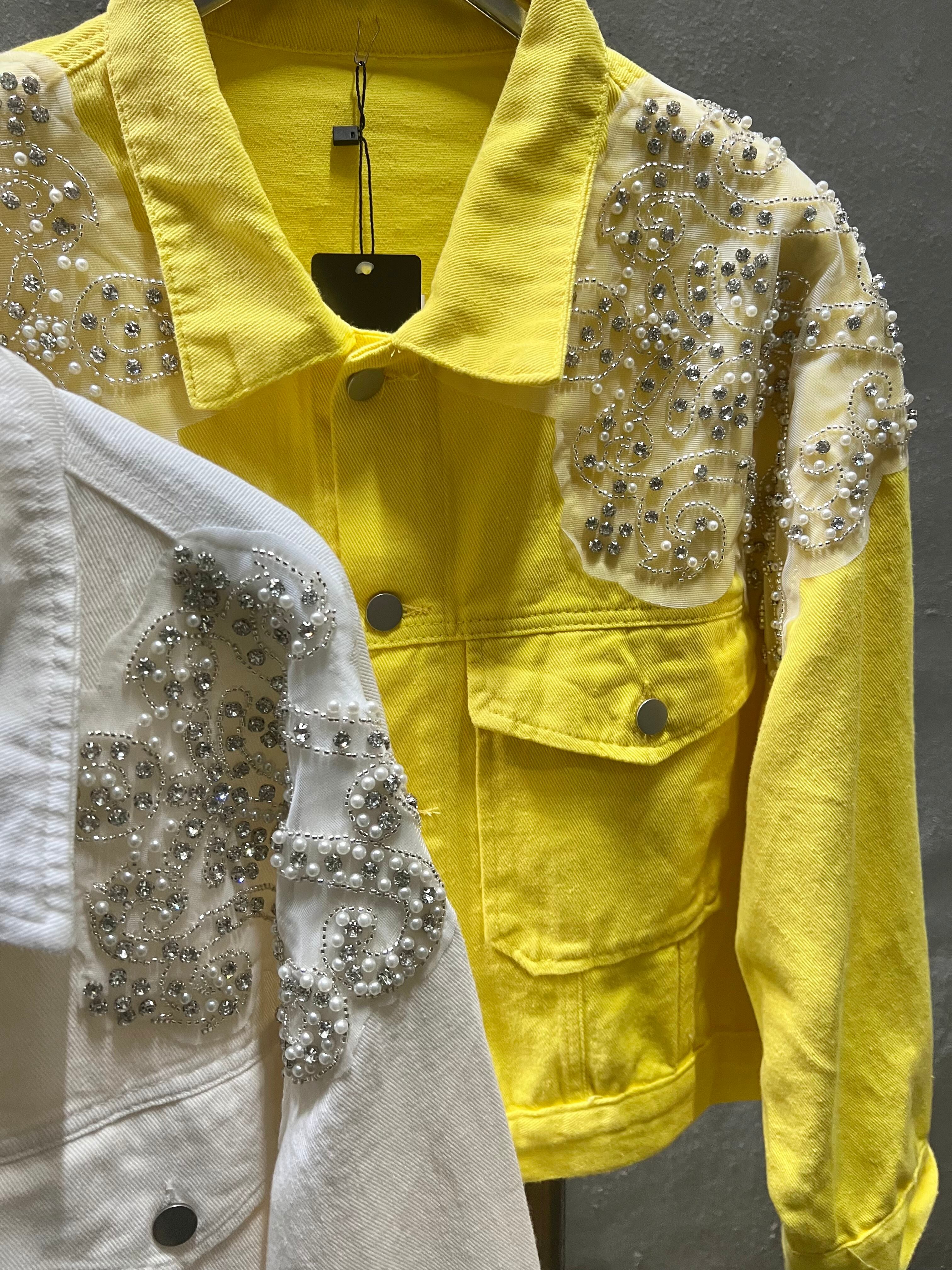color denim bijou lace design jacket ジャケット デニムジャケット デニム Gジャン ビジュー レース パール カラーデニム
