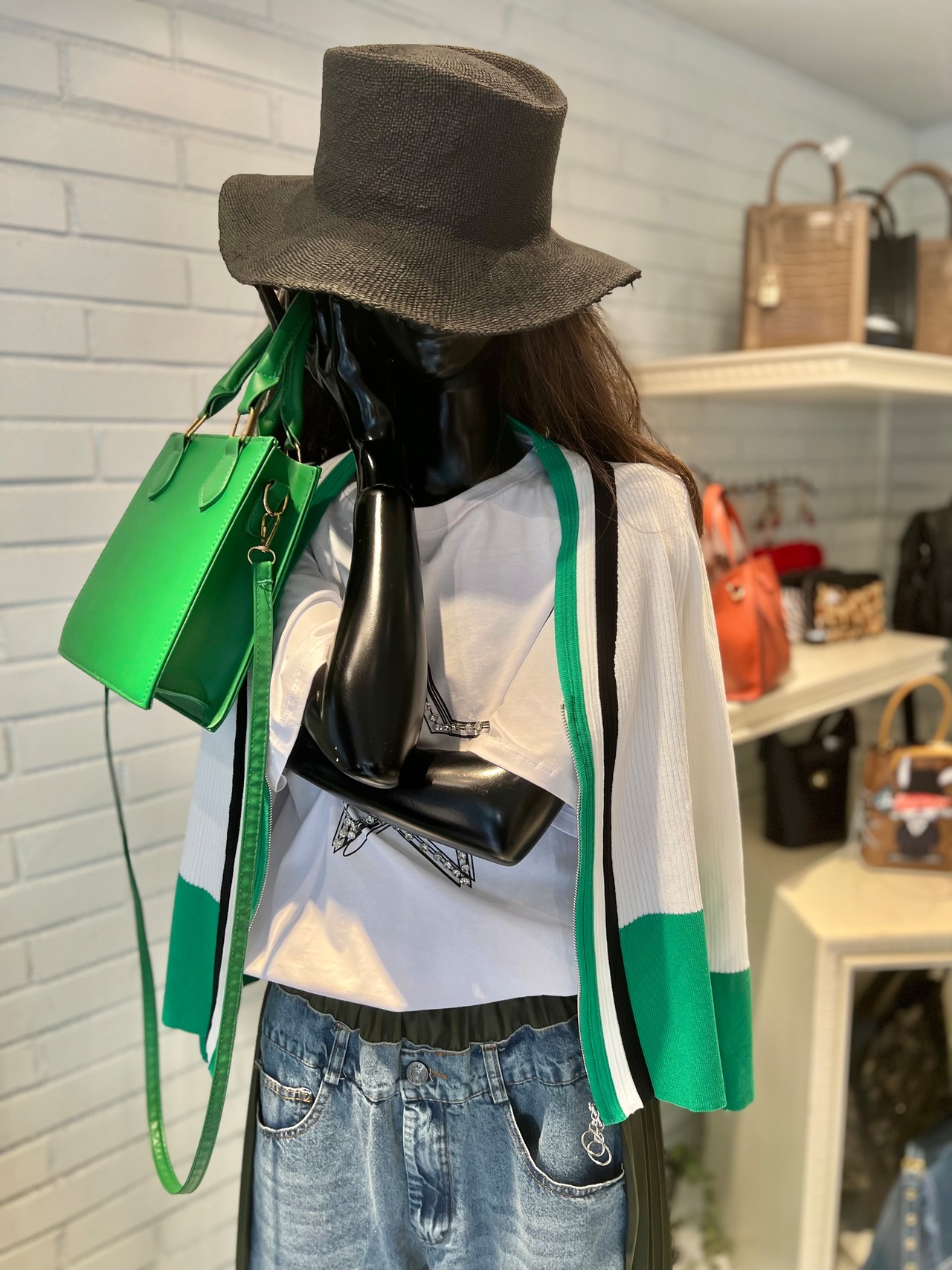 green change zip design knit cardigan ニット カーディガン ニットカーデ 羽織り 春ニット グリーン