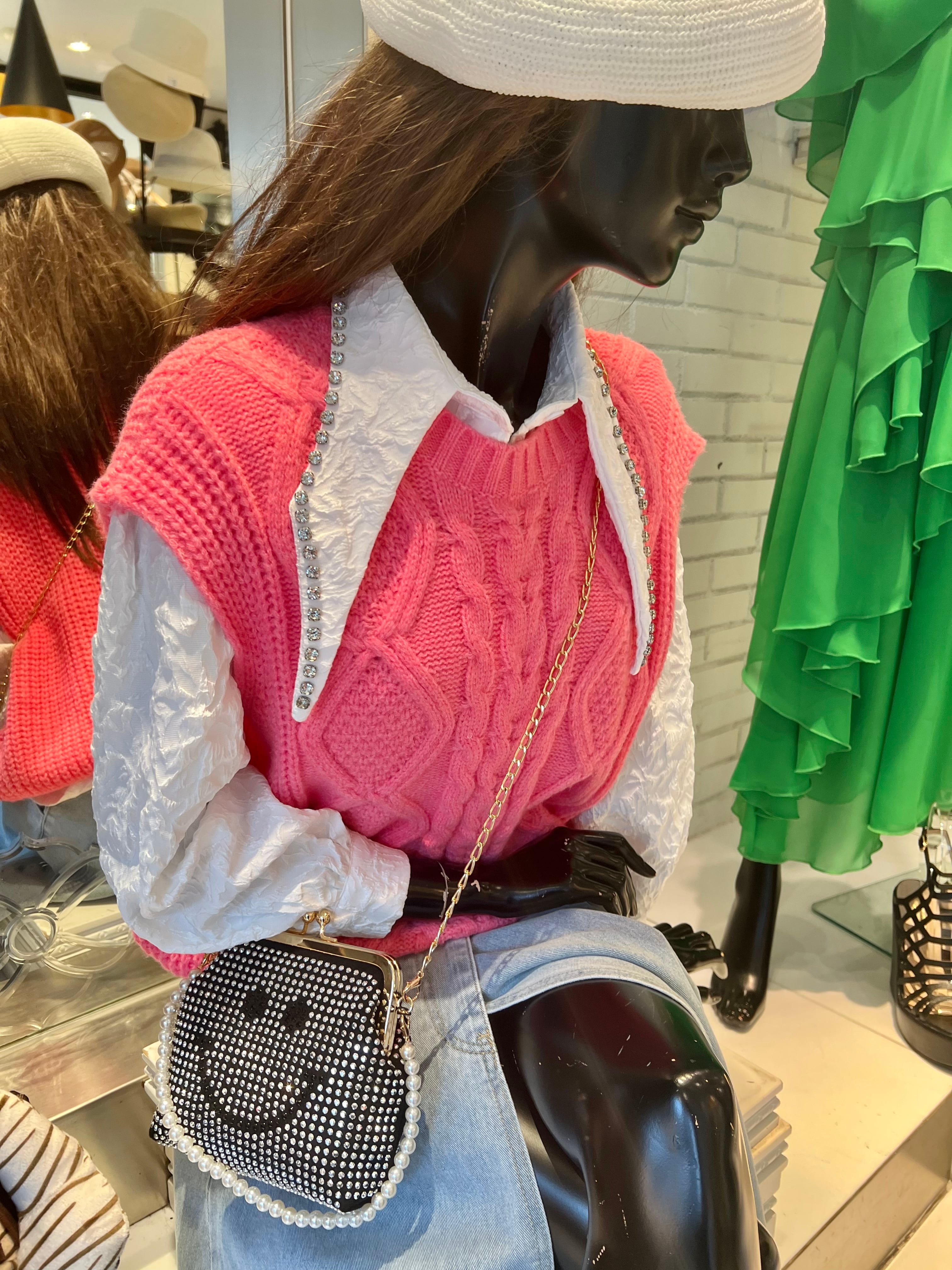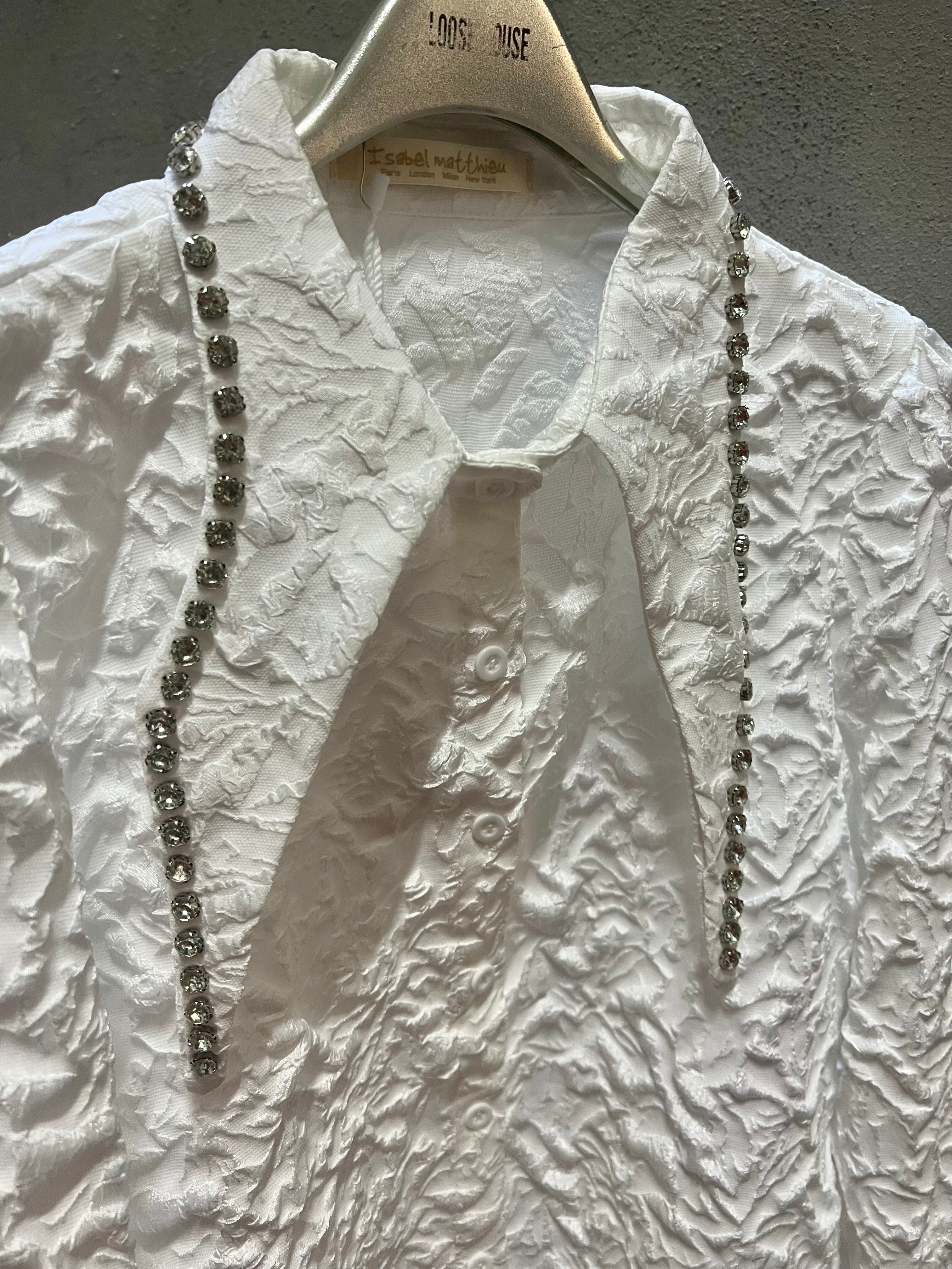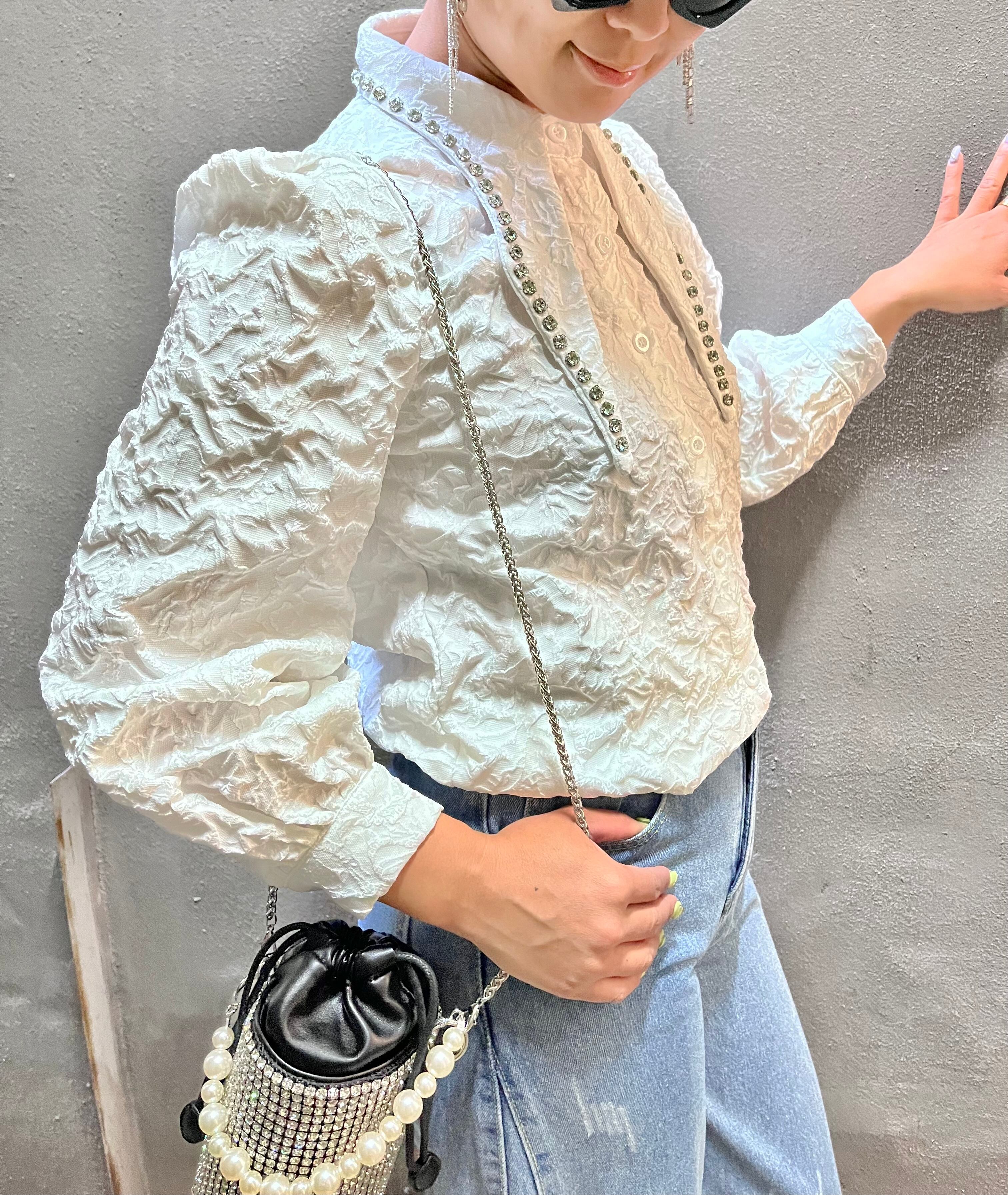 ラインストーンがキラリと光る、ジャカードエンボスシャツ。