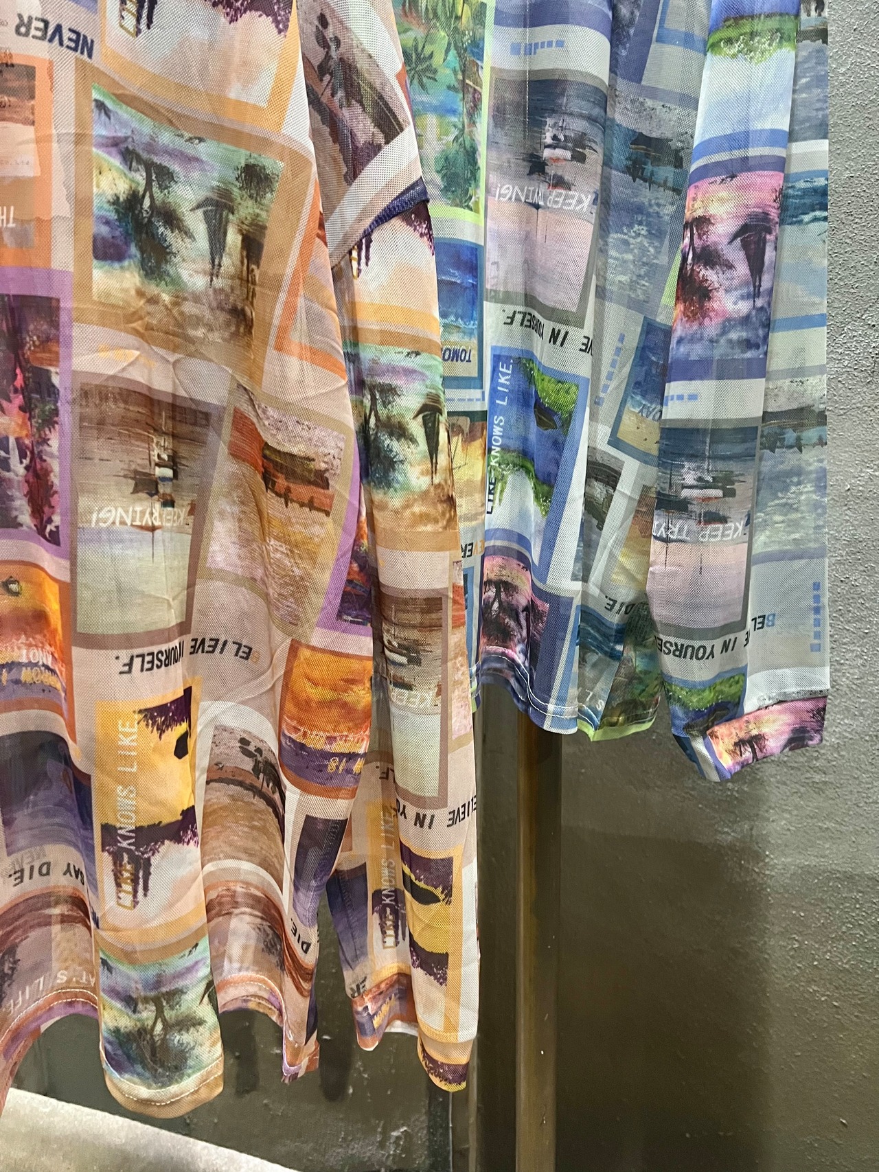 sea print stretch mesh tops トップス メッシュ ストレッチ 重ね着 レイヤー 柄トップス