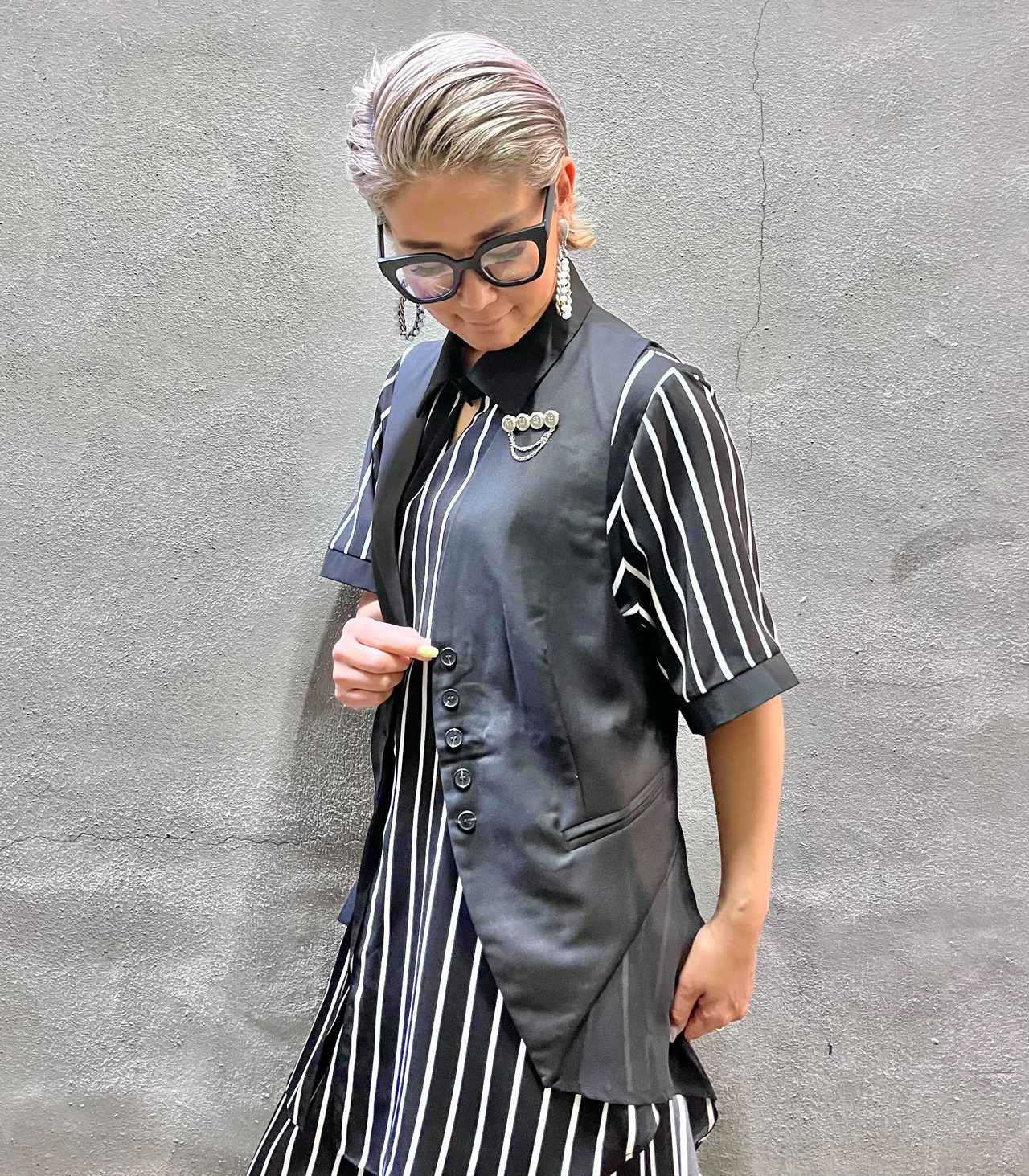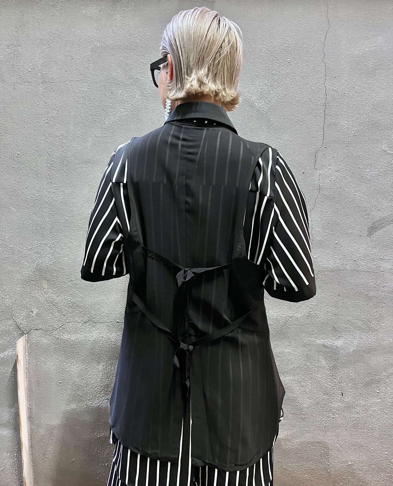 chiffon back design vest ベスト ジレ シフォン 切替デザイン リボン ブローチ