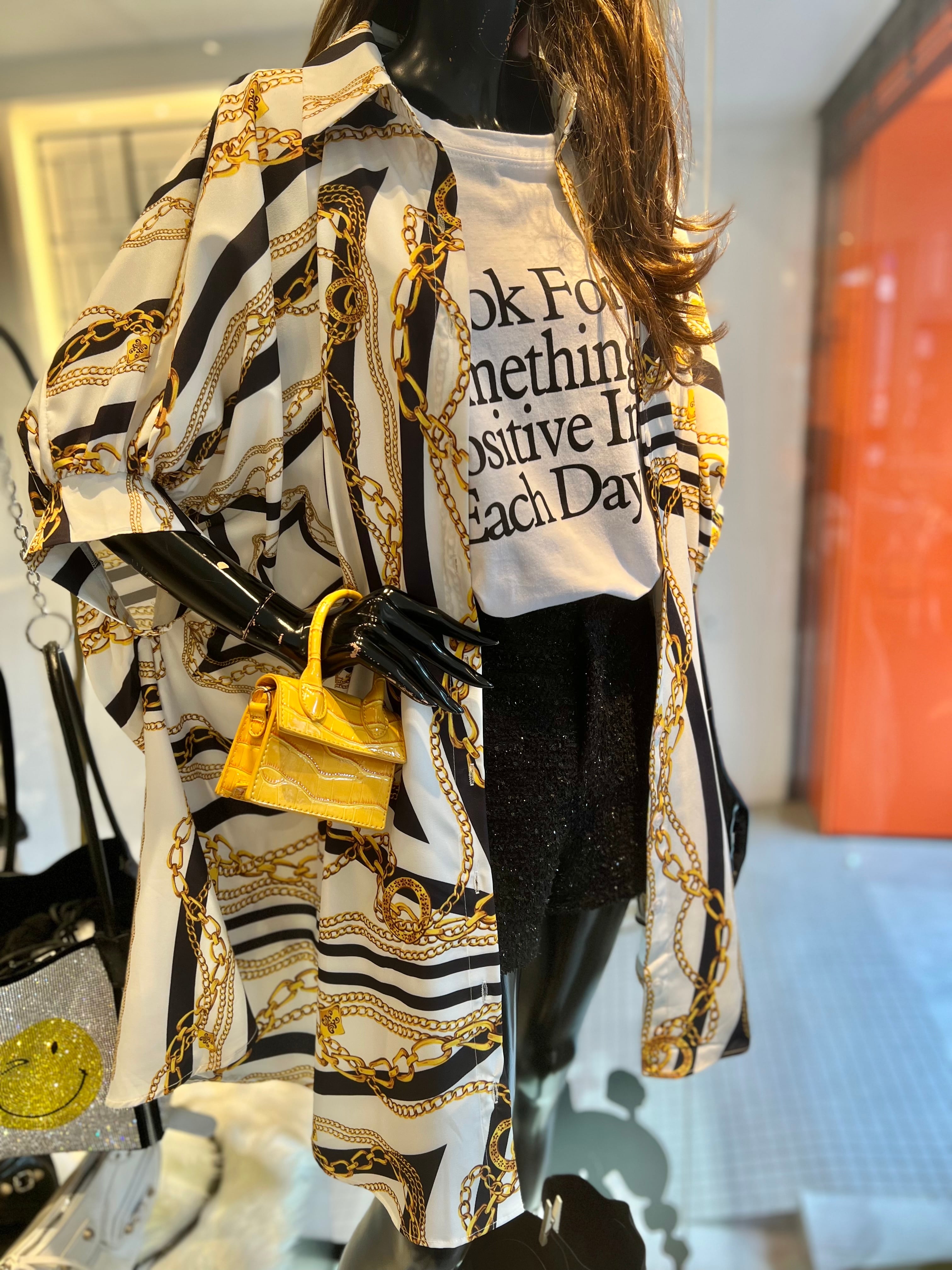 chain print gather dolman shirt one-piece ワンピース ワンピ ミニワンピ チュニック シャツワンピ 柄ワンピ チェーン ゴージャス