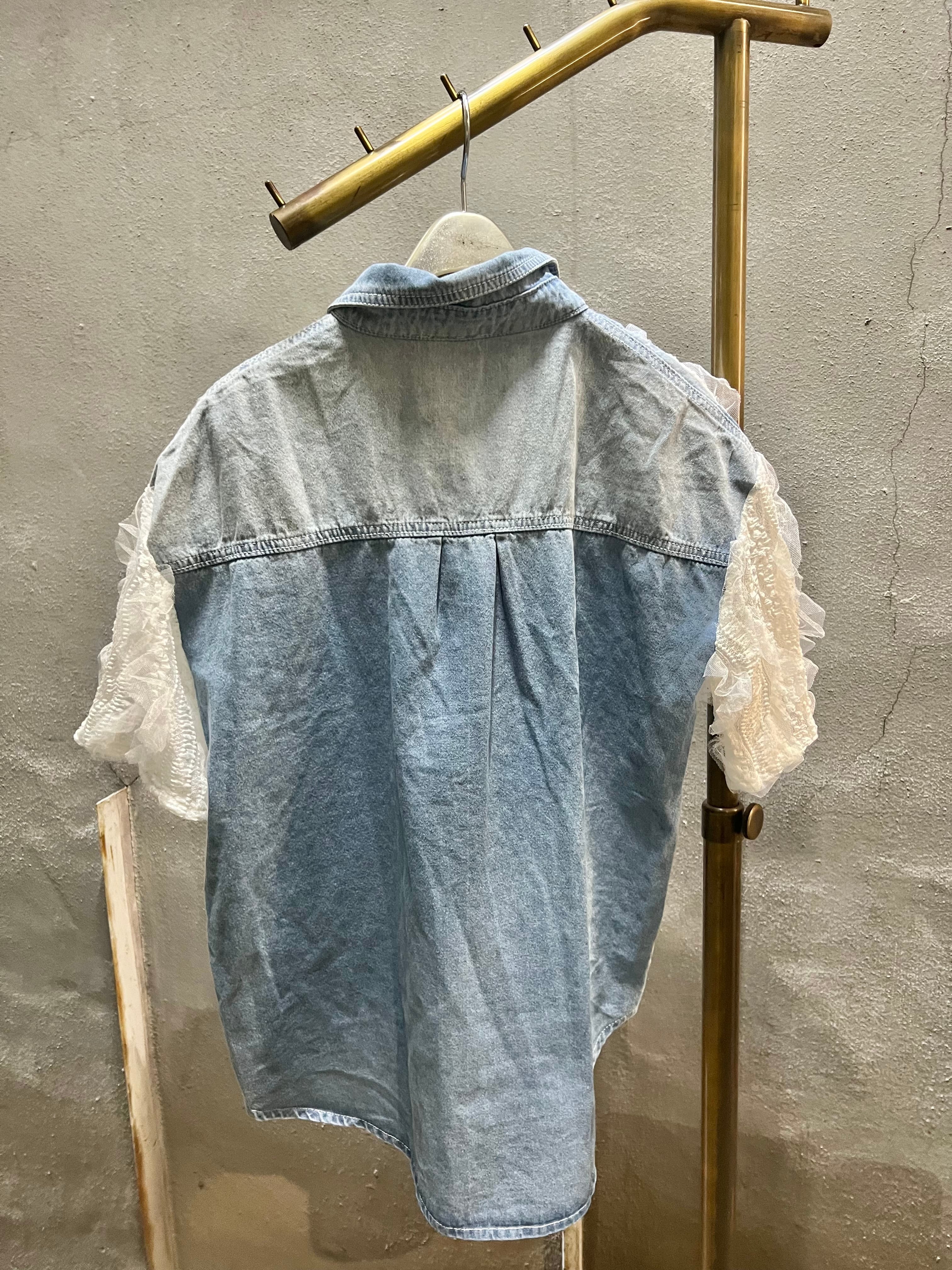 前面にはレースを使用し、後ろ面にはデニムが施された、ハーフスリーブのシャツです。