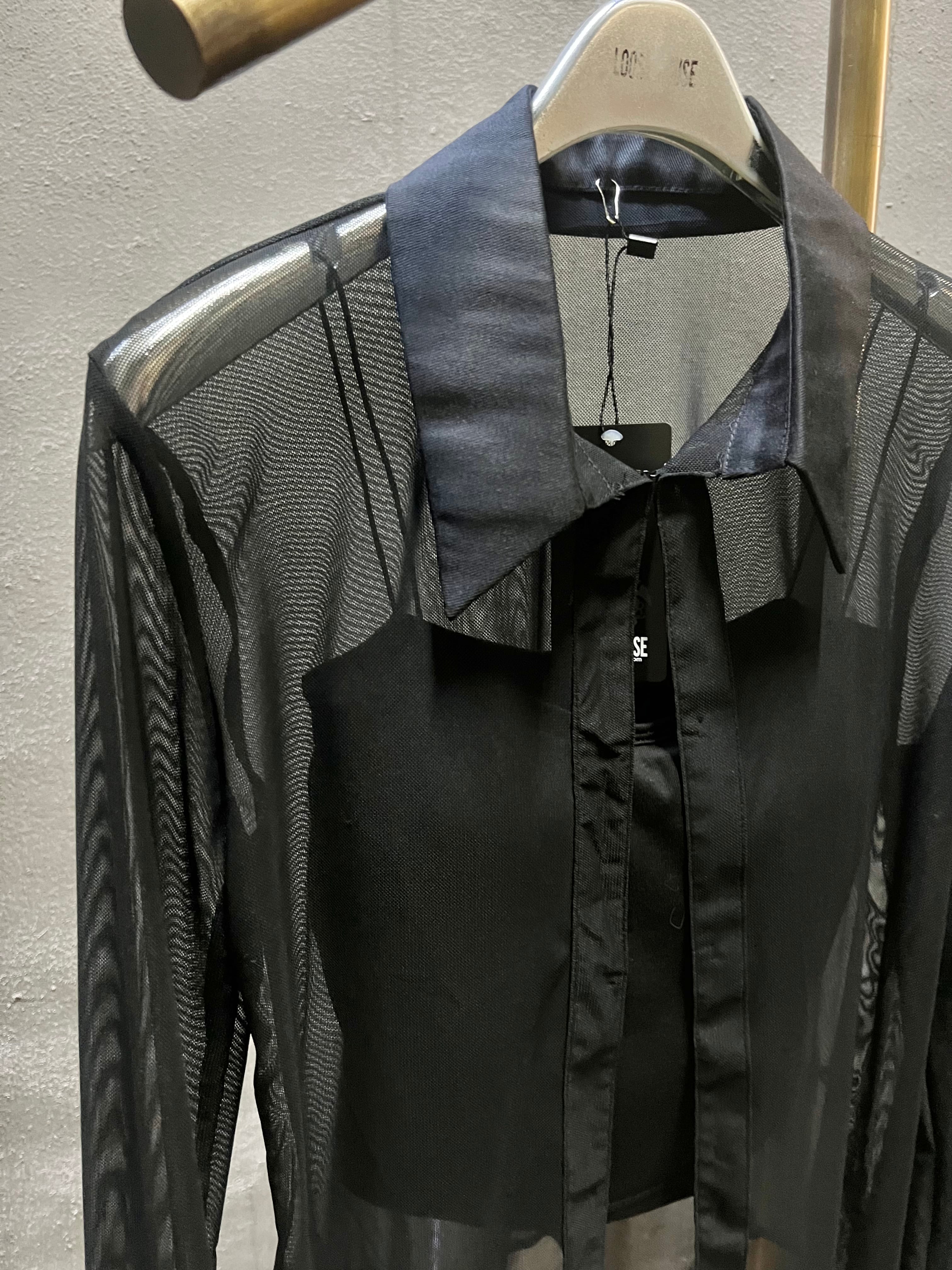 camisole × shirt stretch mesh tops 2点セット キャミソール シャツ メッシュ ストレッチ カップ付き