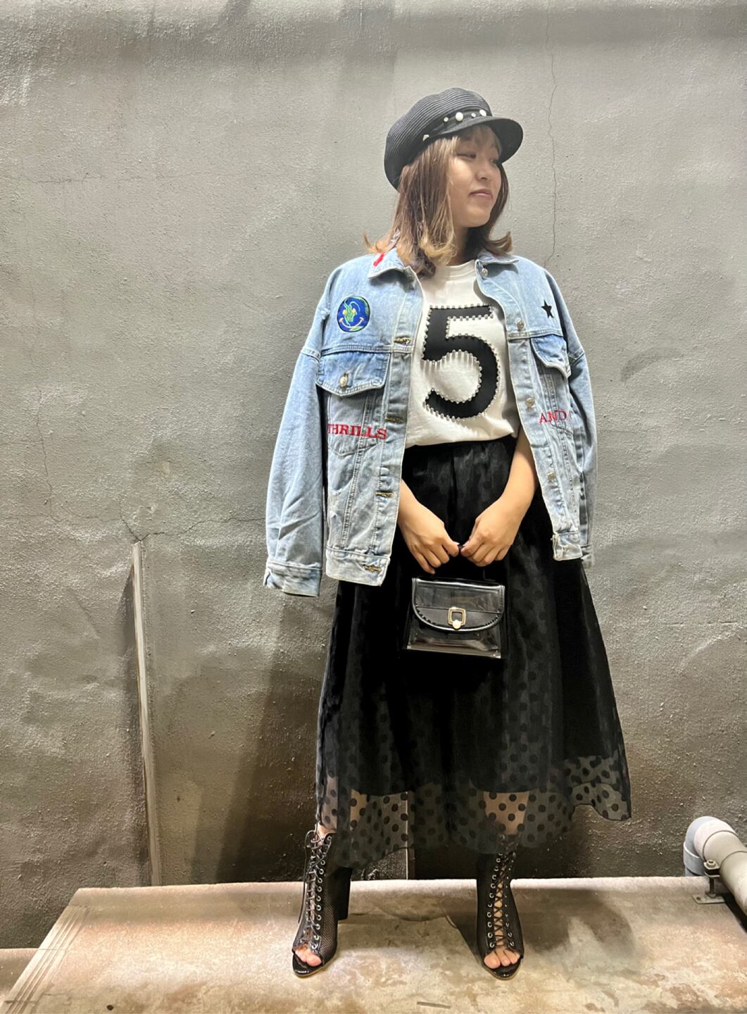 また、フリルトップスなどを合わせるとより一層可愛らしくふんわりとした印象を与えます。