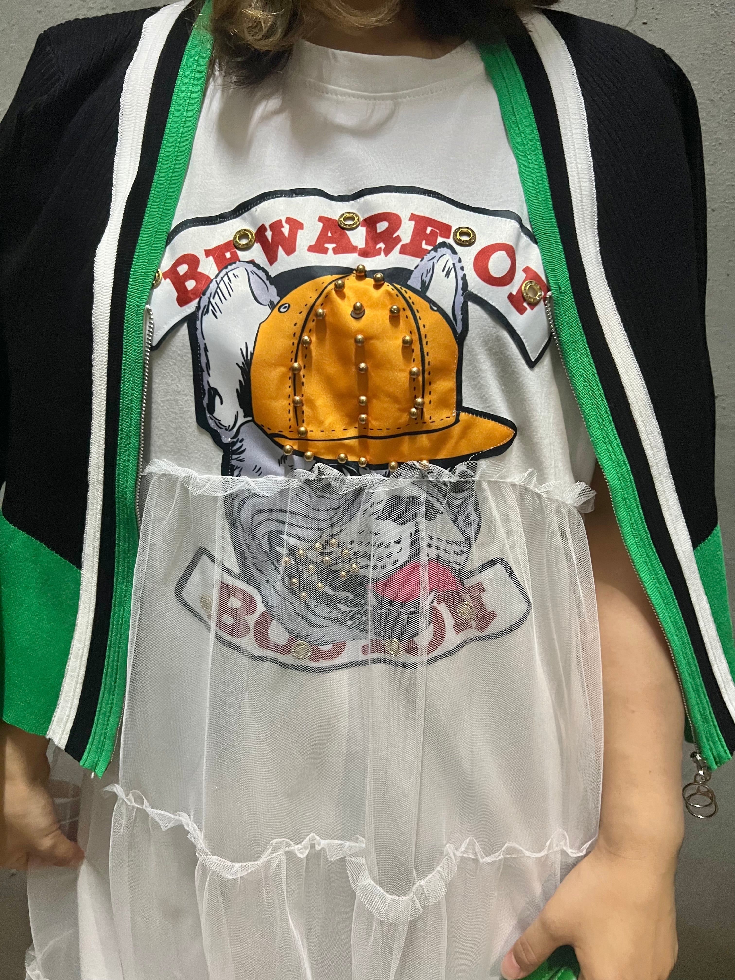 bulldog print tulle cover T-one-piece Tワンピ ワンピース ブルドッグ プリントT チュール