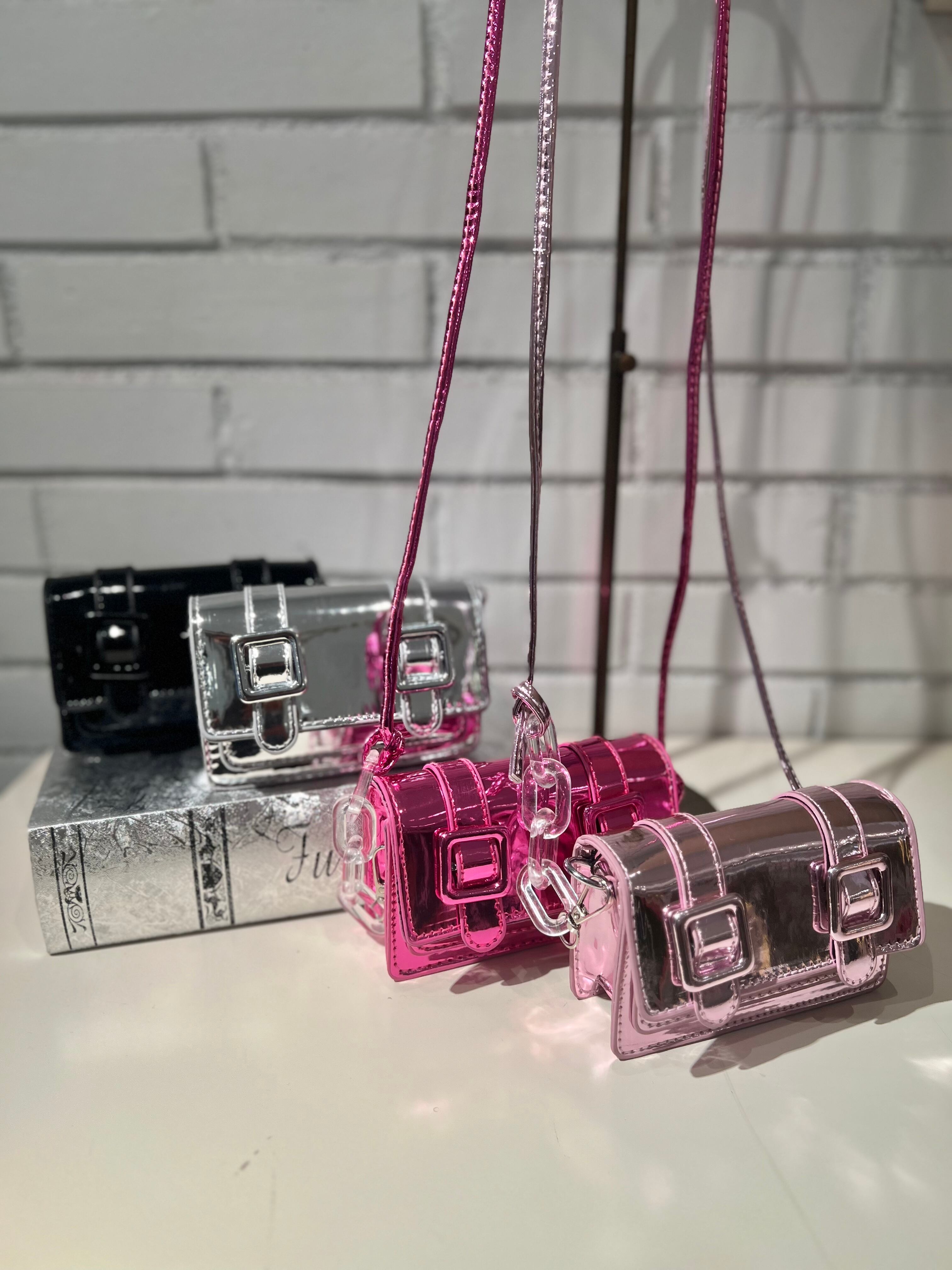 metallic 2buckle mini pochette bag バッグ ミニバッグ タイニー ポシェット メタリック ストラップ