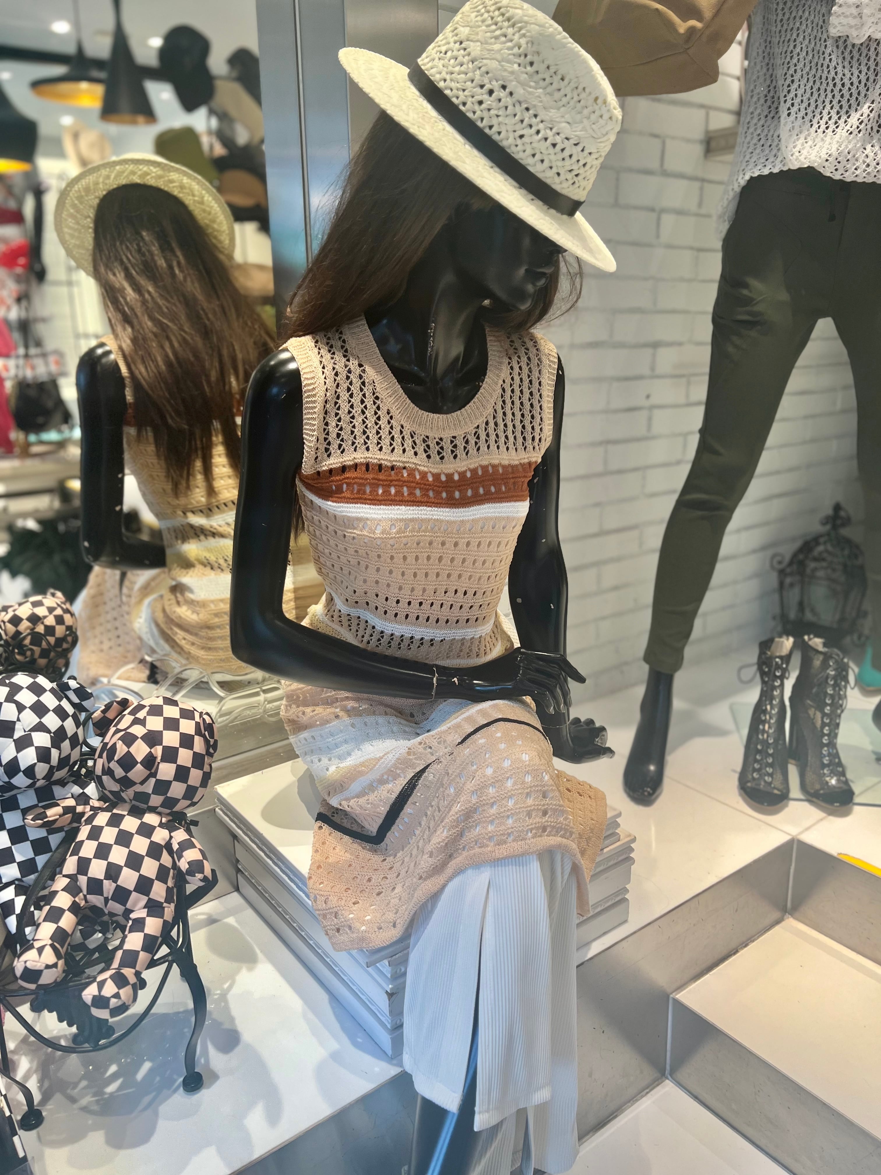 mulch color border knit sleeveless one-piece ワンピース ニット ボーダー タイト きれいめ マルチカラー