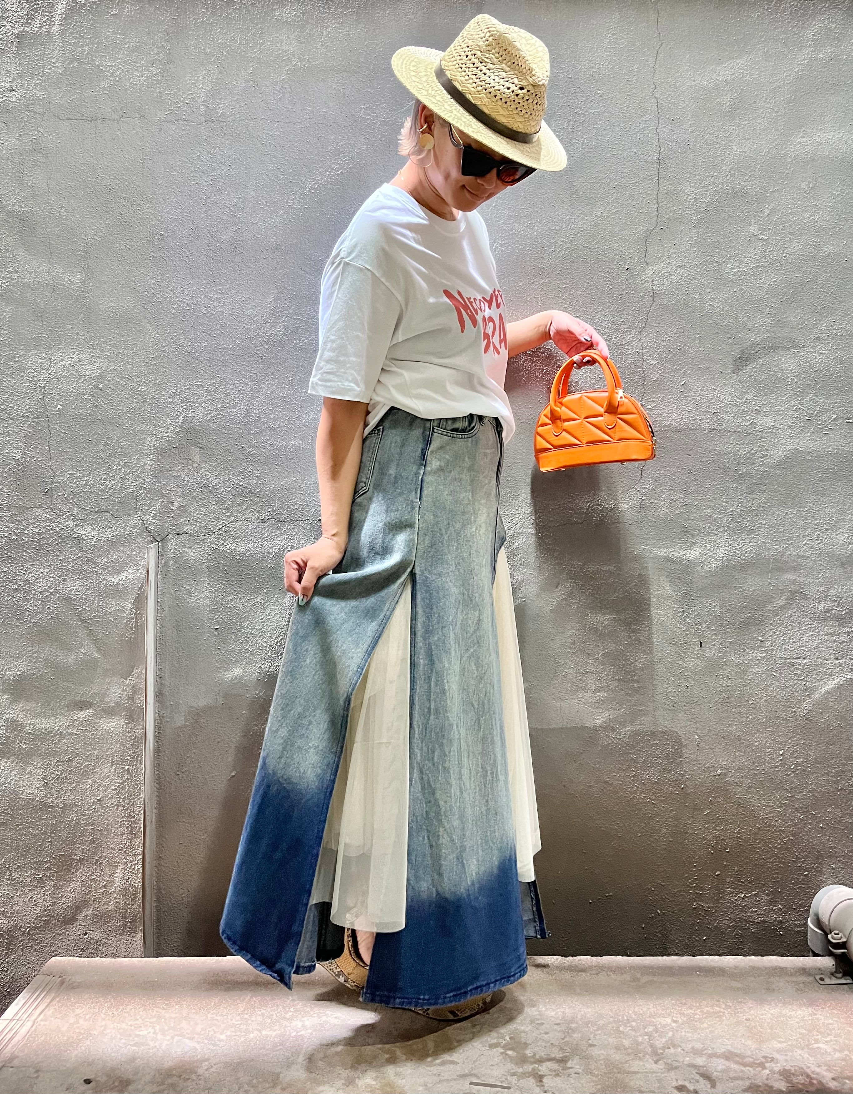 sexy slit design denim flare long skirt スカート デニム ロングスカート スリット セクシー 重ね着 レイヤード