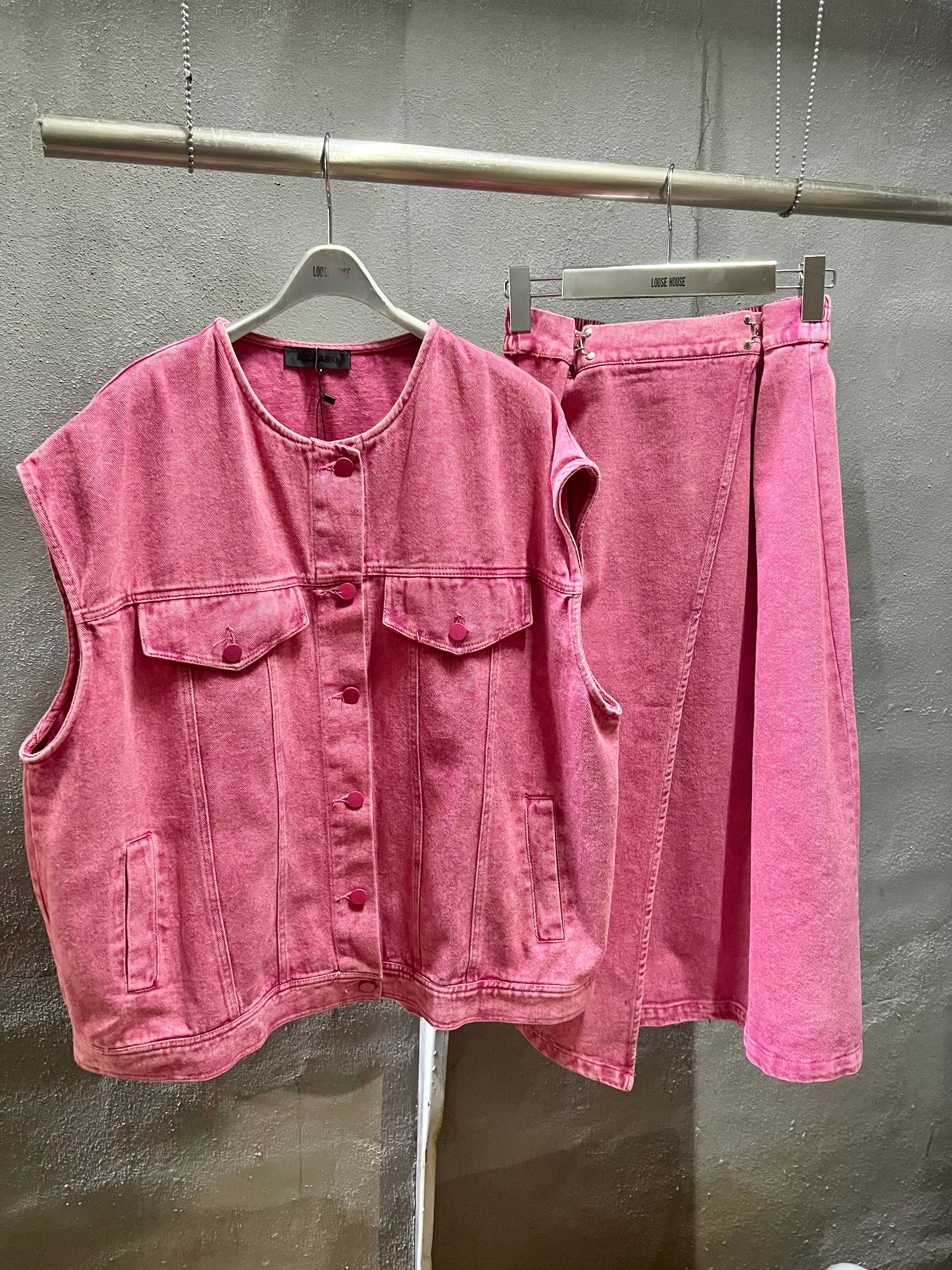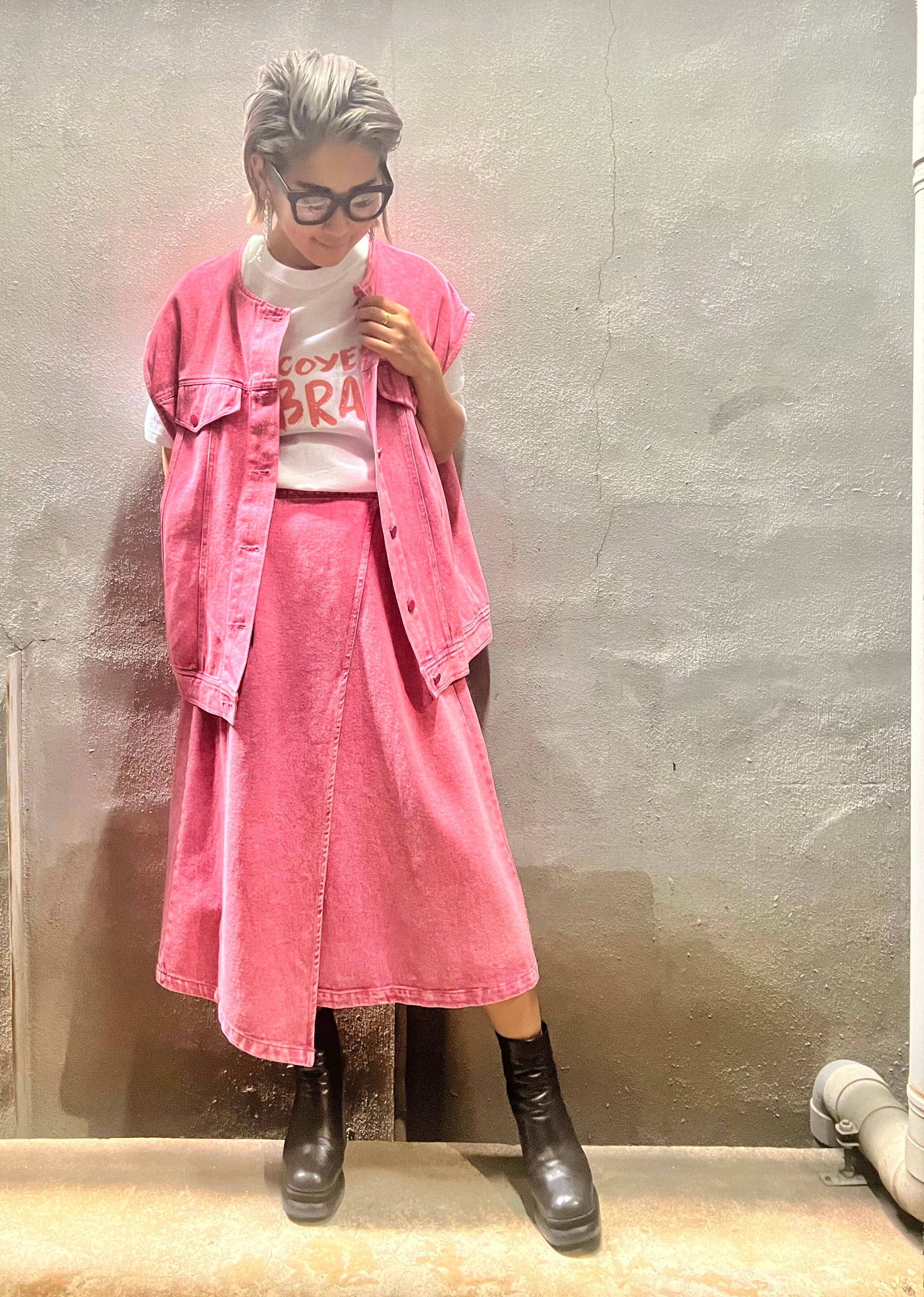 pink denim oversize vest × skirt 2P セットアップ デニム ピンク ピンクデニム ベスト スカート オーバーサイズ 2点セット