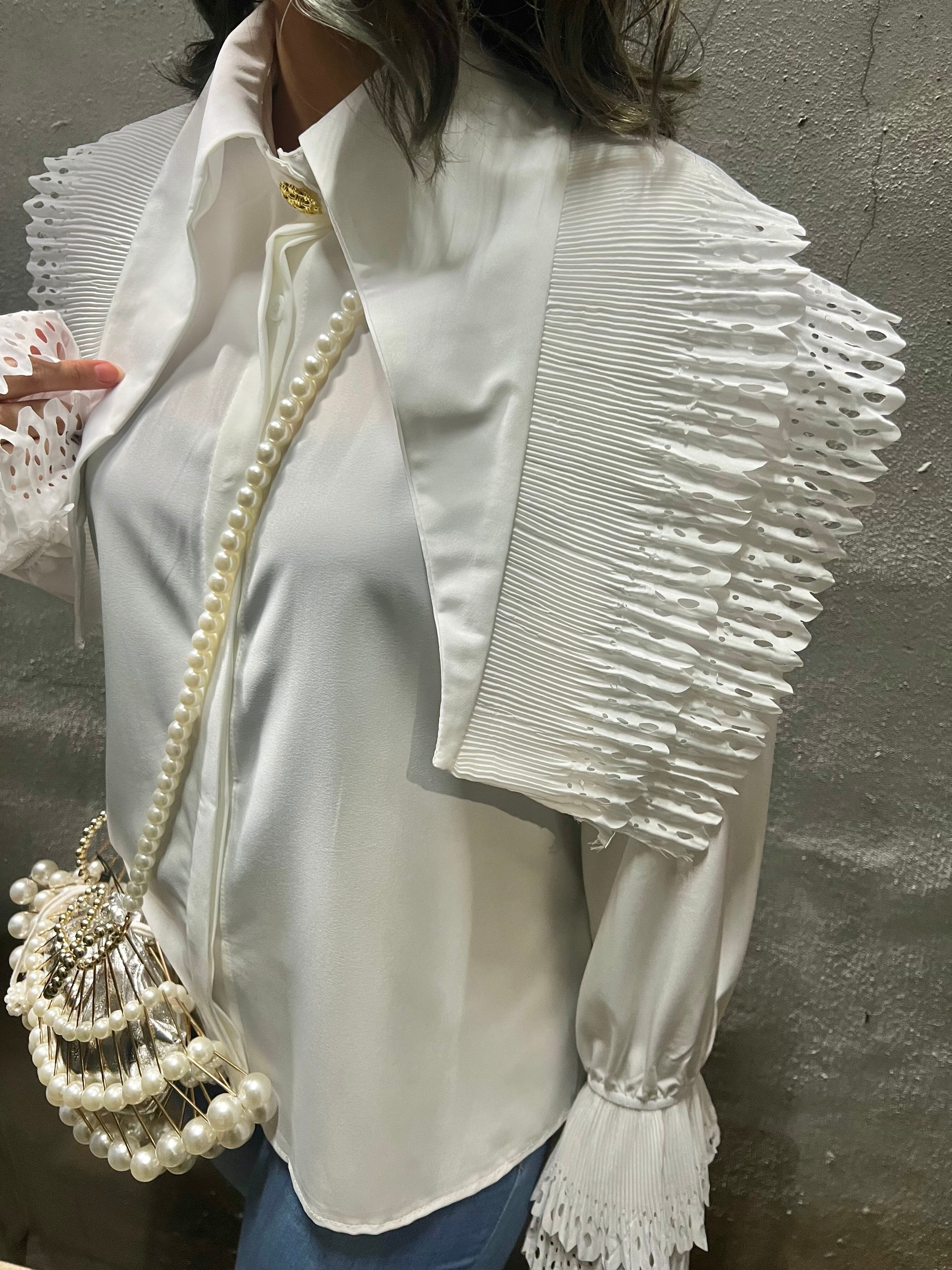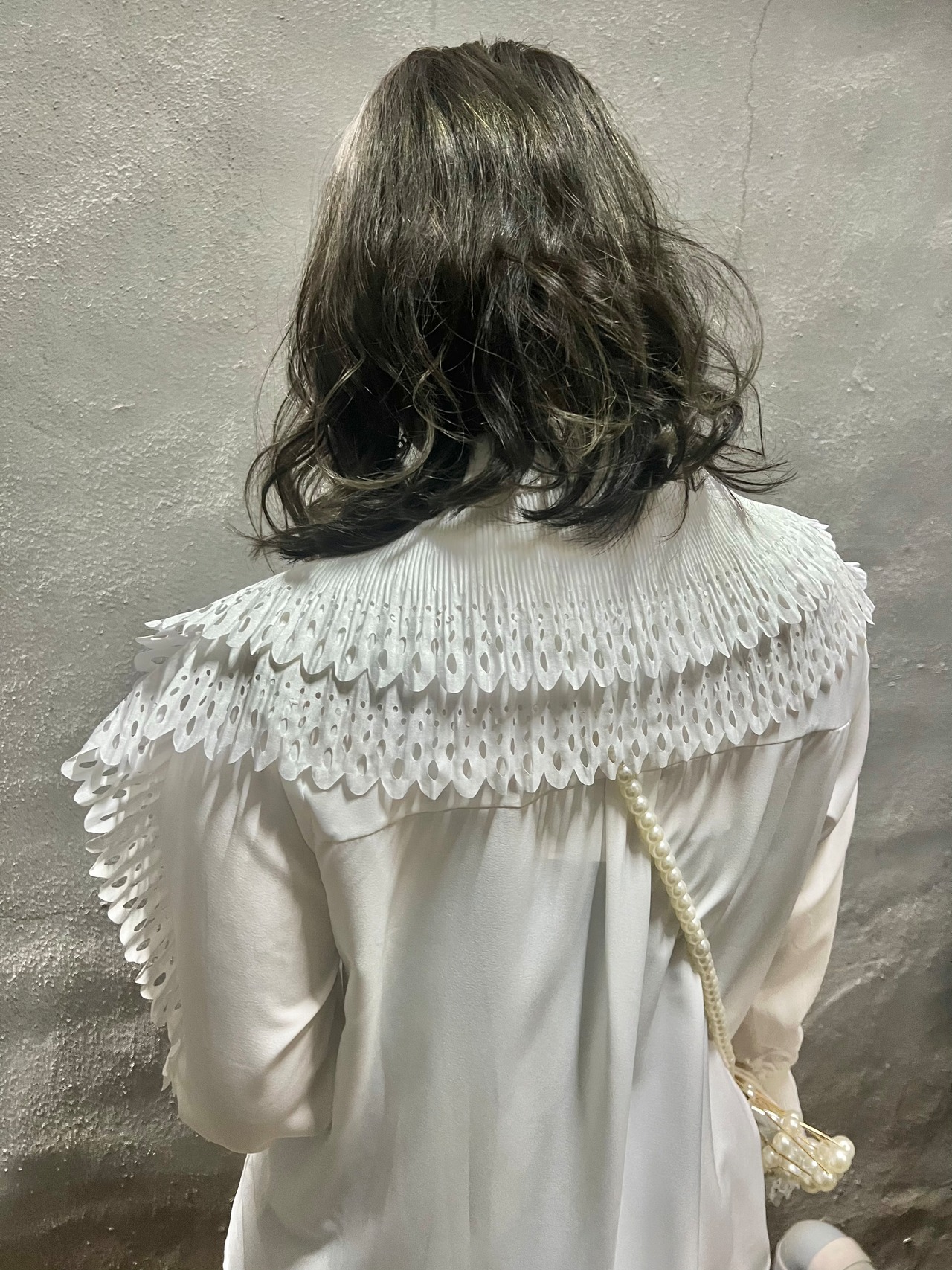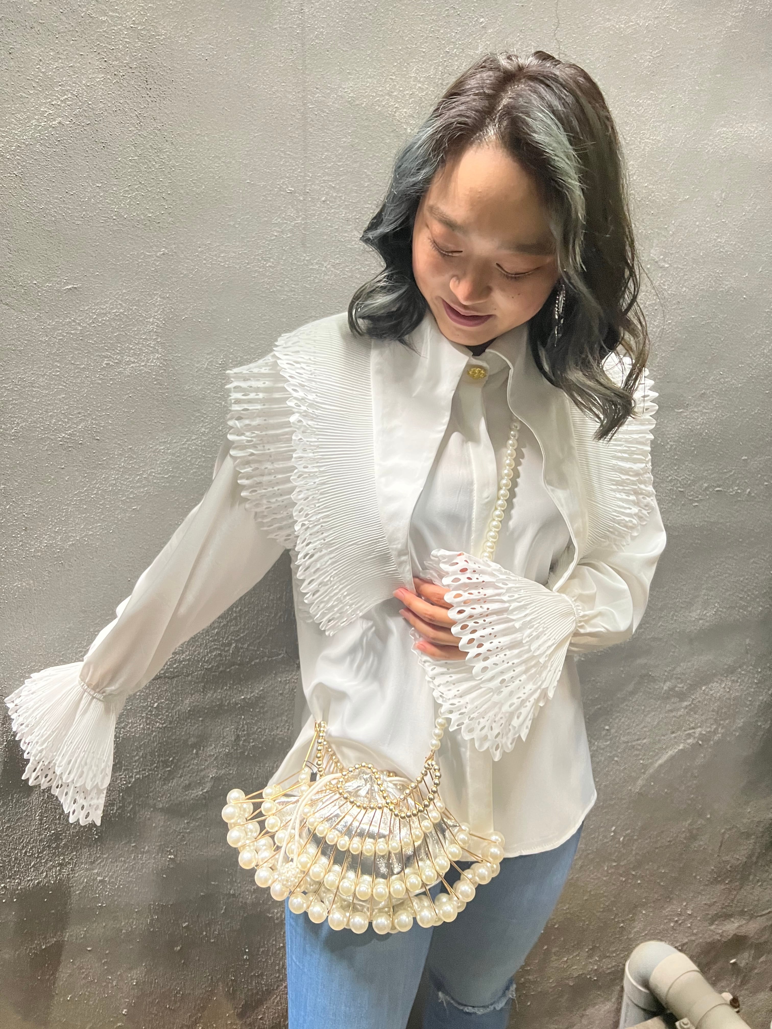 pointed pleats design collar blouse ブラウス シャツ 襟 デザイン プリーツ 付け襟風