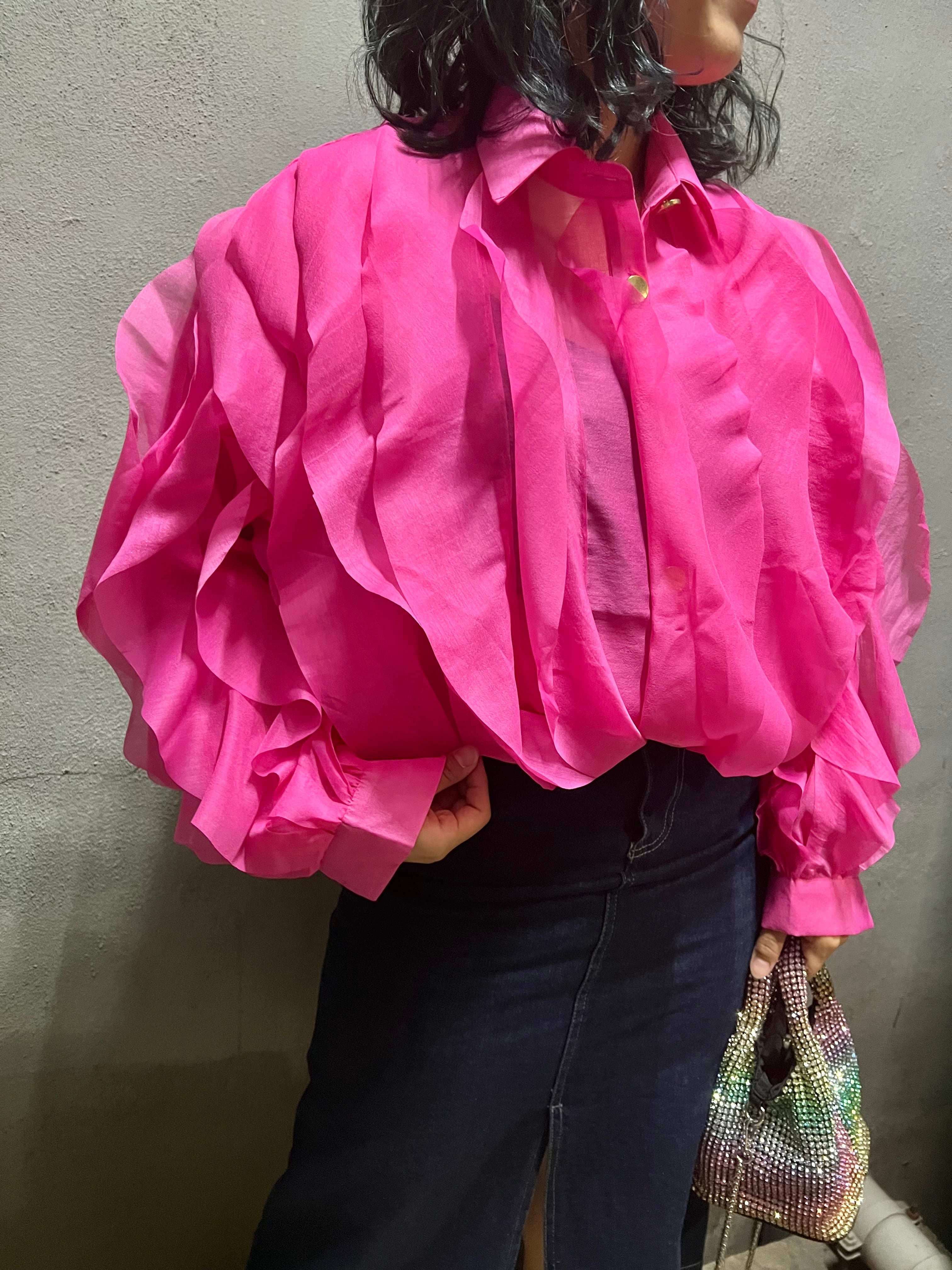organdy frill front design shirt シャツ ブラウス フリル ピンク デザインシャツ