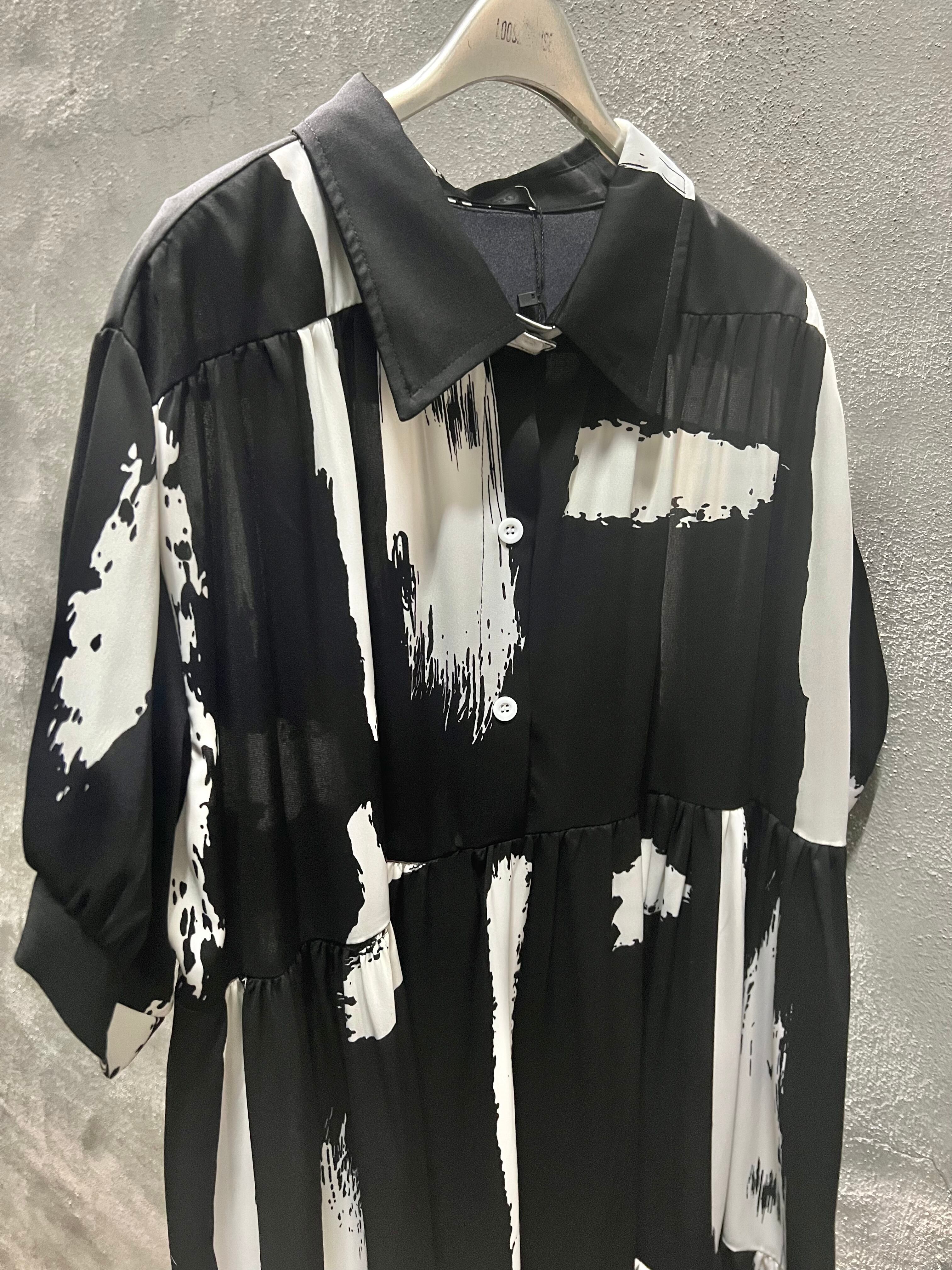 bi-color pattern tiered gather one-piece ワンピース ワンピ バイカラー 白黒 ティアード ギャザー