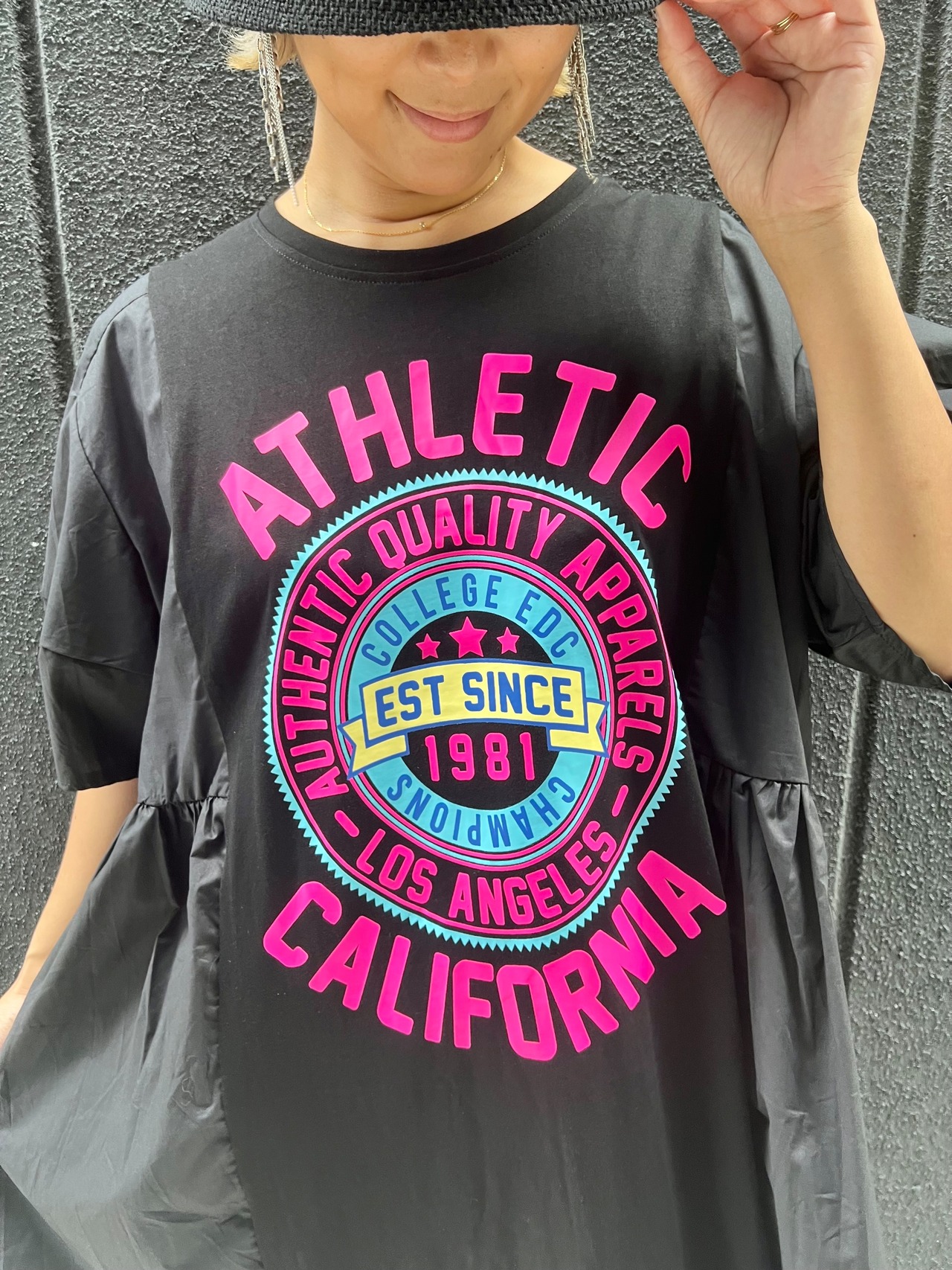 athletic ca print T-tunic Tシャツ チュニック Tワンピ プリントT 異素材切替