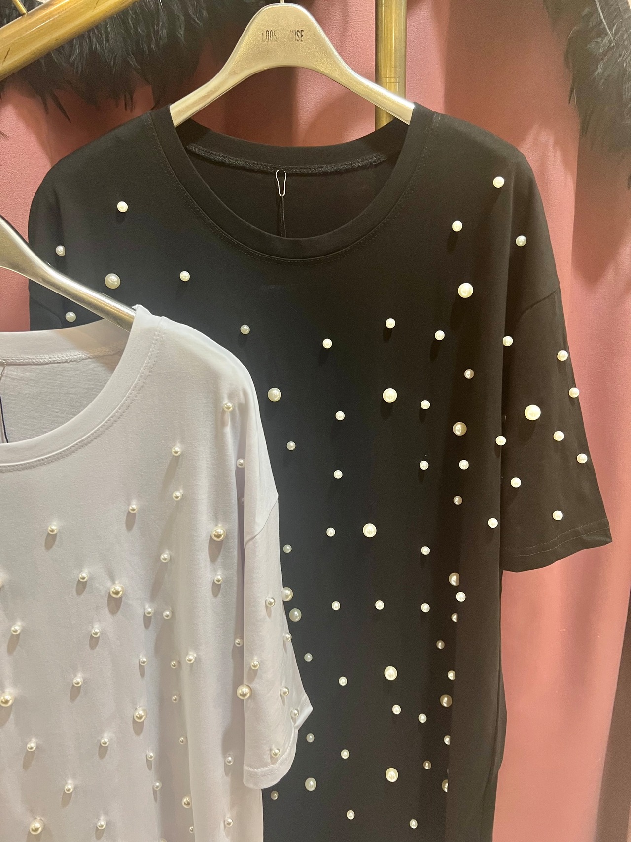 あなたの日常スタイルに華やかさをプラスするパール付きTシャツ♡