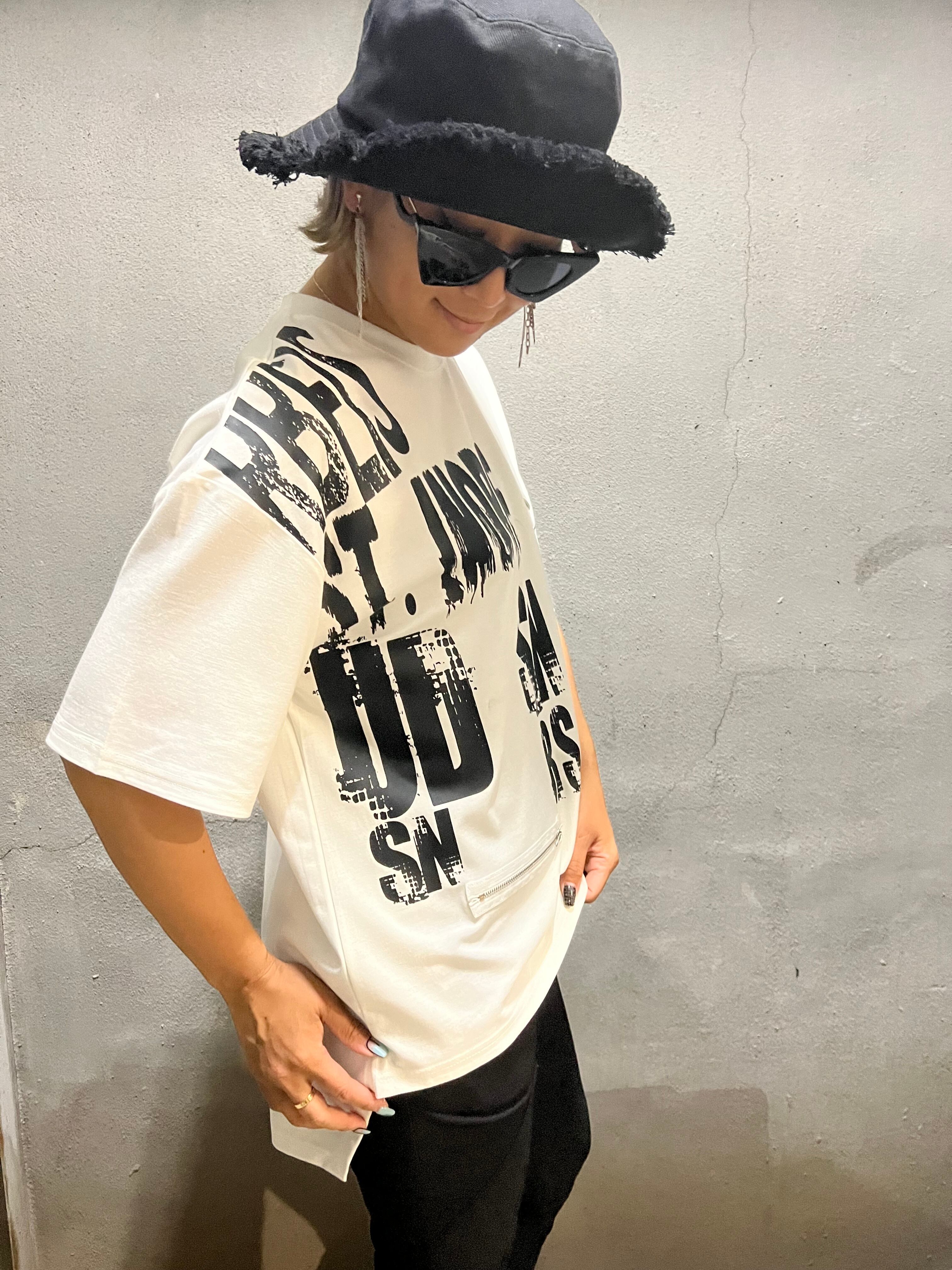 print zipper high&low design tops トップス プリント ジッパー カジュアル バイカラー 白黒 ハイアンドロー