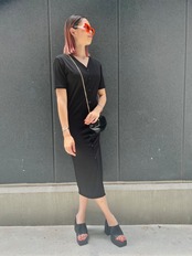 Vネックラインが程よく肌を見せ、爽やかな印象を与えます。