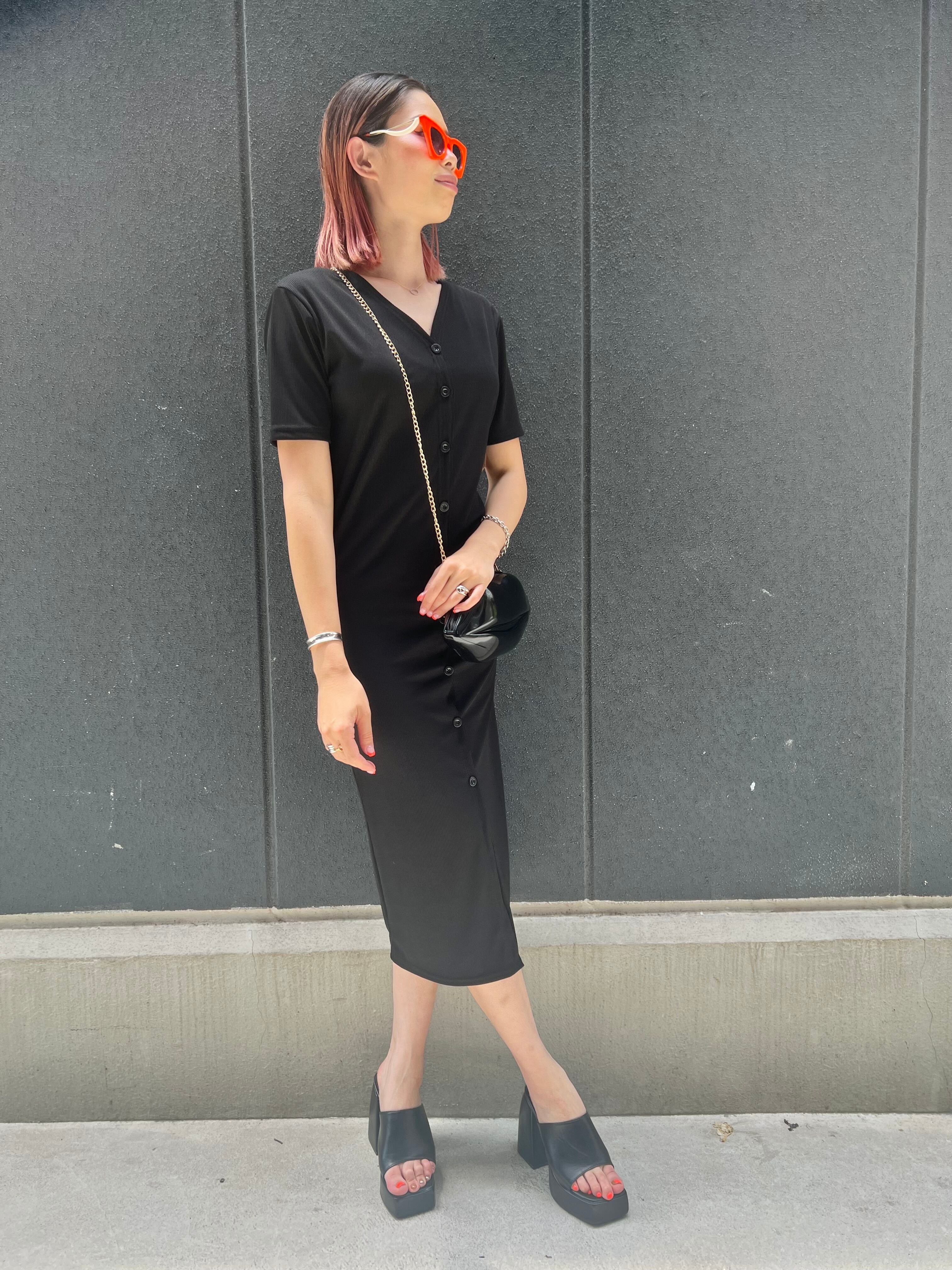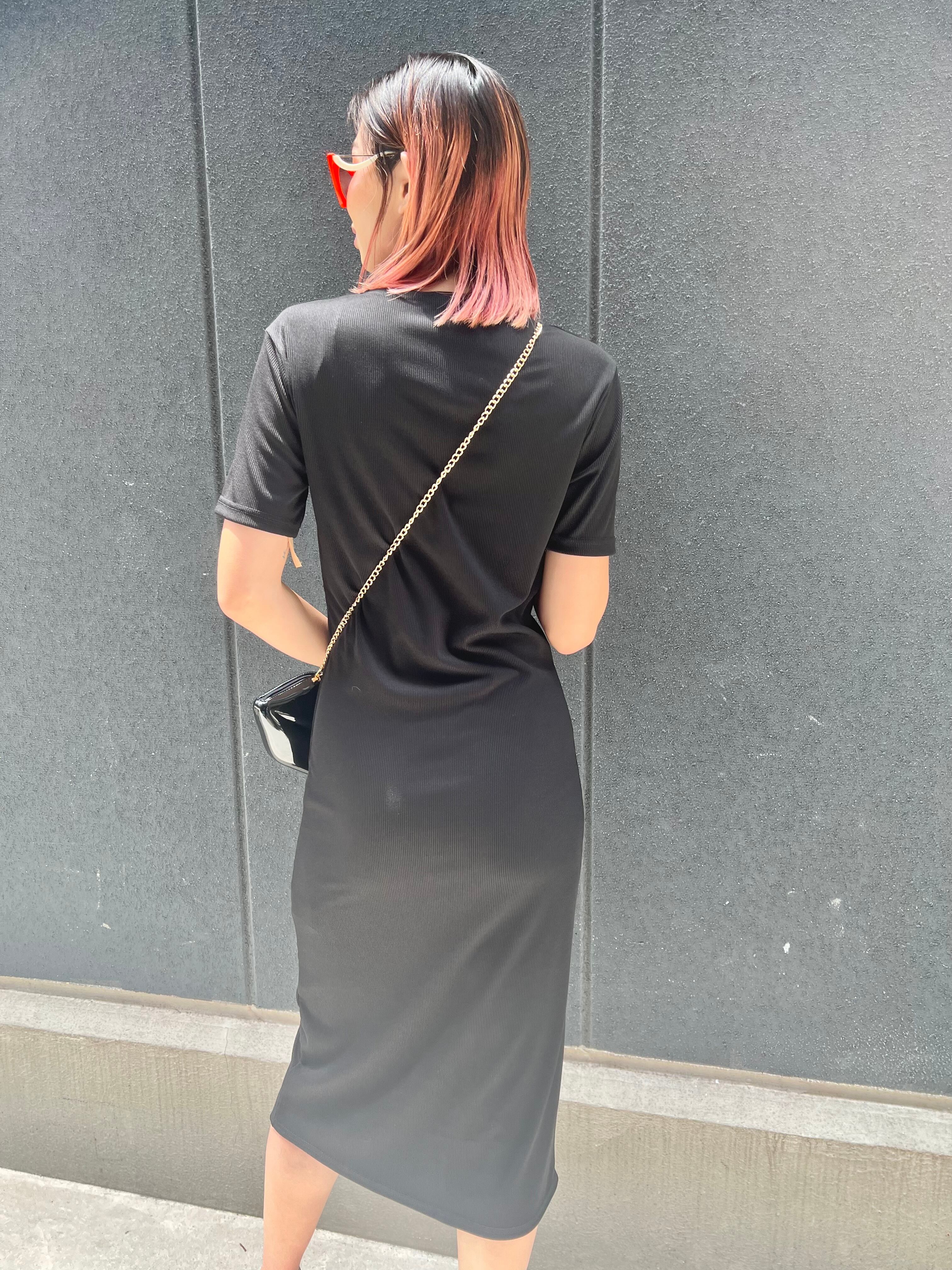 ripple slim fit short sleeve long cardigan カーディガン タイト 半袖 Vネック 細見え