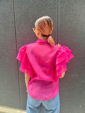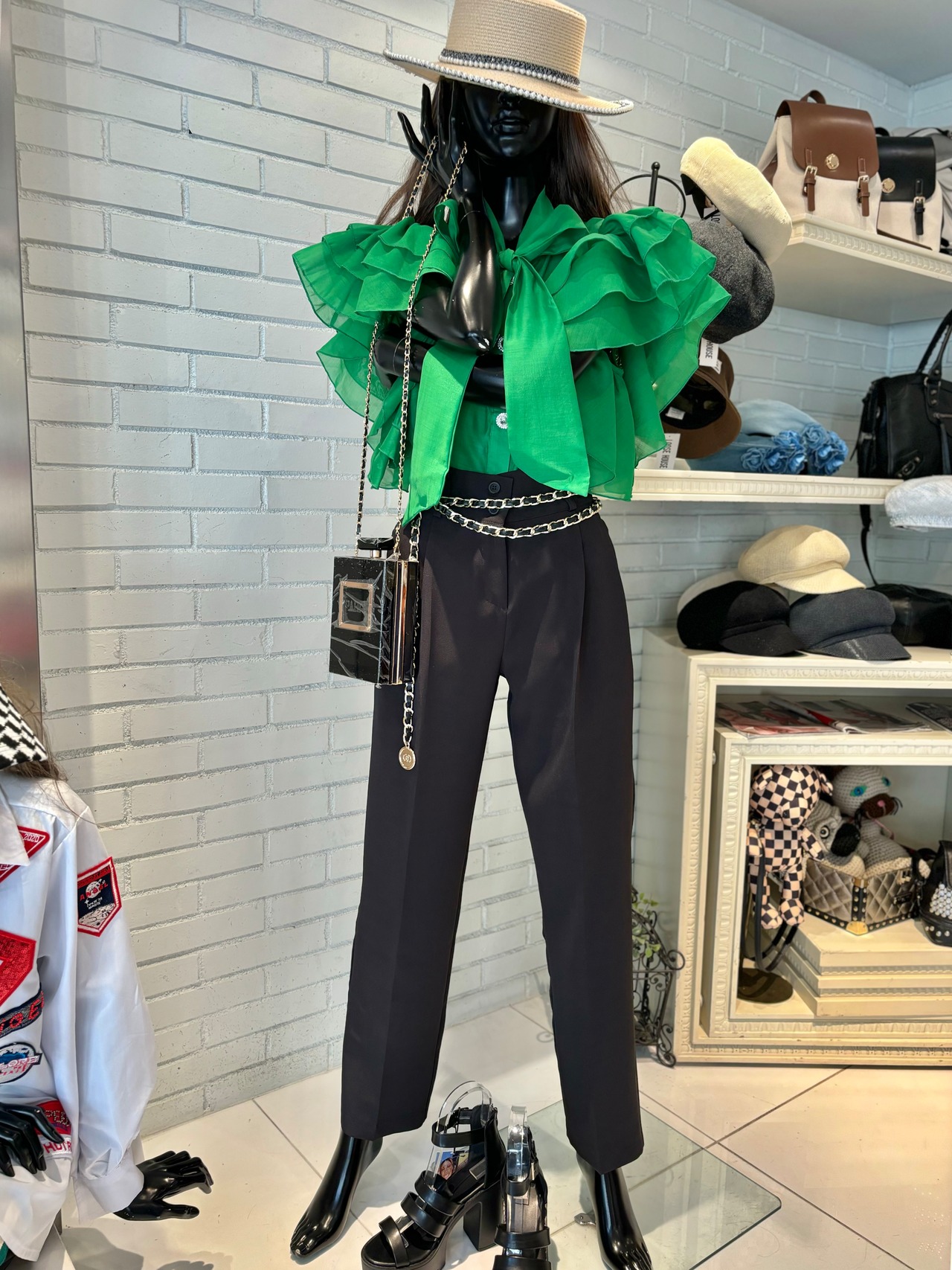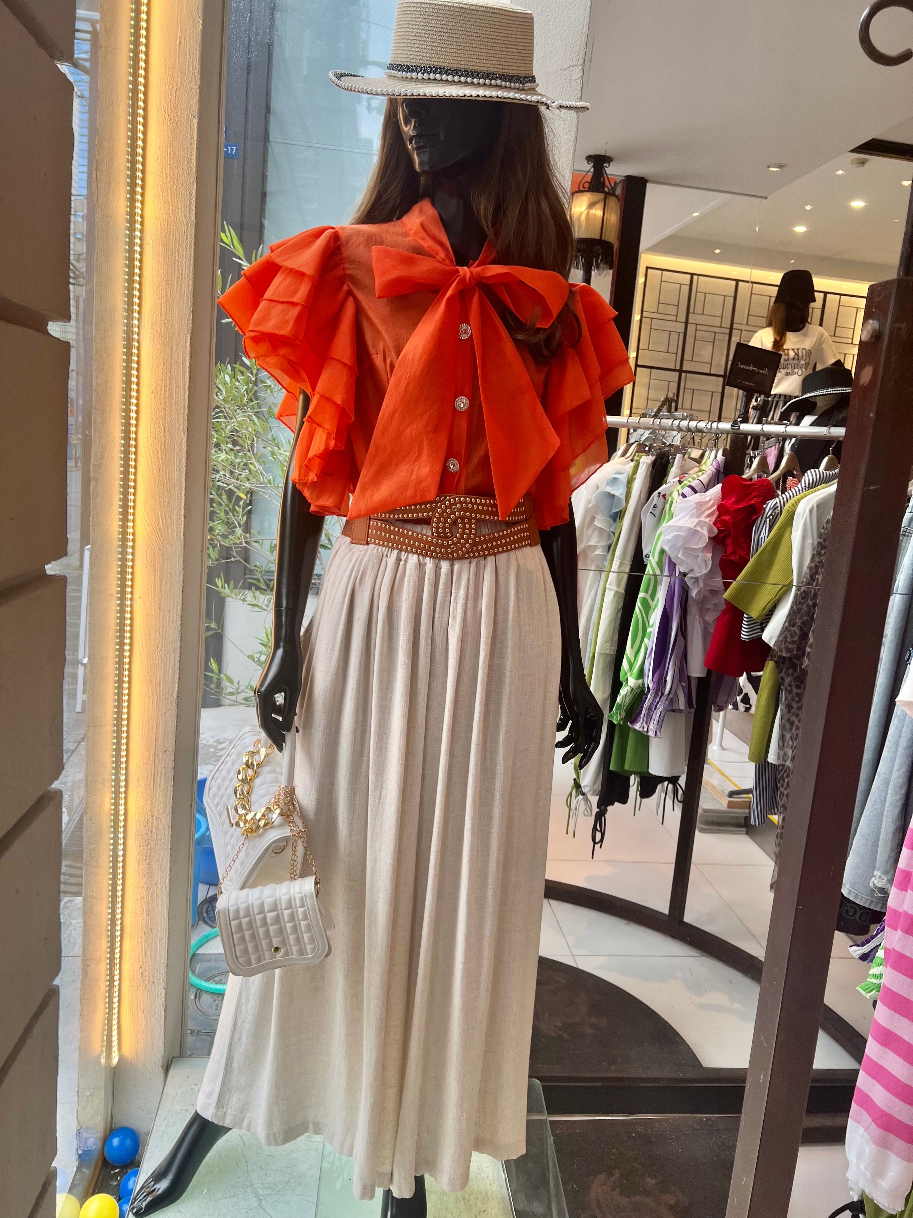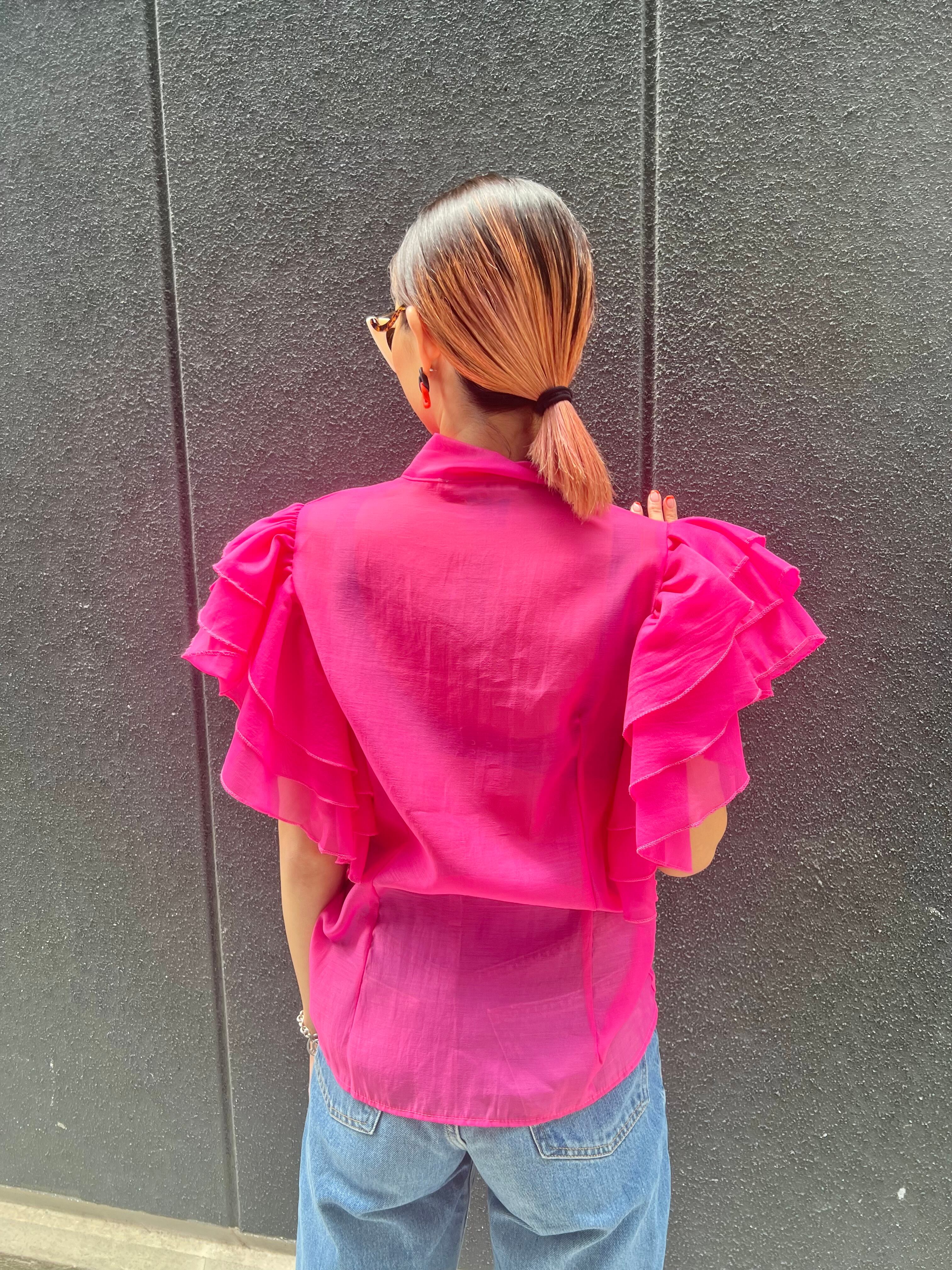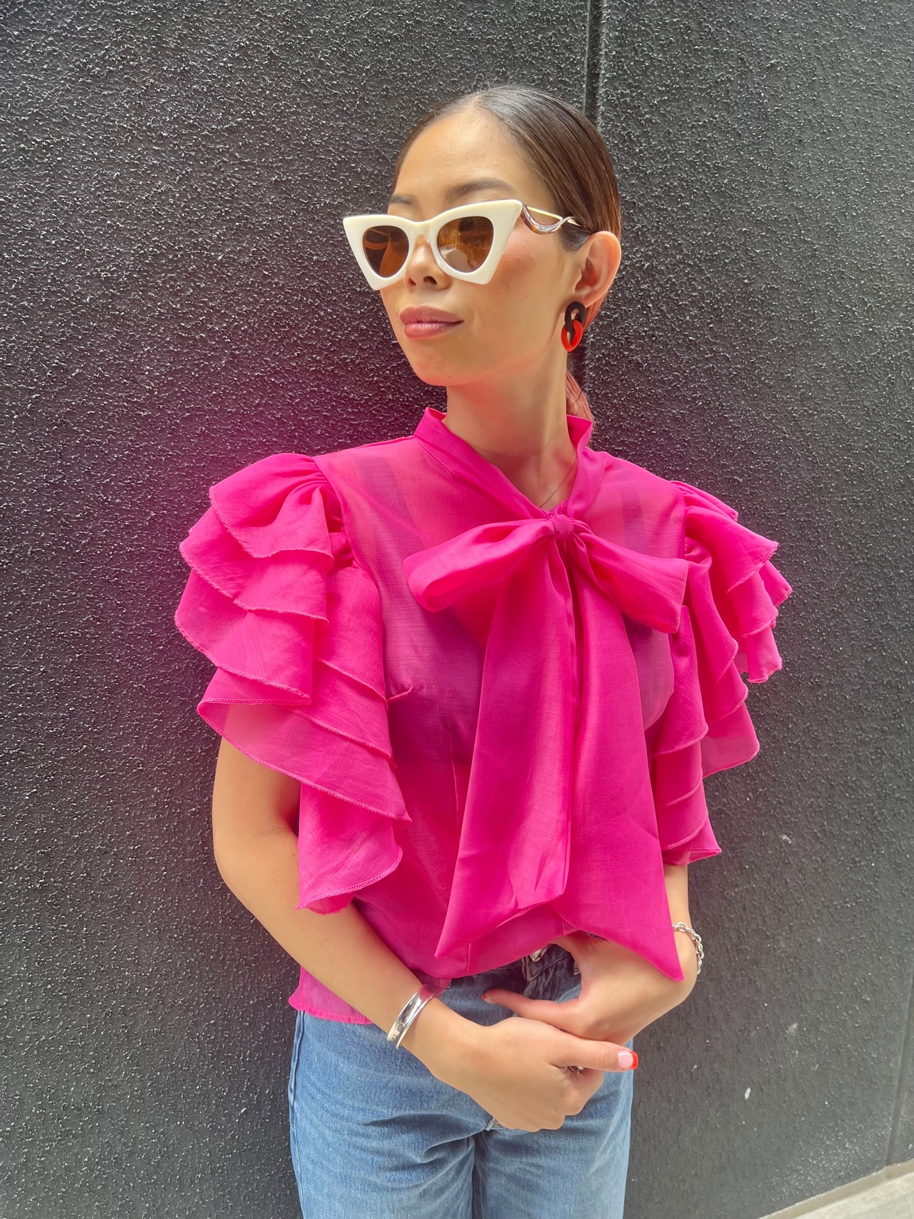 清涼感のあるオーガンジー素材が華やかなブラウス。
