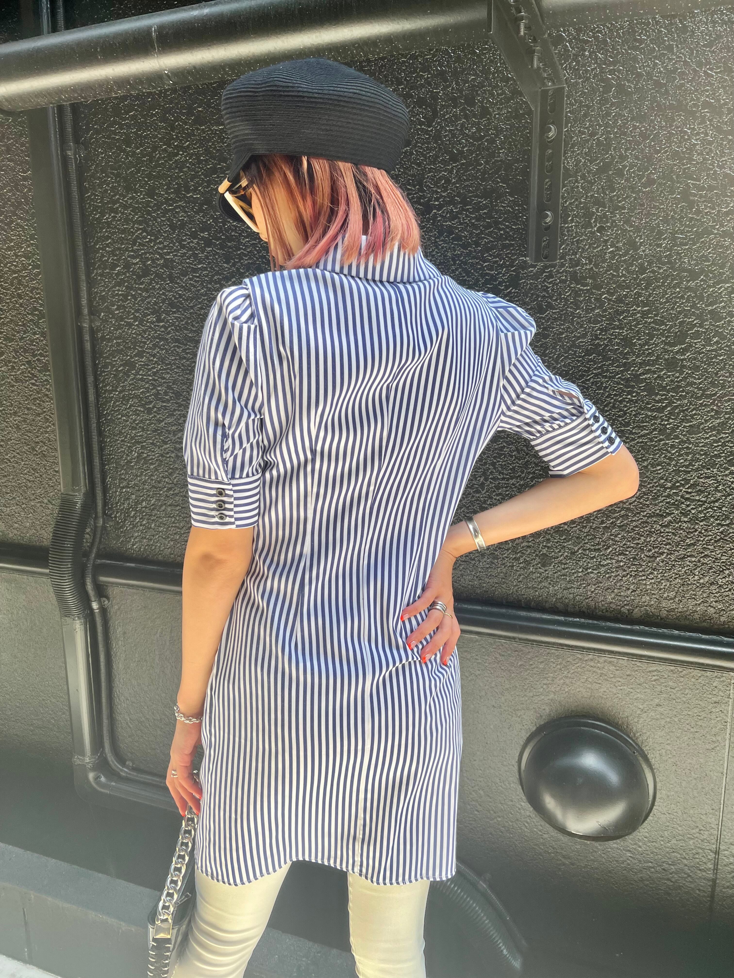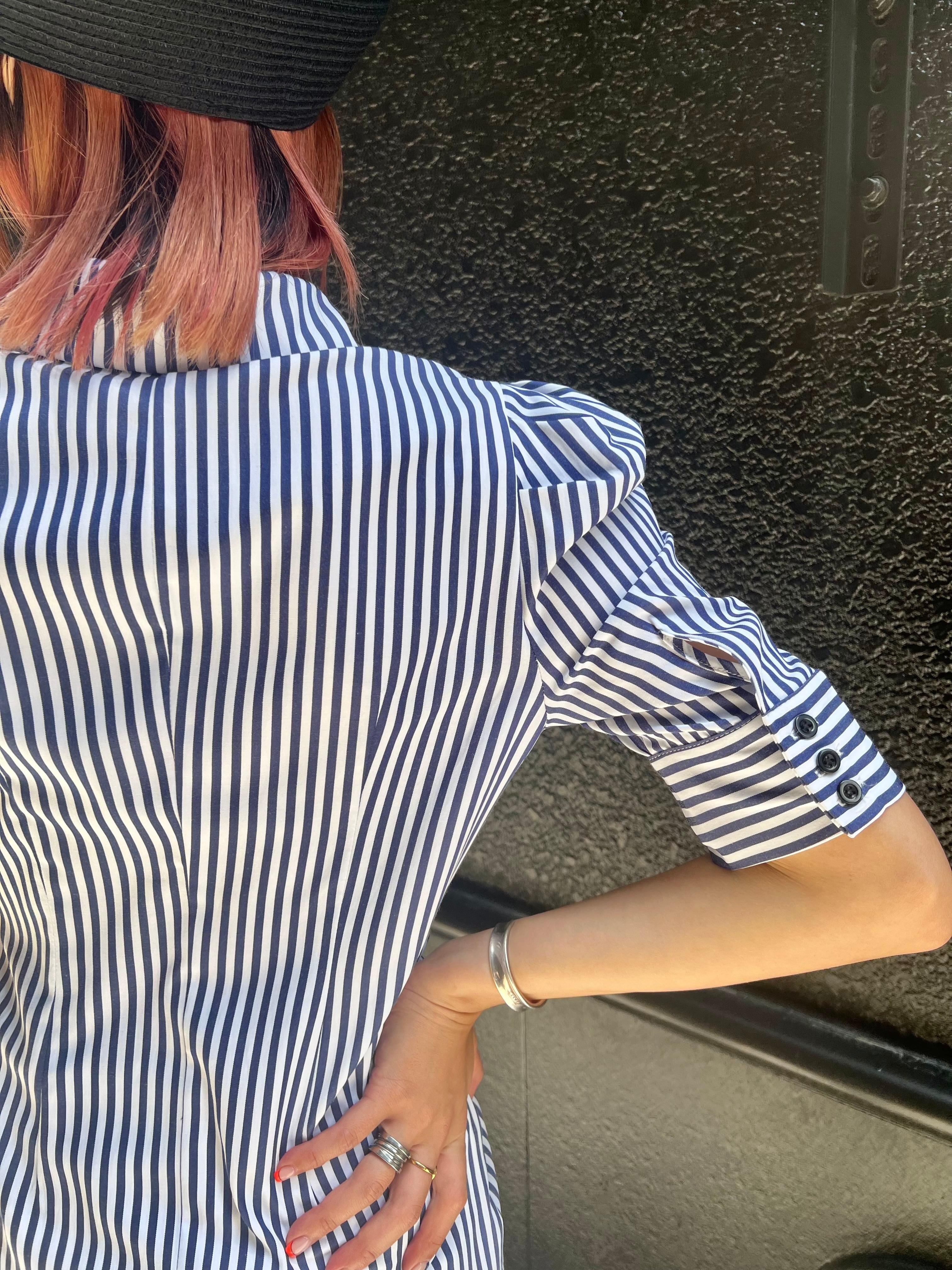 stripe gather design shirt one-piece ワンピース シャツワンピ ストライプ デザインワンピ