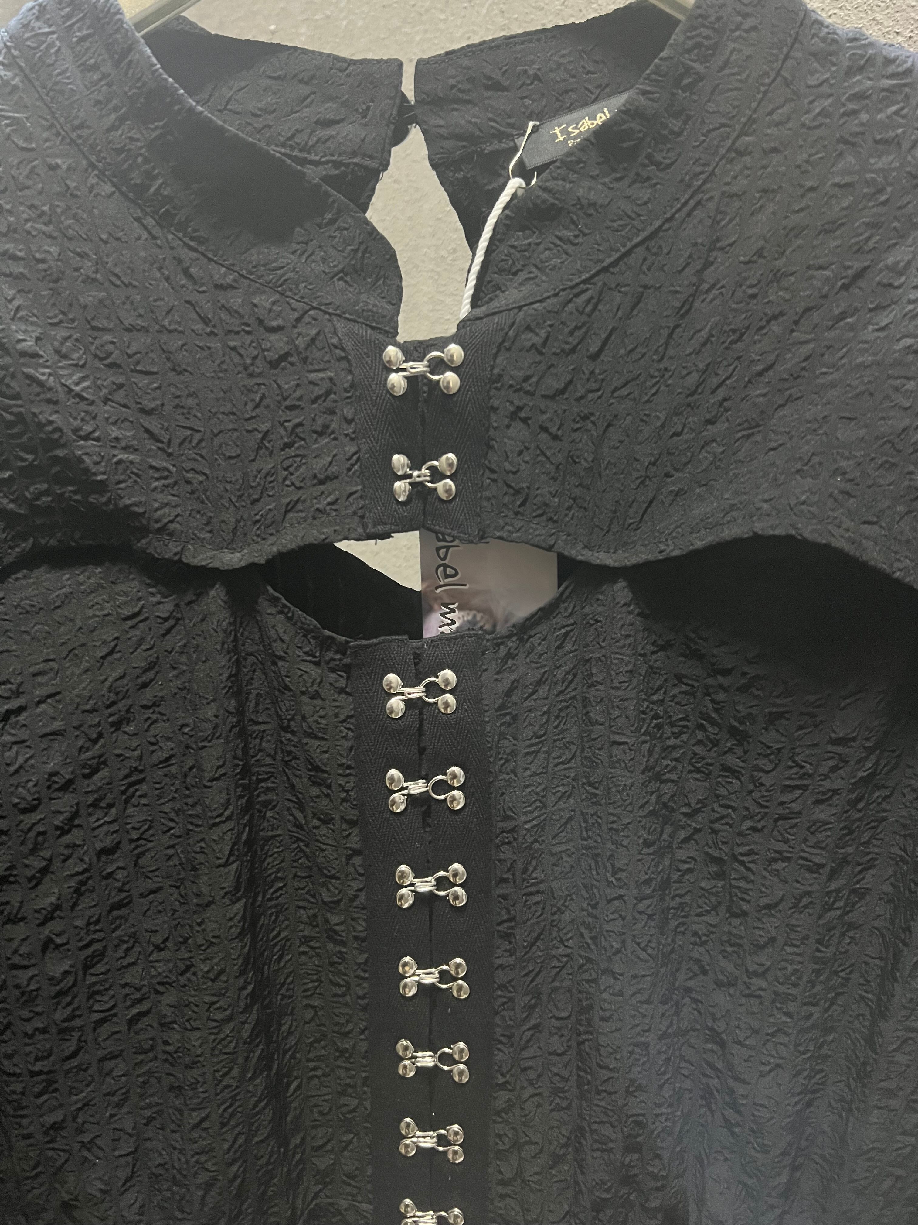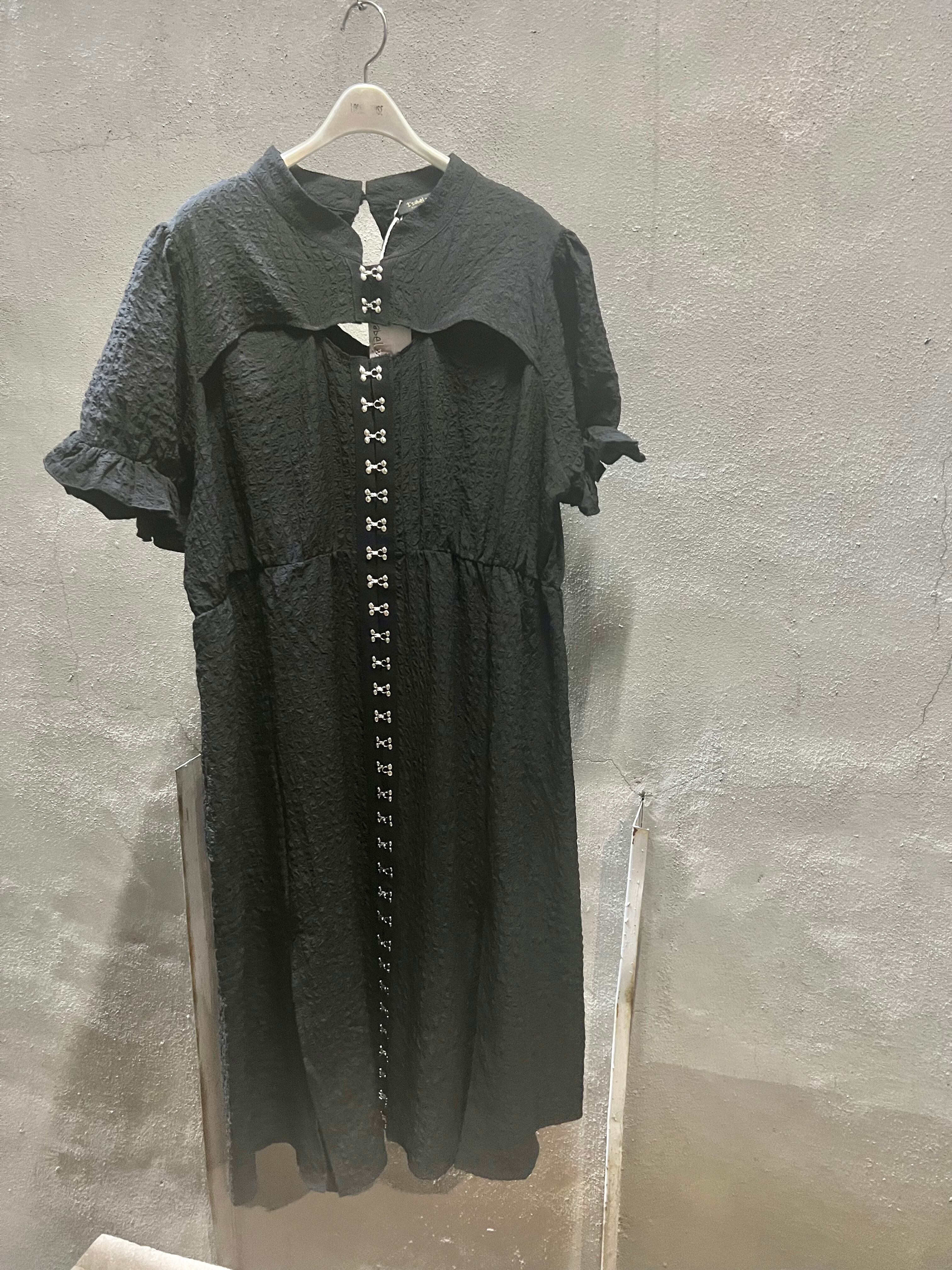 hook line design slit one-piece ワンピース デザインワンピ フック スリット 黒ワンピ