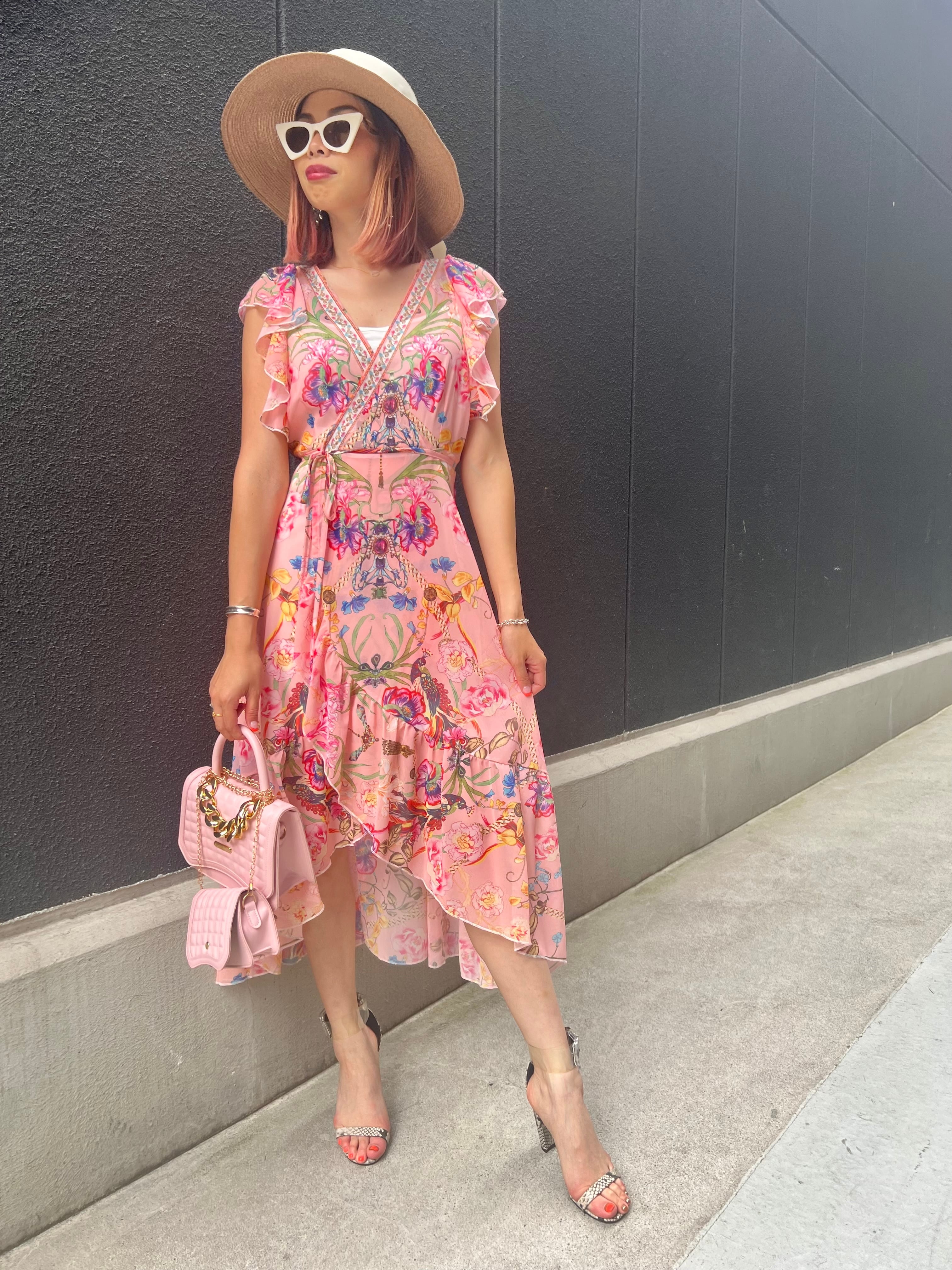 風になびく優雅なシフォン生地に、可愛らしいフリルと大人っぽい柄の魅力をプラスした、