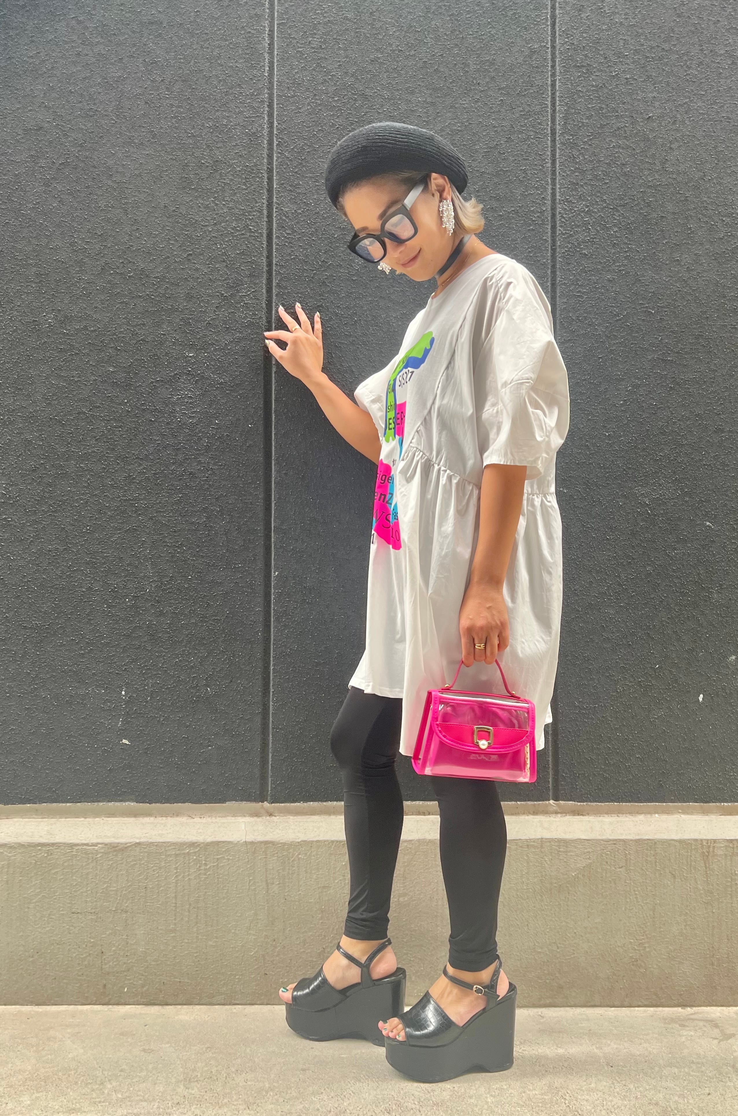 カラフルなプリントと異素材の切り替えが目を引く、