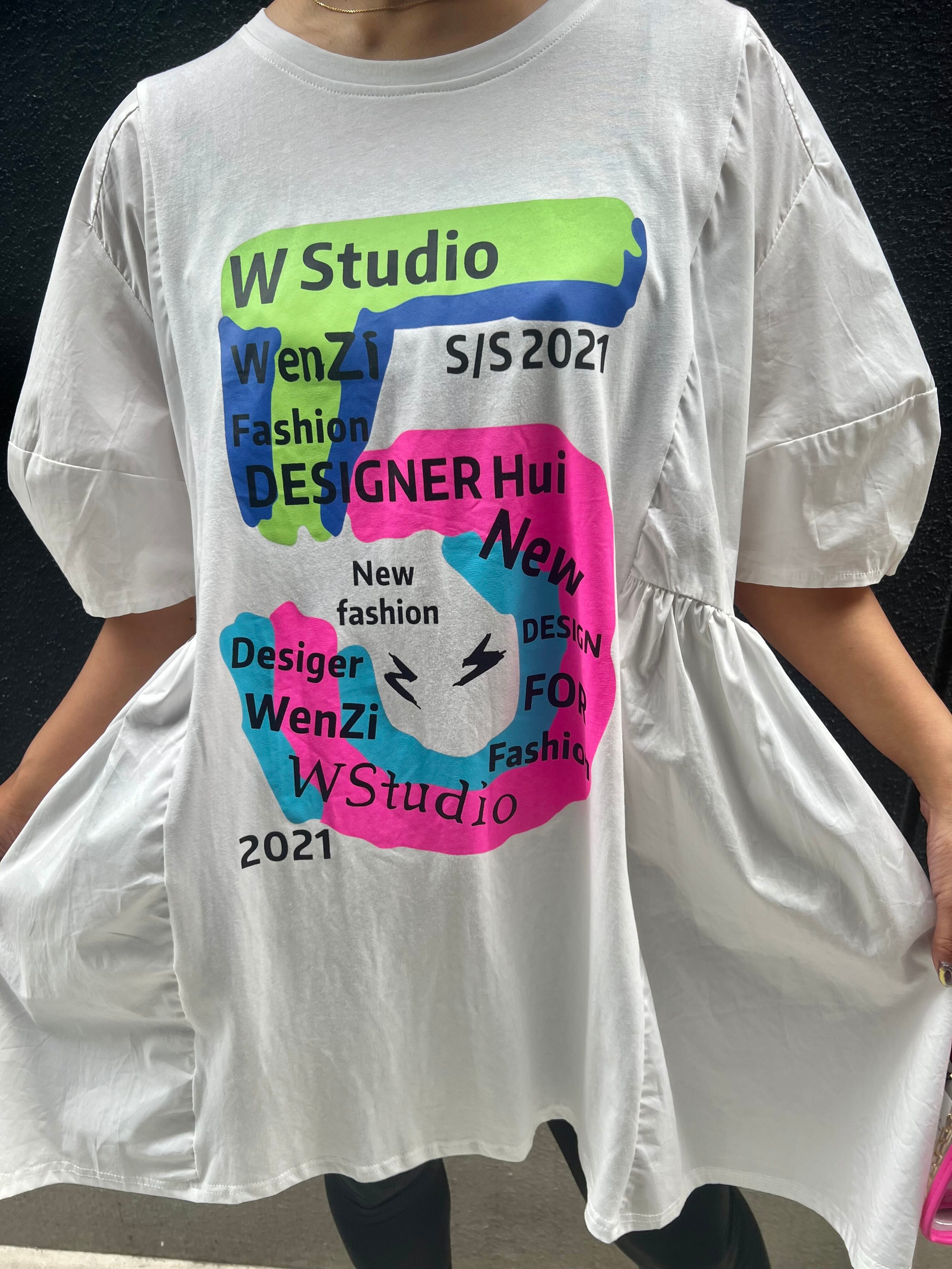 colorful 5 print change design tunic チュニック 異素材切替 デザインチュニック カラフル カジュアル