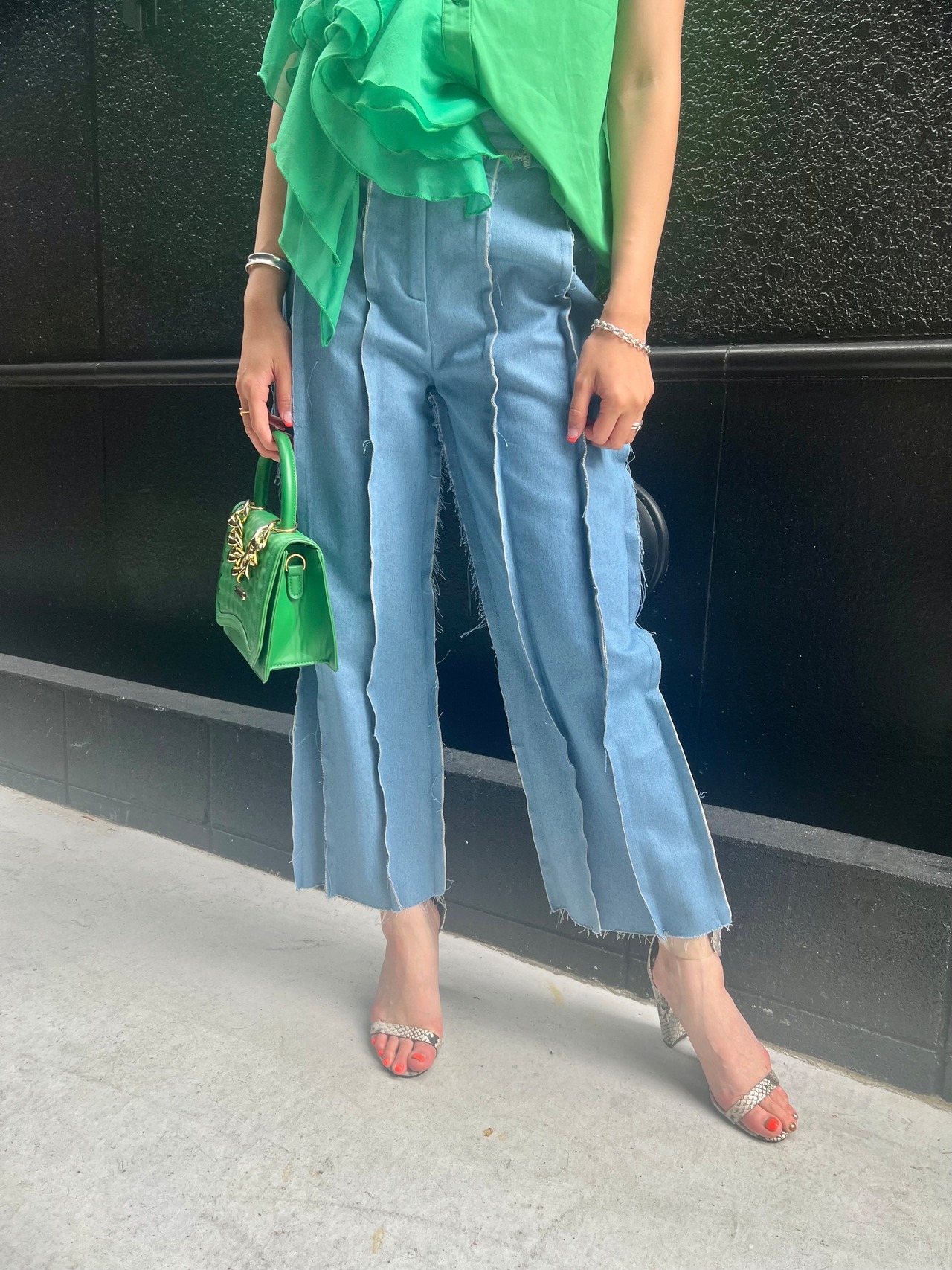 out stitch cut off change denim pants パンツ デザインパンツ デニム ステッチ カットオフ