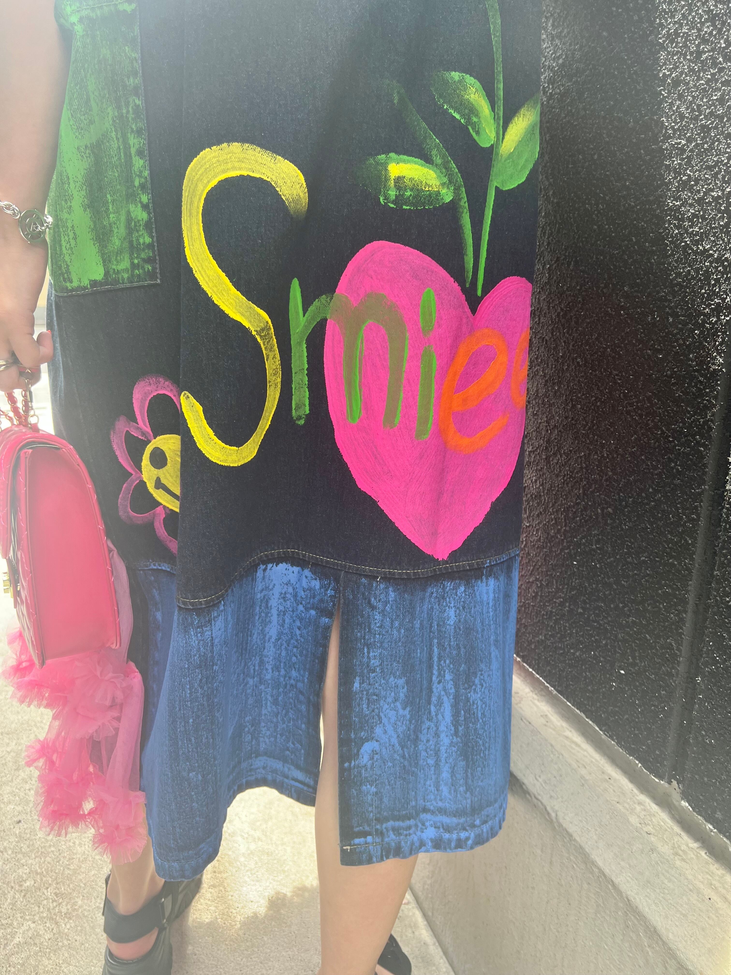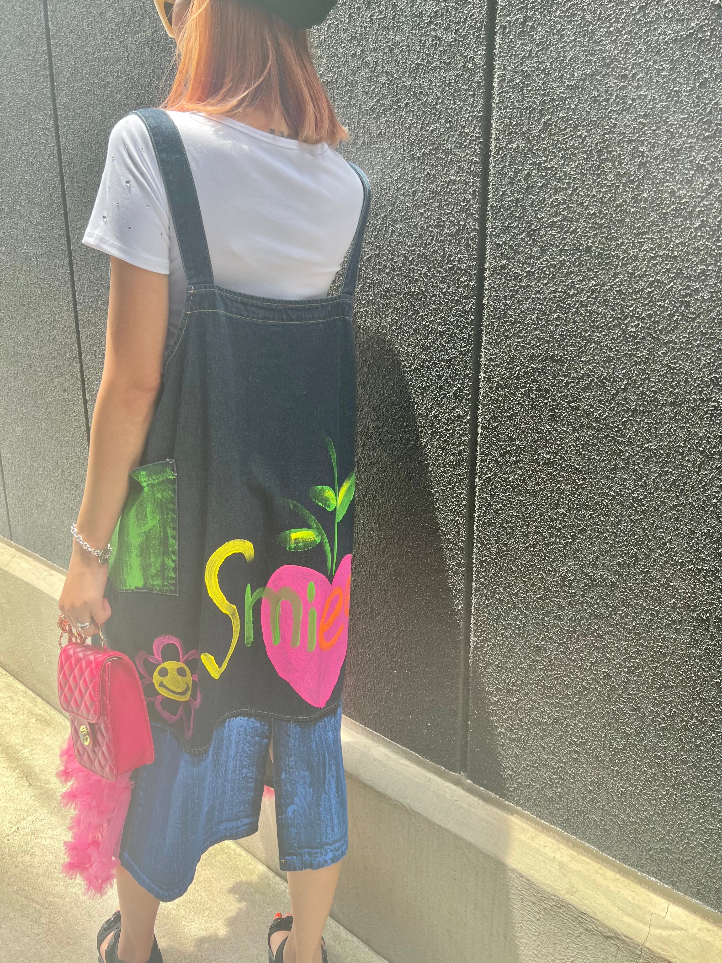 3D flower tulle frill denim salopette one-piece ワンピース サロペット ジャンパースカート デニム 花 フラワー 立体的 ペイント チュール ピンク