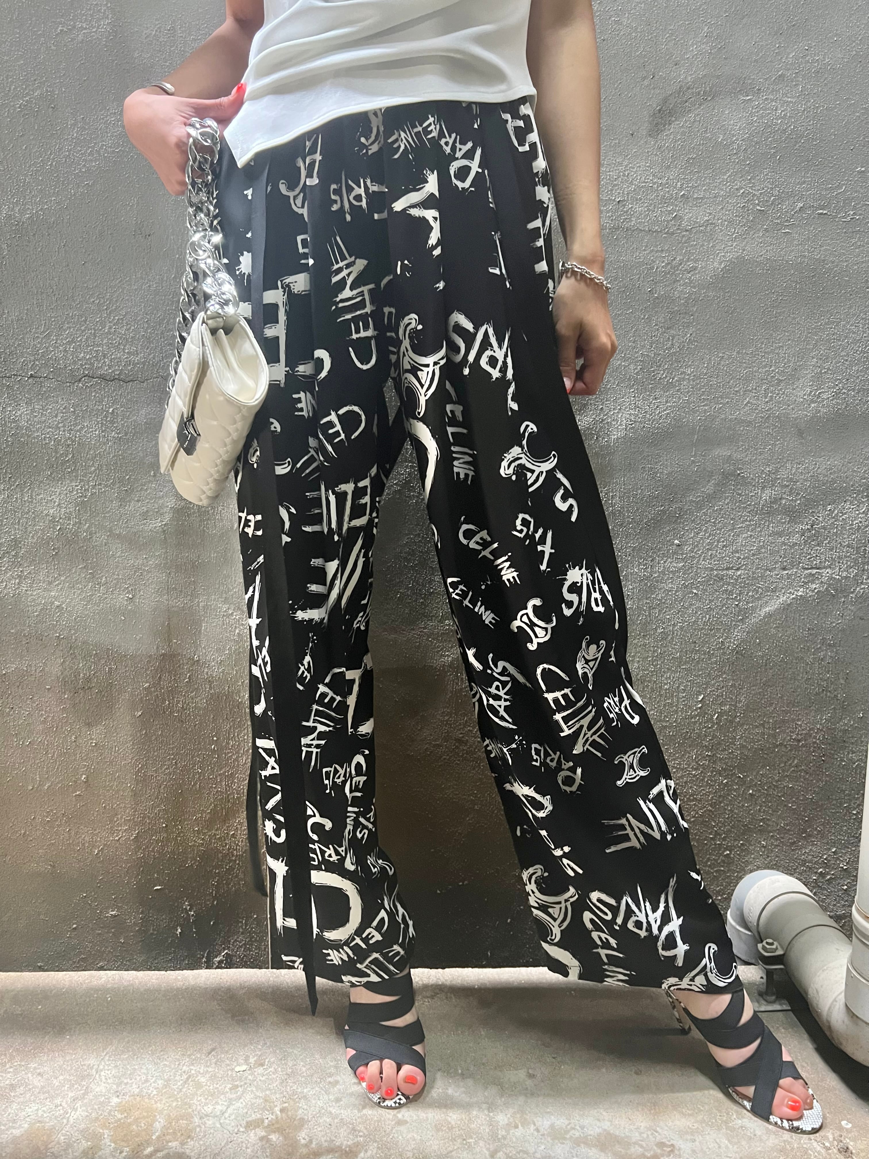 text print relax wide pants パンツ ロングパンツ 柄パンツ プリント ゴムウエスト リラックス 楽ちん