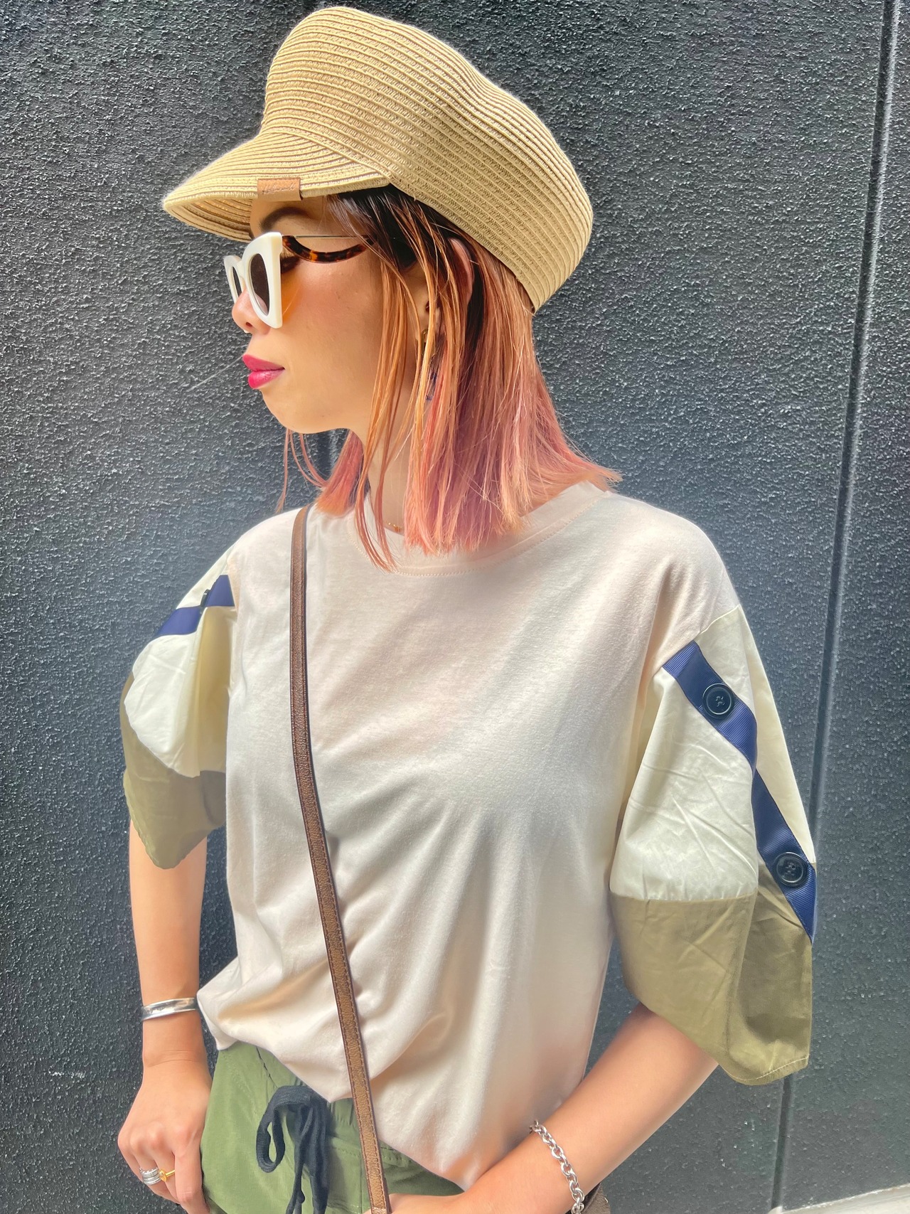 mix color design sleeve tops トップス 配色 切替デザイン デザインスリーブ カジュアル