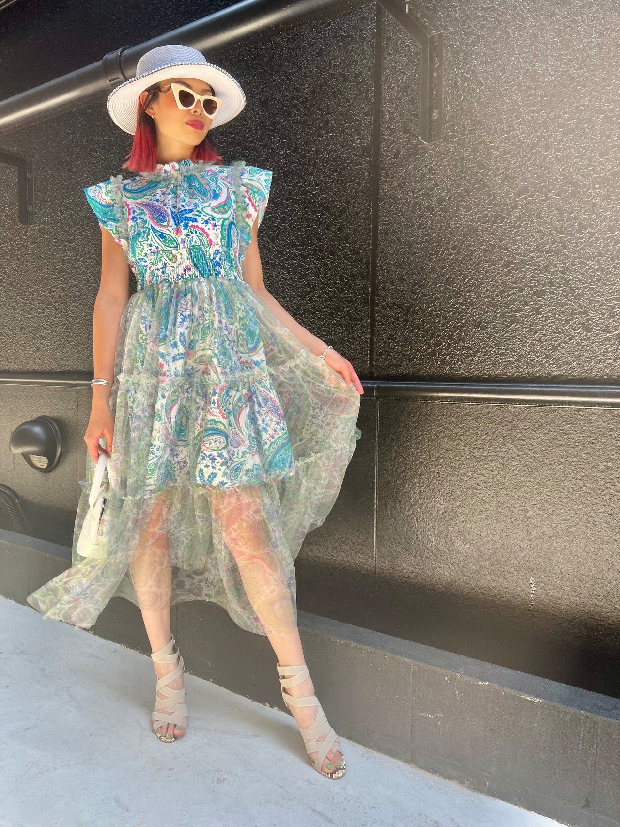tulle change paysley print design one-piece ワンピース ワンピ デザインワンピ チュール ペイズリー ギャザー