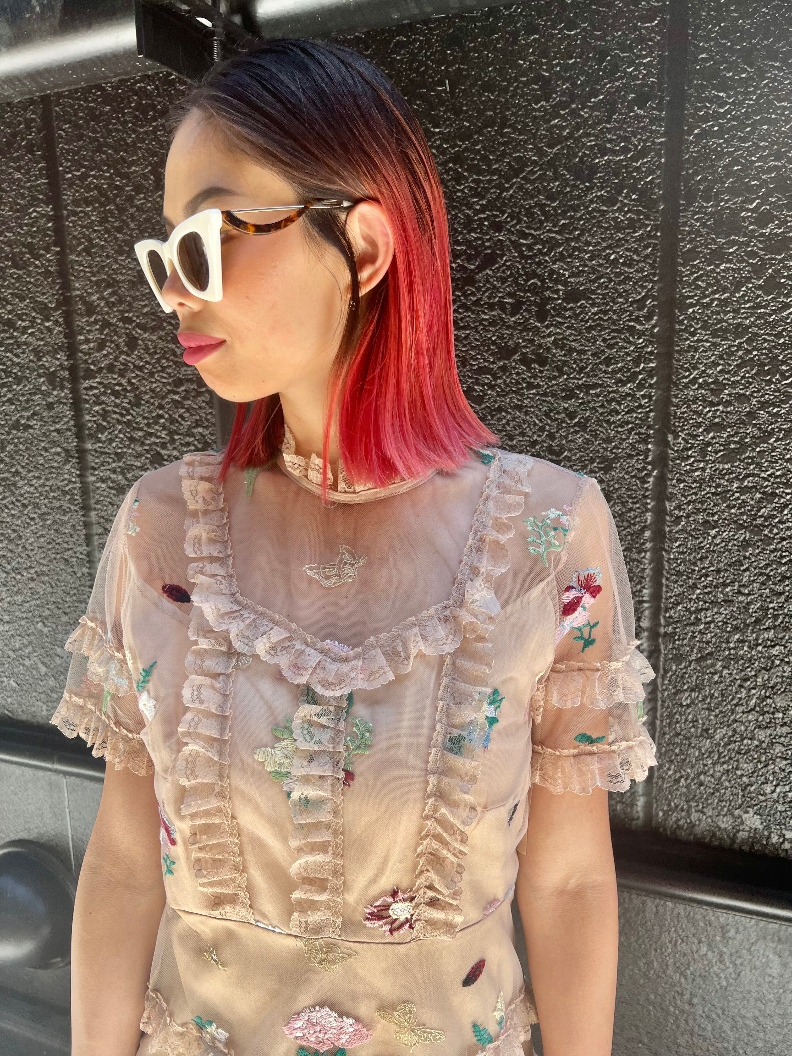 embroidery lace sweet design one-piece ワンピース デザインワンピ レース チュール ガーリー ドレス 結婚式 二次会 パーティー