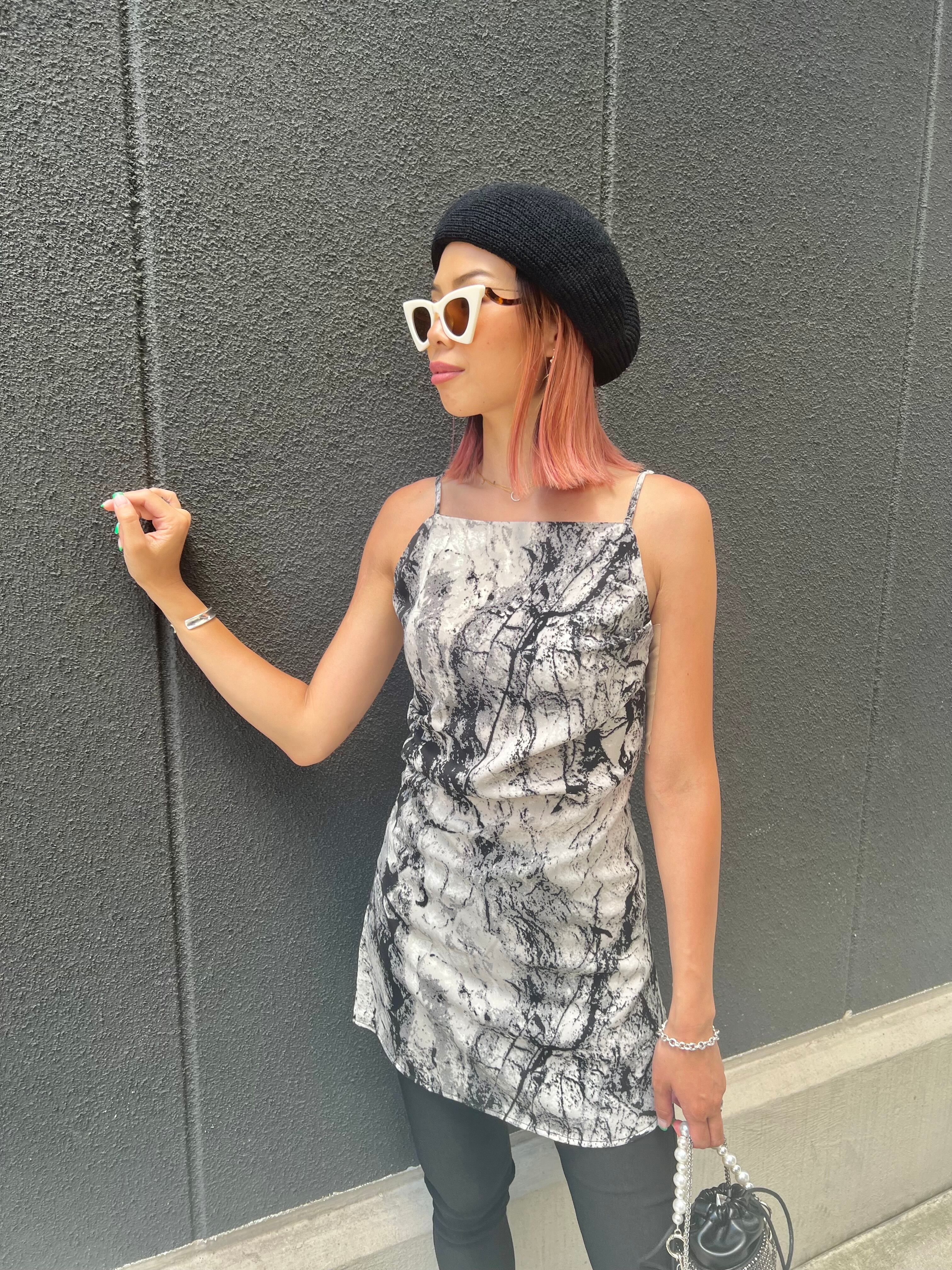 トレンド感溢れるマーブル柄が魅力のキャミワンピース!