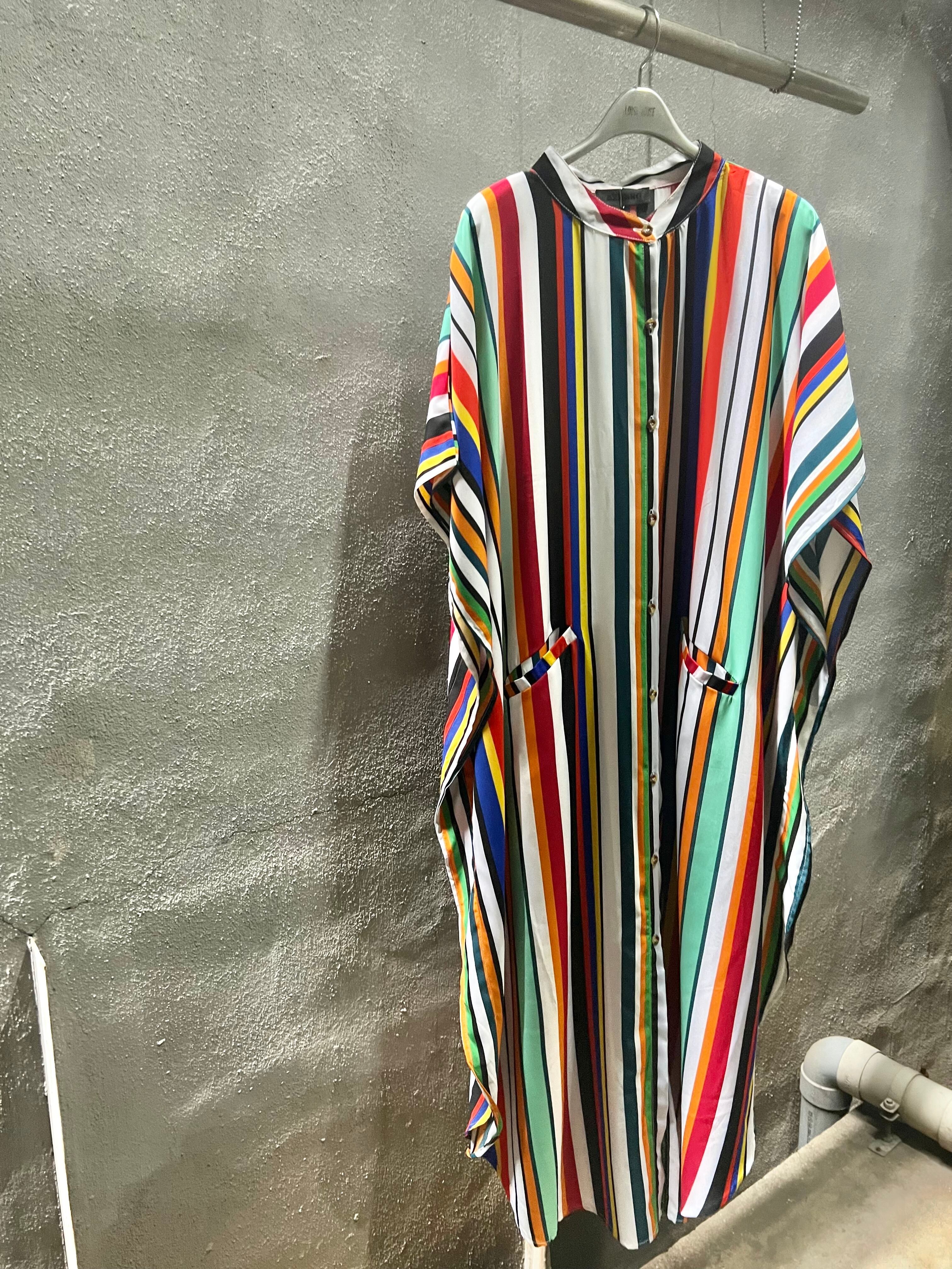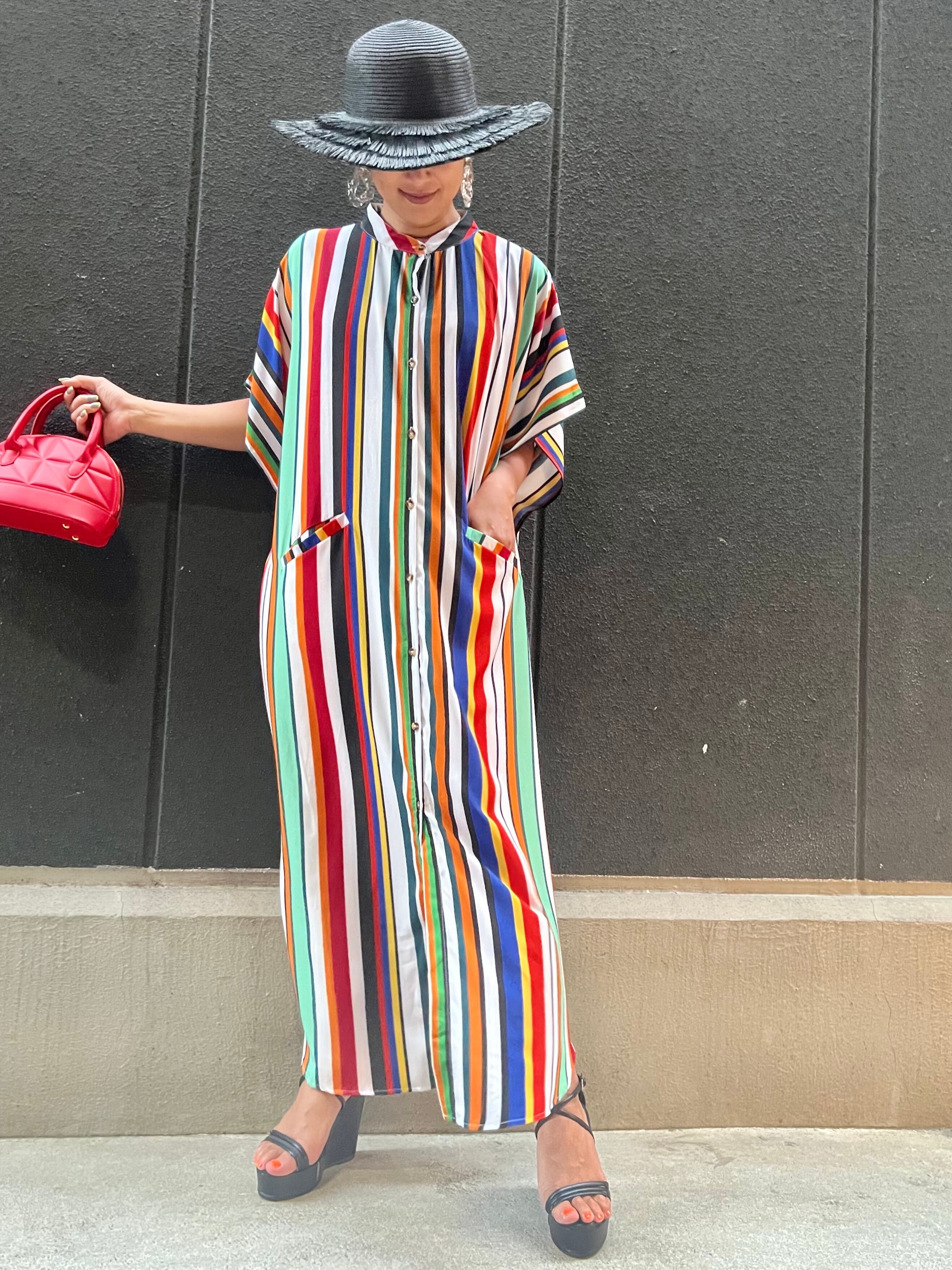 multicolored stripe loose-fit design one-piece ワンピース ワンピ ストライプ マルチカラー カラフル オーバーシルエット ゆったりめ