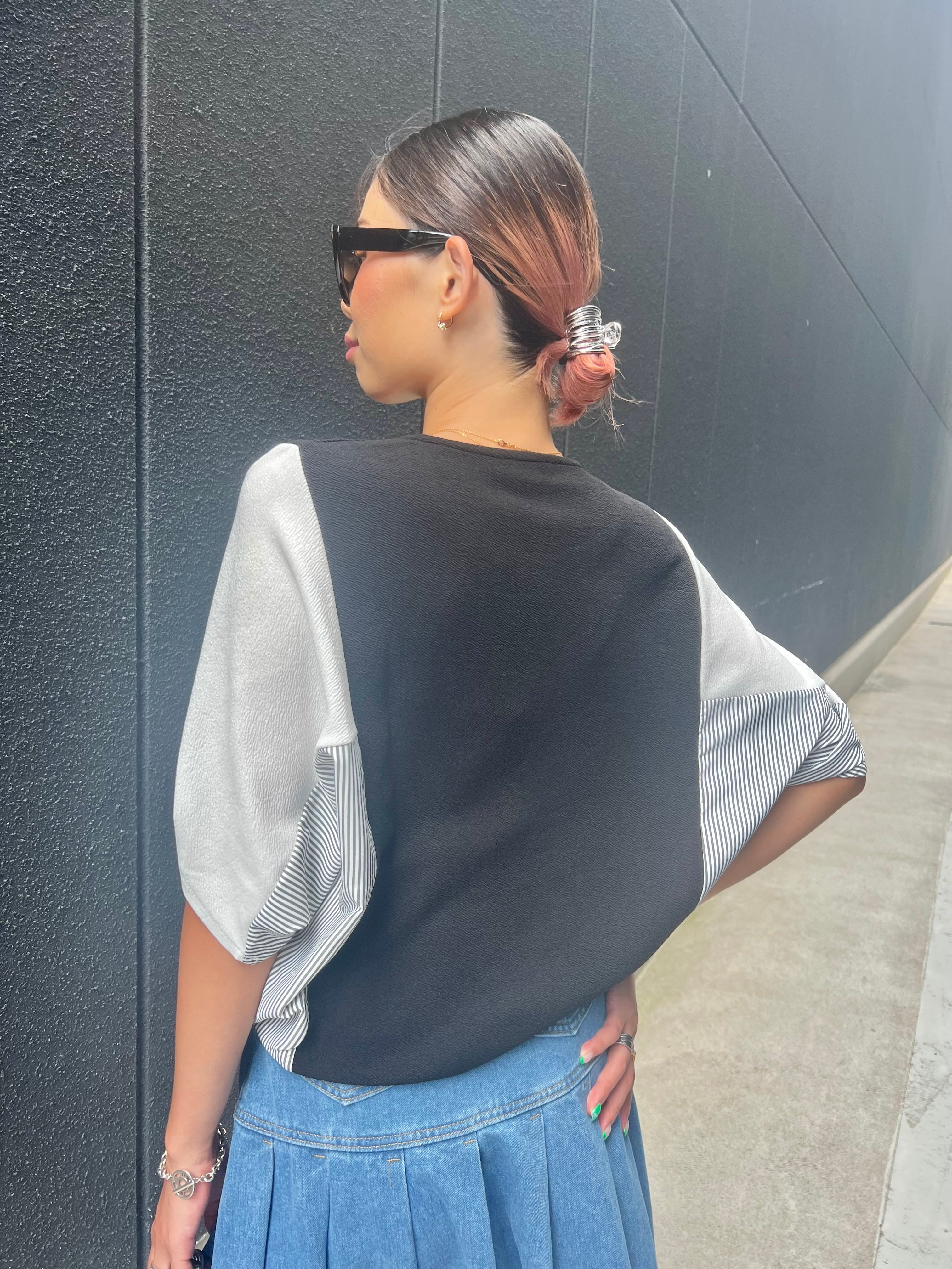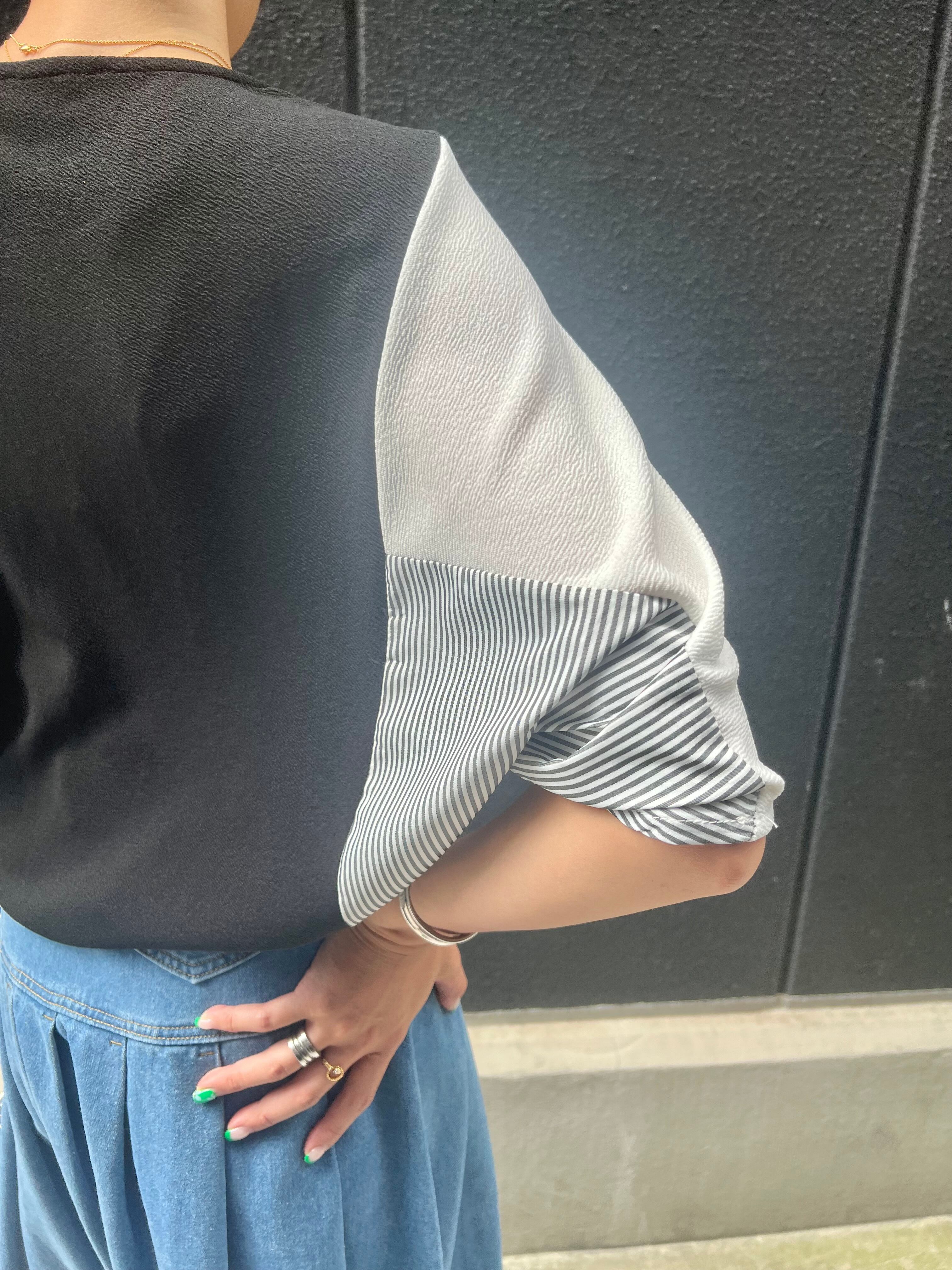 袖の切り替えデザインが印象的なこのトップスは、おしゃれ好きな女性にぴったり♡