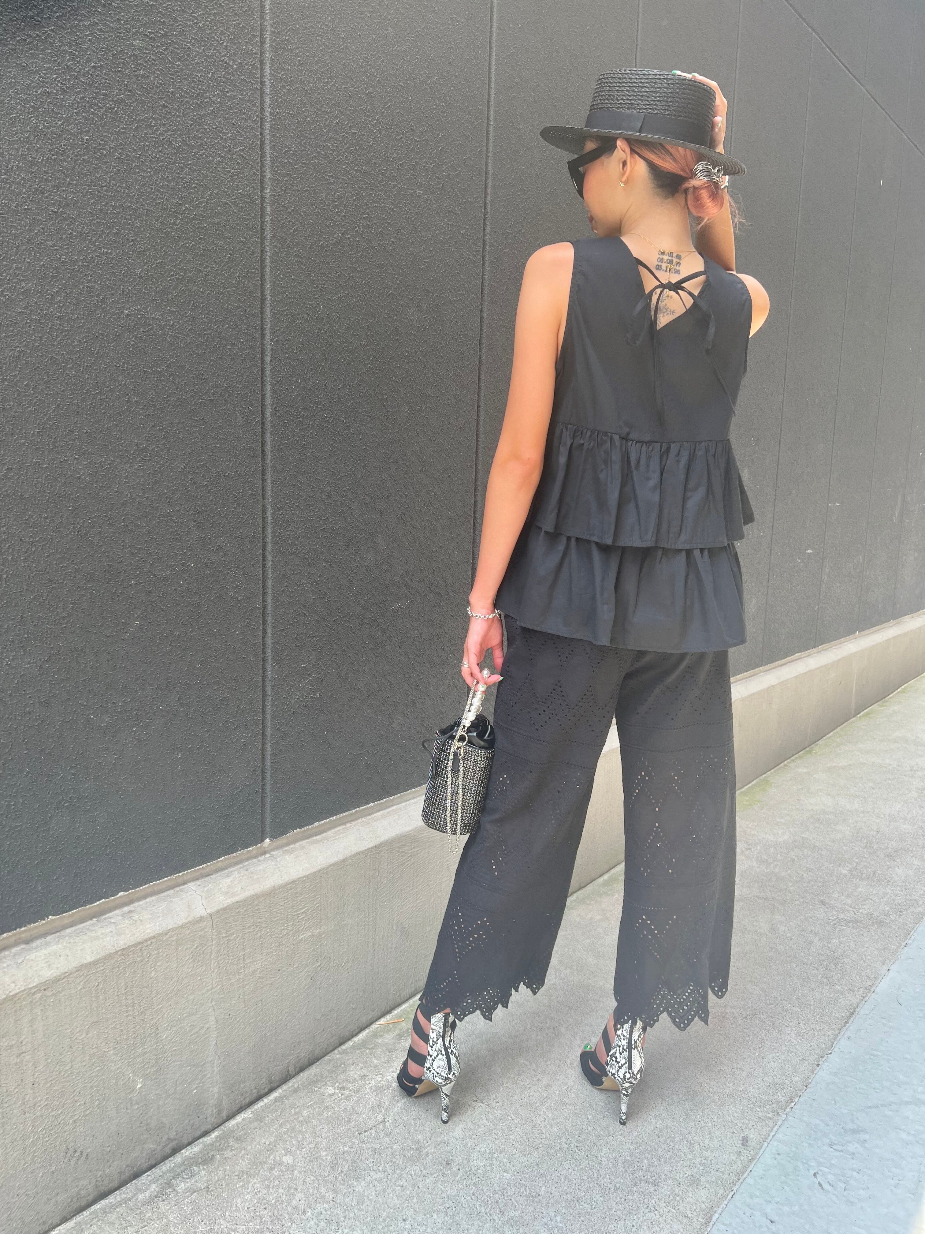 lace scala hem long pants パンツ レース コットン ゴムウエスト 夏 涼しい リラックス