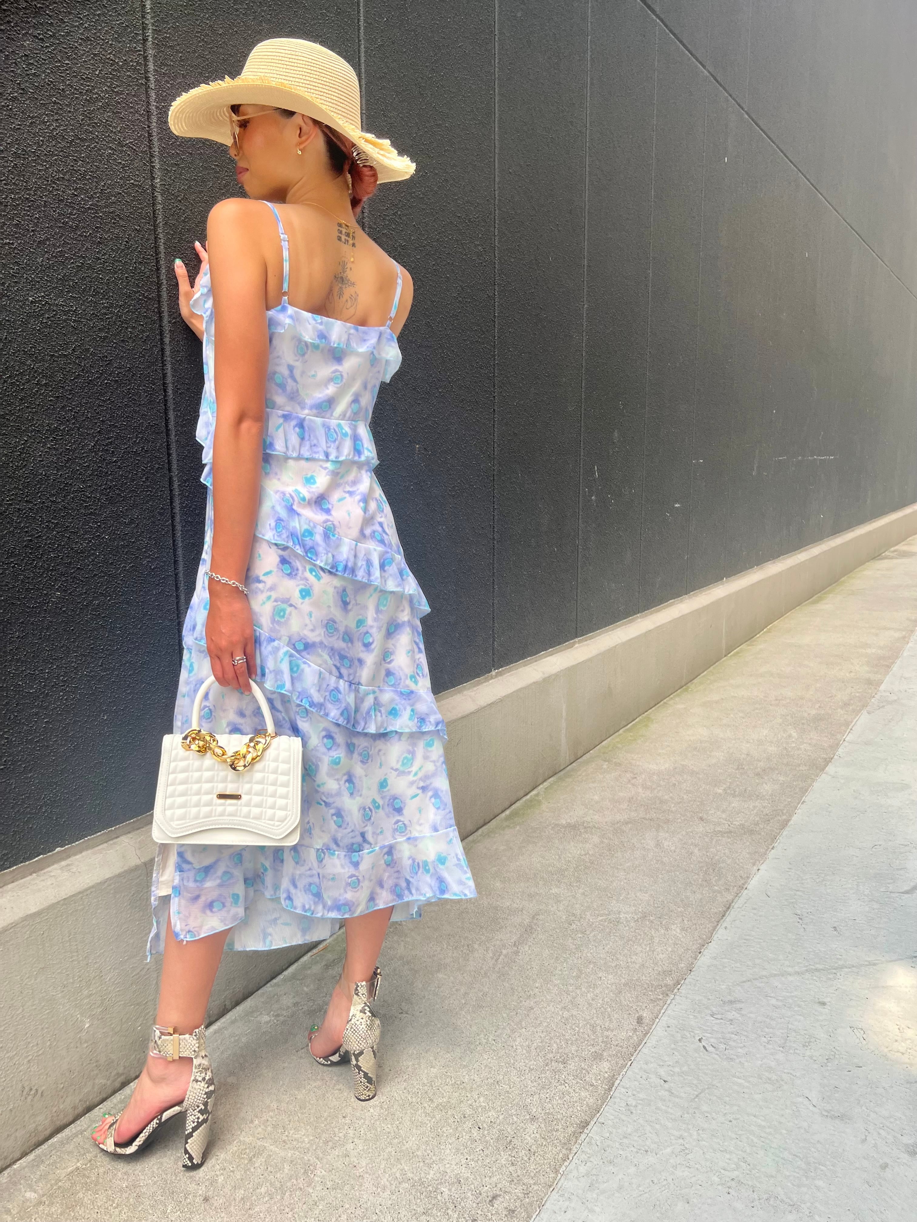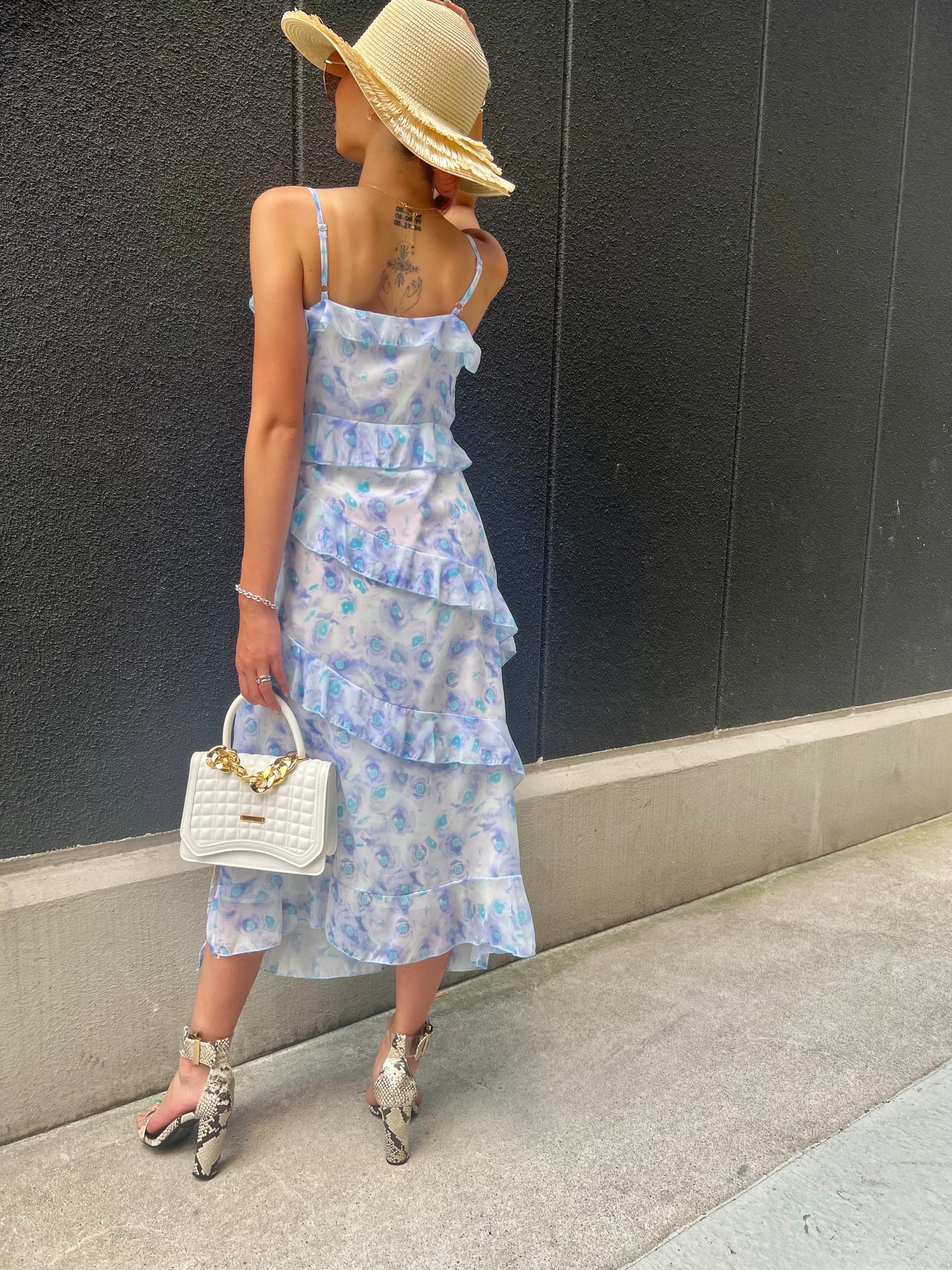 flower print chiffon frill cami one-piece ワンピース ワンピ キャミワンピ 花柄 フリル シフォン