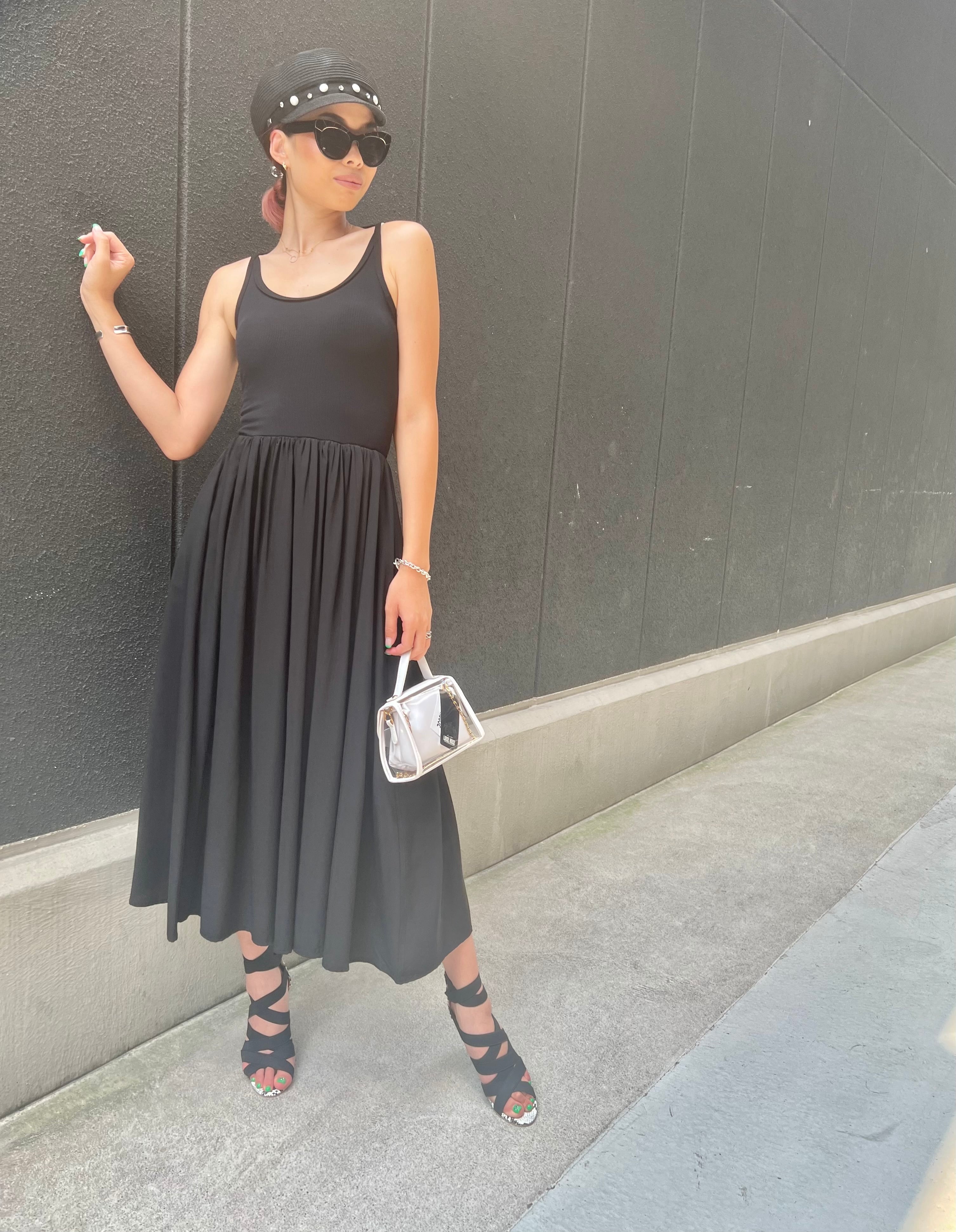 tank gather docking long one-piece ワンピース ワンピ 黒 ブラック タンク ギャザー 重ね着