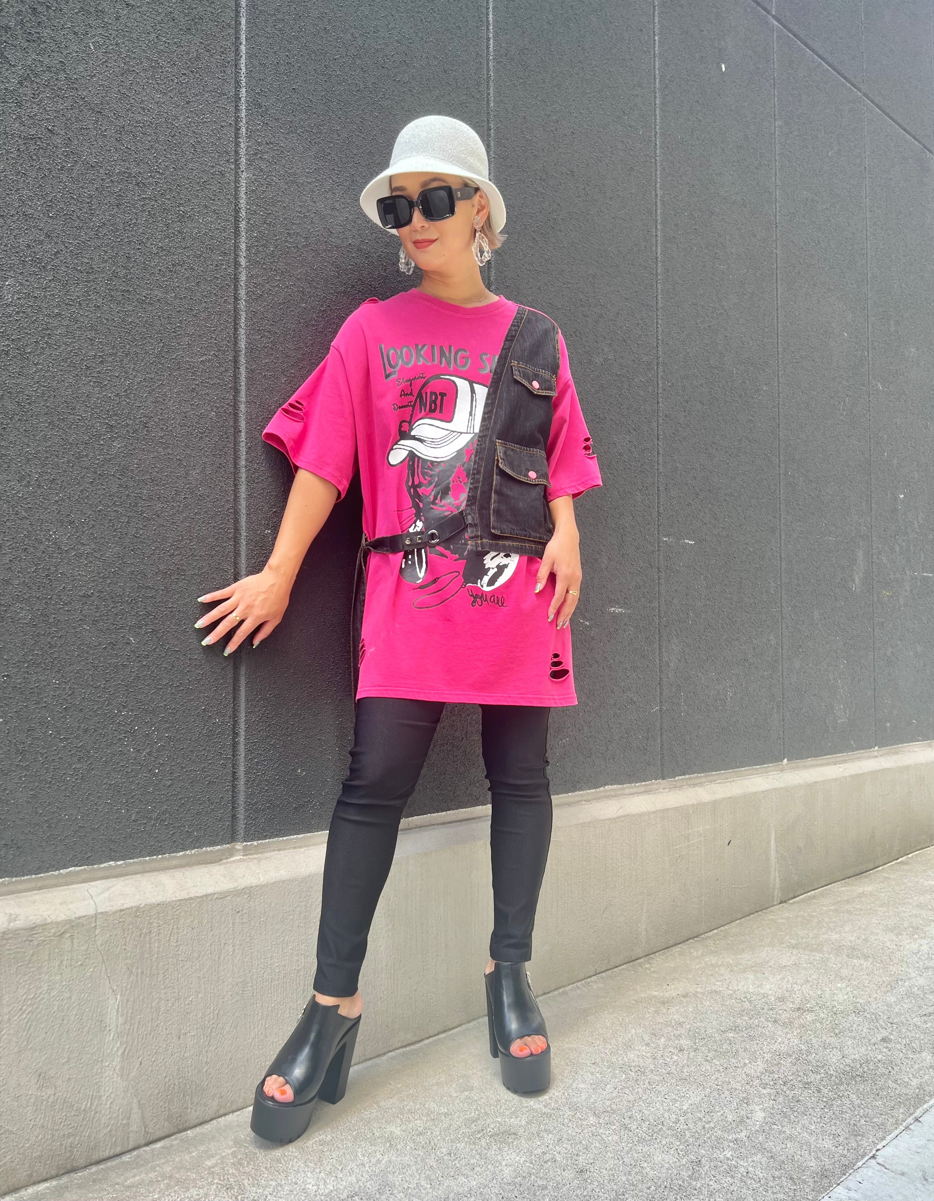 ユニークなアシンメトリーデザインが個性的なデザインTチュニック。