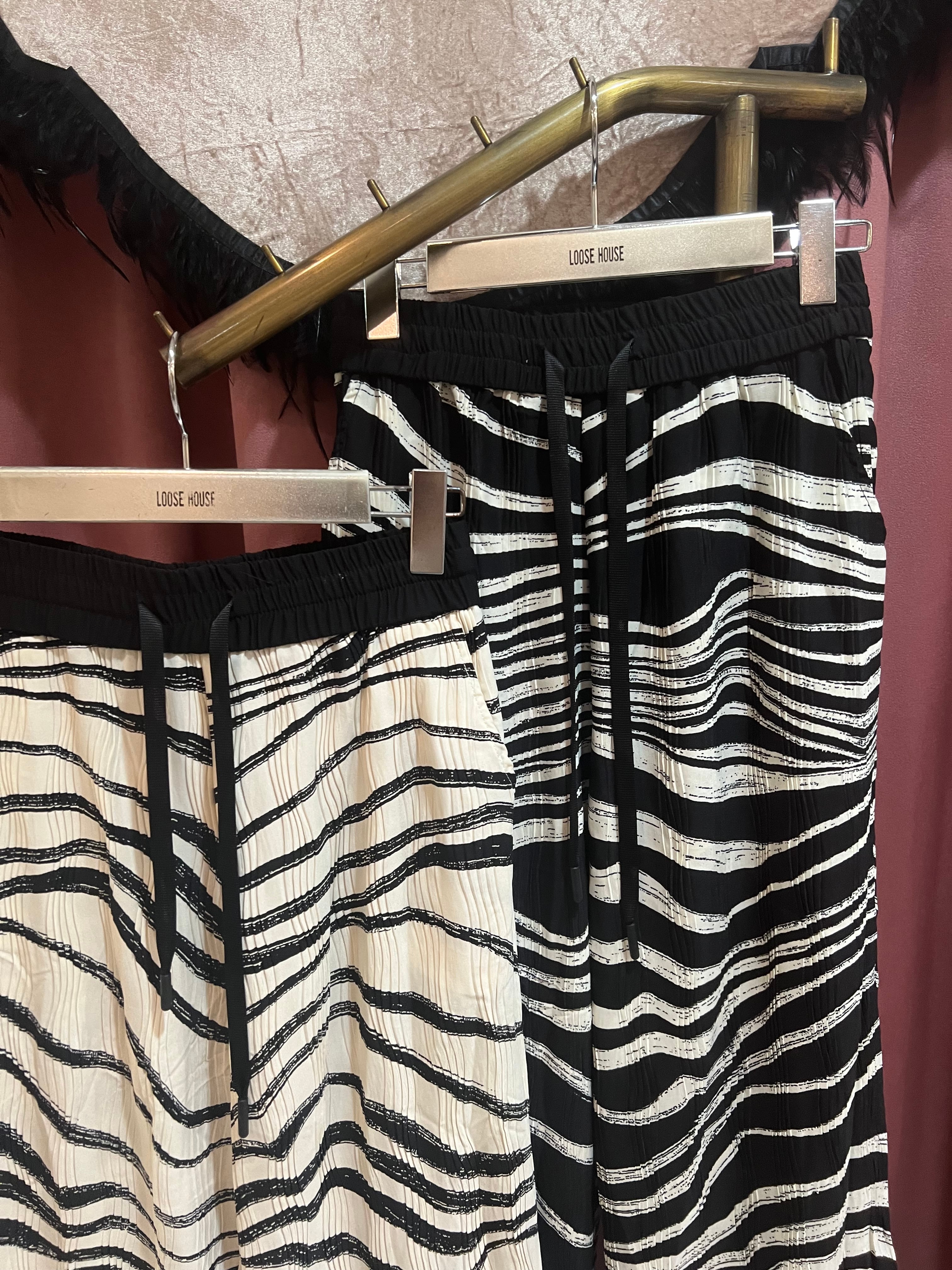 bi-color print wave pleats pants パンツ プリーツ ゴムウエスト バイカラー ウェーブ ゼブラ リラックス ラフ