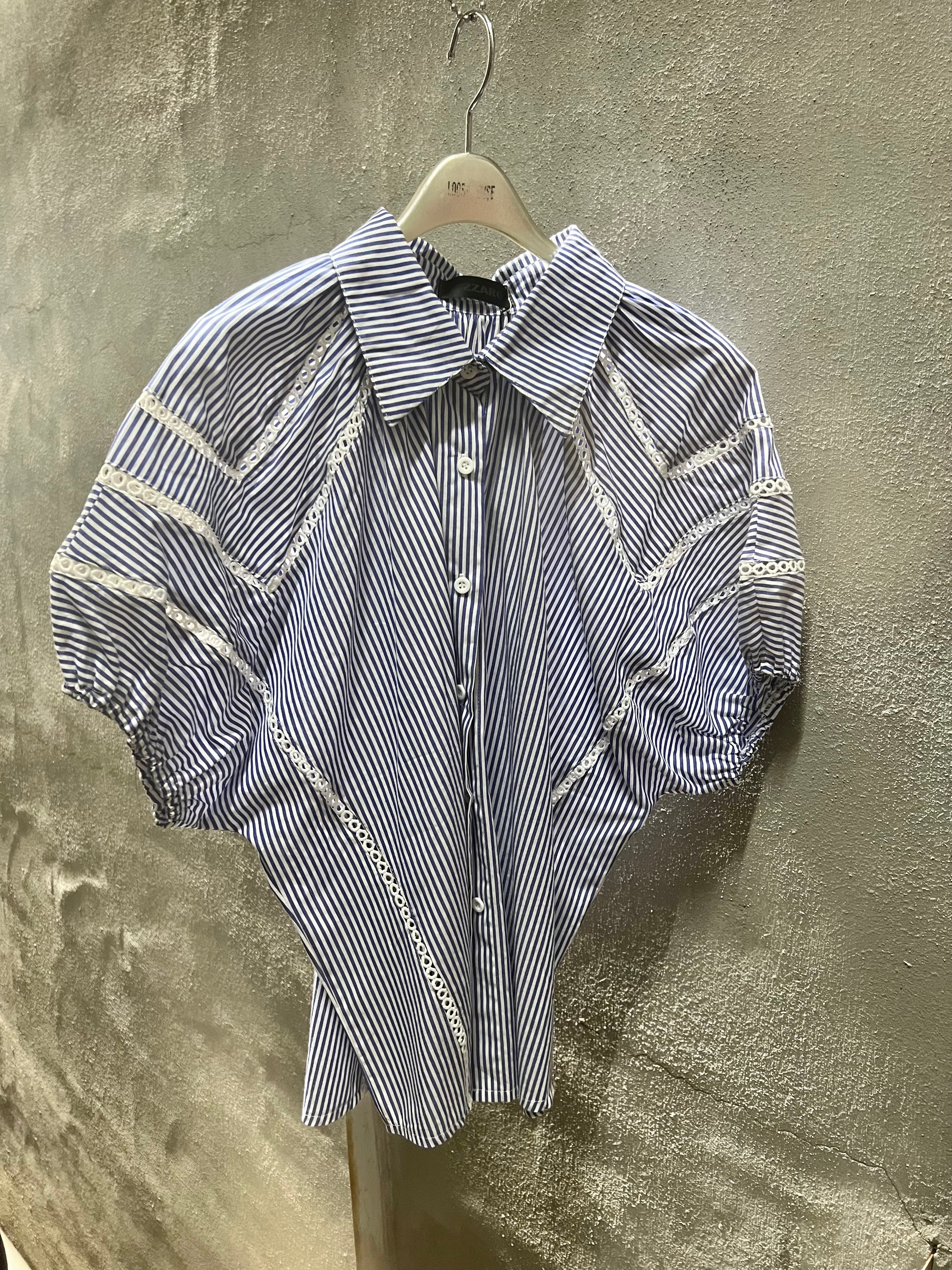 braid change design blouse shirt シャツ ブラウス デザインシャツ ストライプ 編み デザインスリーブ