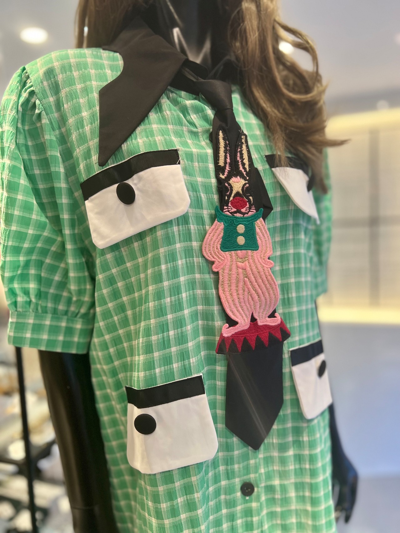 check pattern rabbit tie design shirt one-piece ワンピース ワンピ シャツワンピ チェック グリーン 緑 ネクタイ タイ ラビット うさぎ