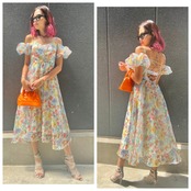 flower print organdy off shoulder flare one-piece ワンピース ワンピ オフショルダー パフスリーブ 花柄 オーガンジー