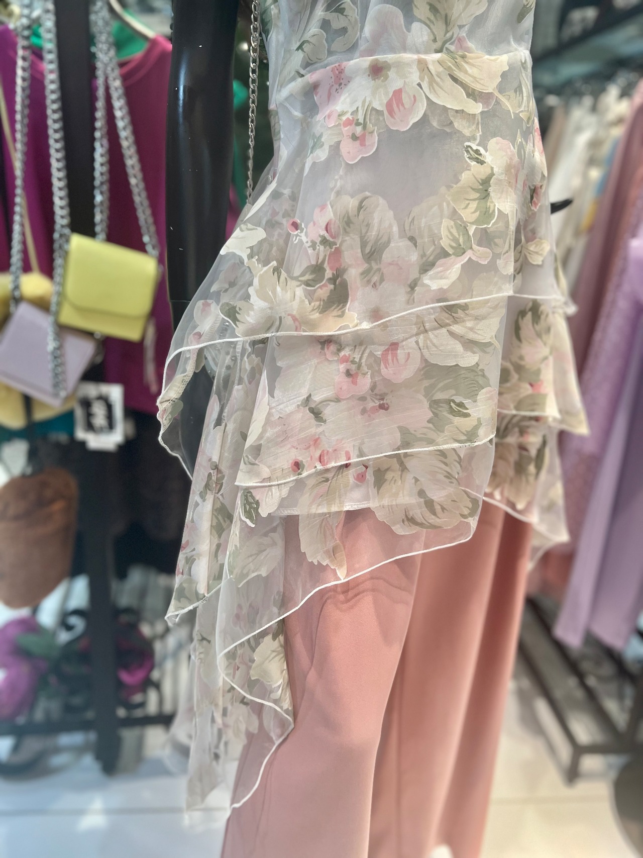 軽やかなオーガンジー素材を使用し、風になびくような動きが魅力的です。