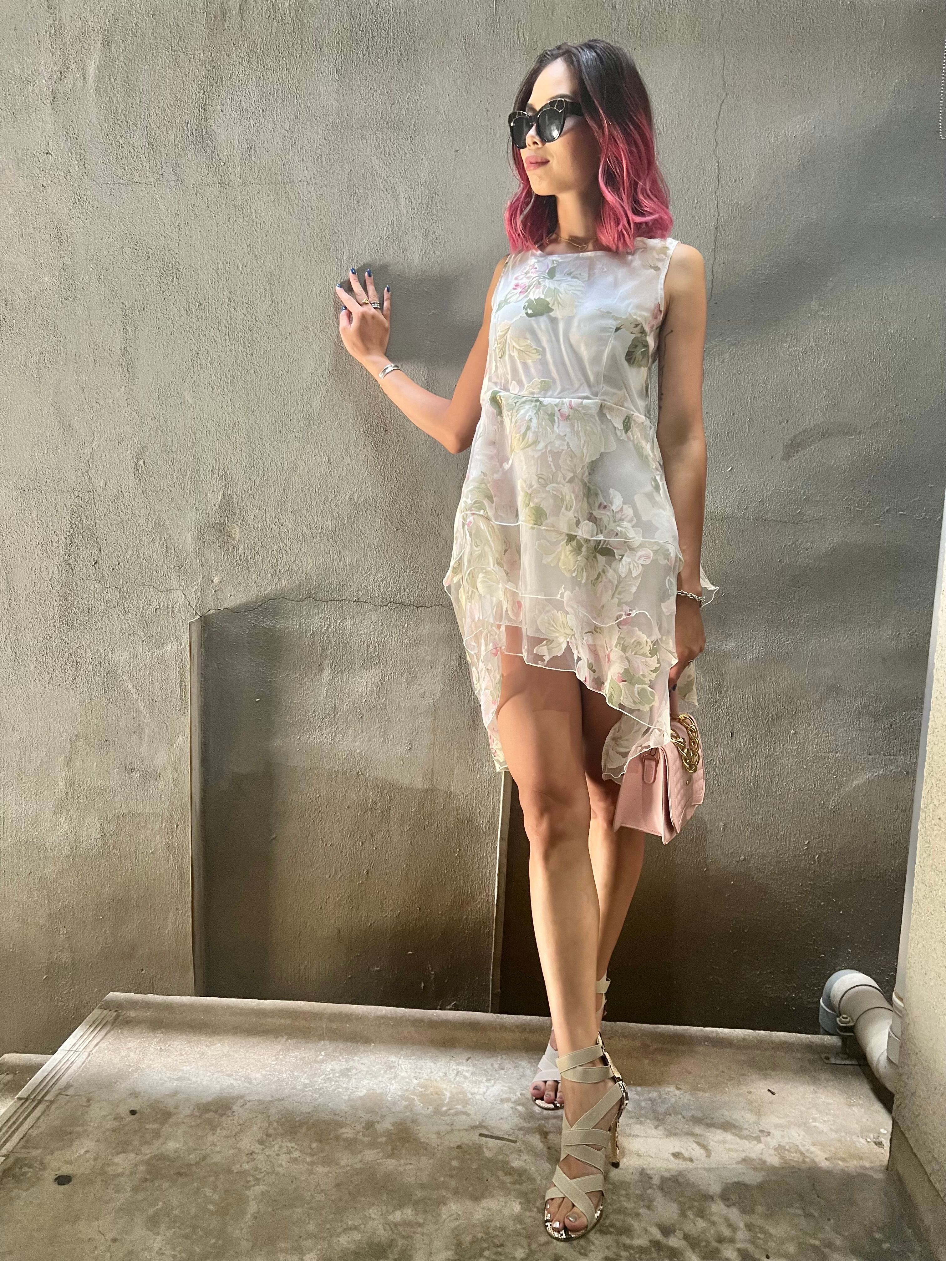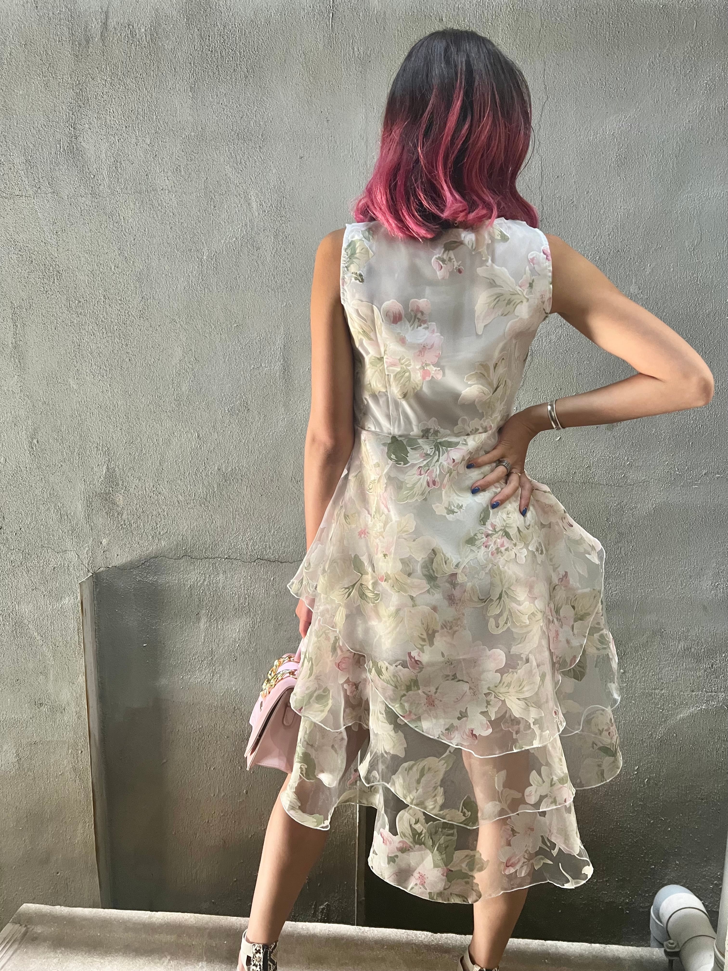 flower opal fit & flare high & low one-piece ワンピース ワンピ ハイアンドロー 花柄 オーガンジー ドレス パーティー 二次会